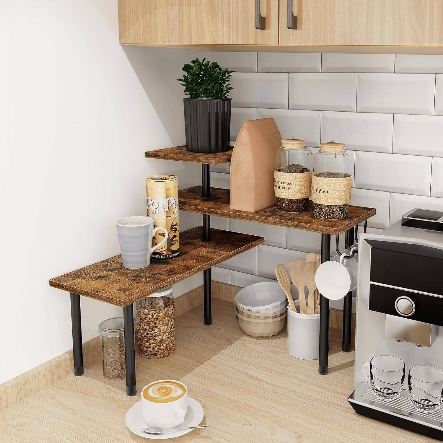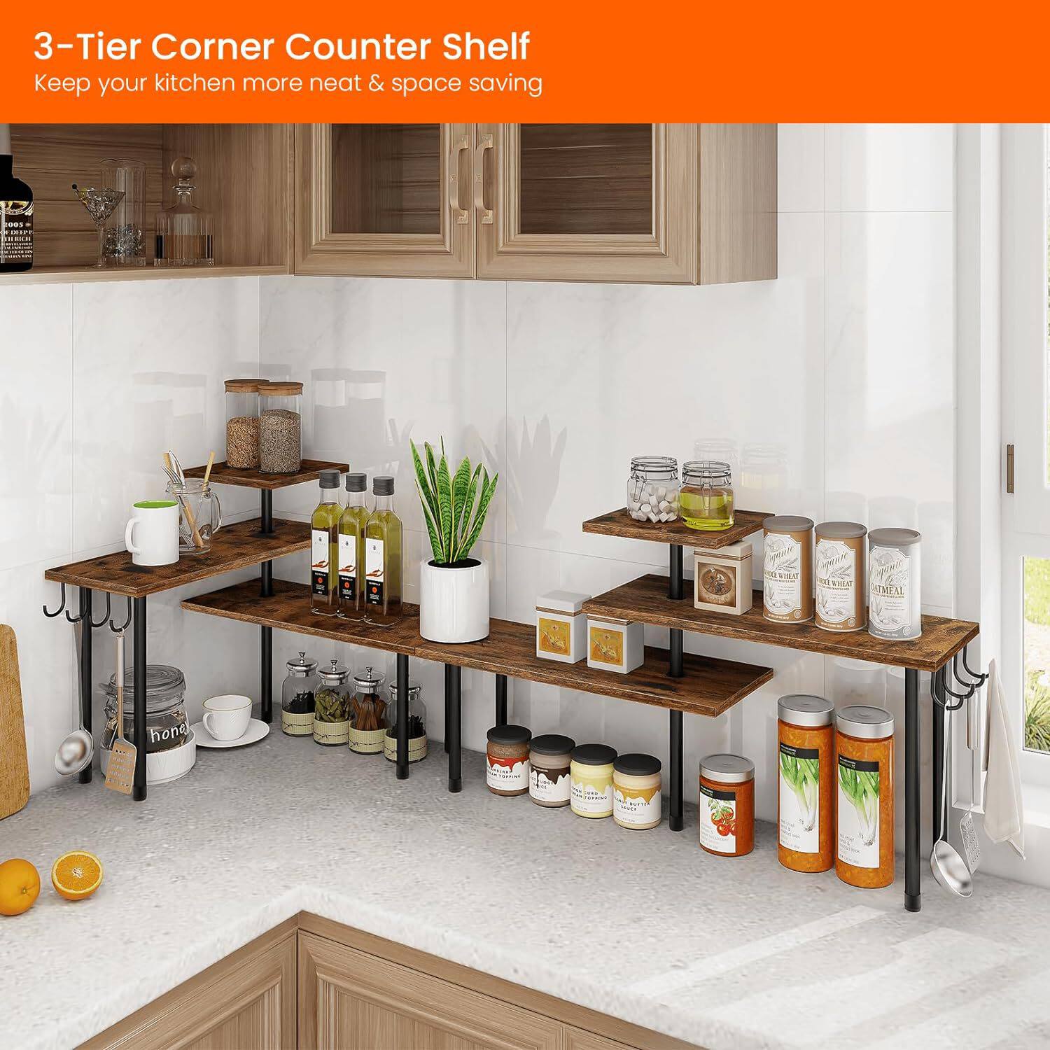 Multi-functional Three-layer Wood Board Storage Rack Kitchen Corner Seasoning Storage Rack Desktop Corner Corner Storage Rack