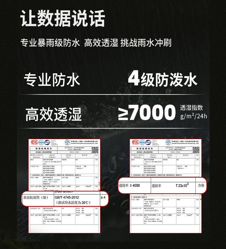 | Waterproof breathability index | 10001mm (inclusive)-15000mm (inclusive) |