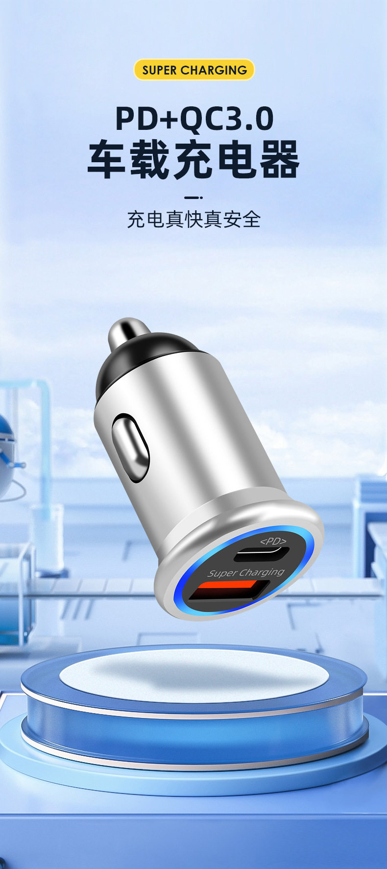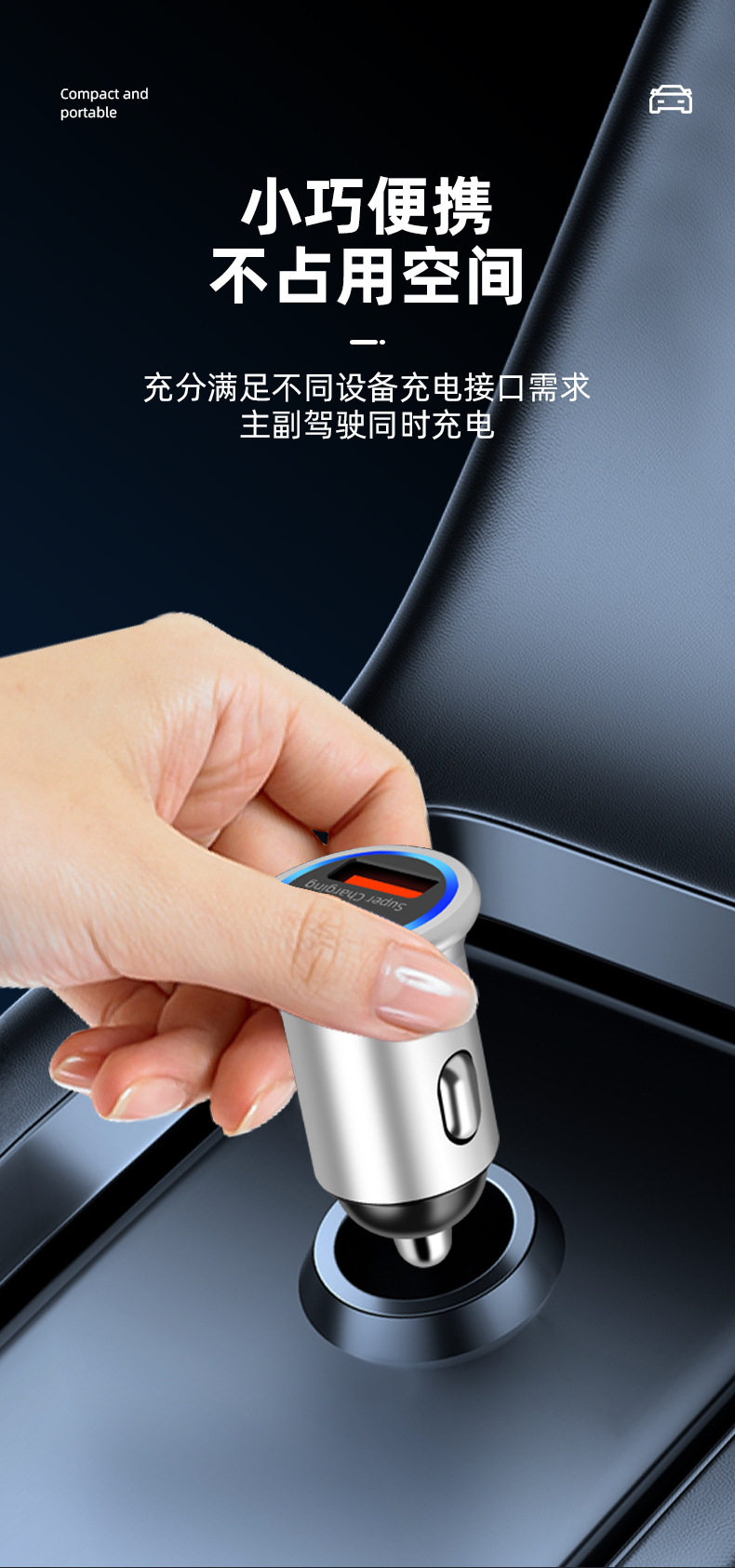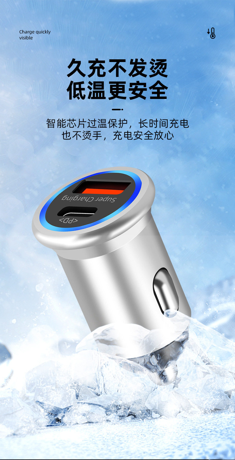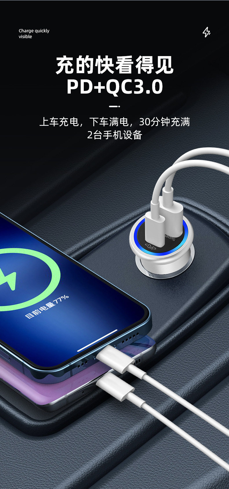 New car charger PD dual-port output fast charging PD QC3.0 car fast charging metal body with atmosphere light