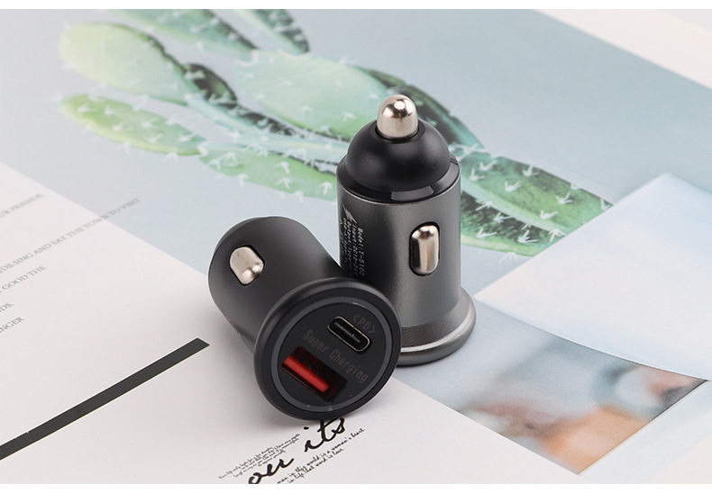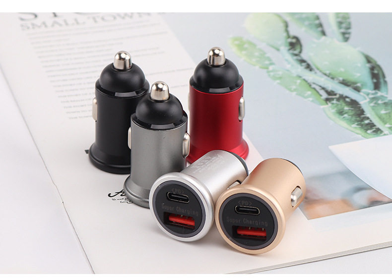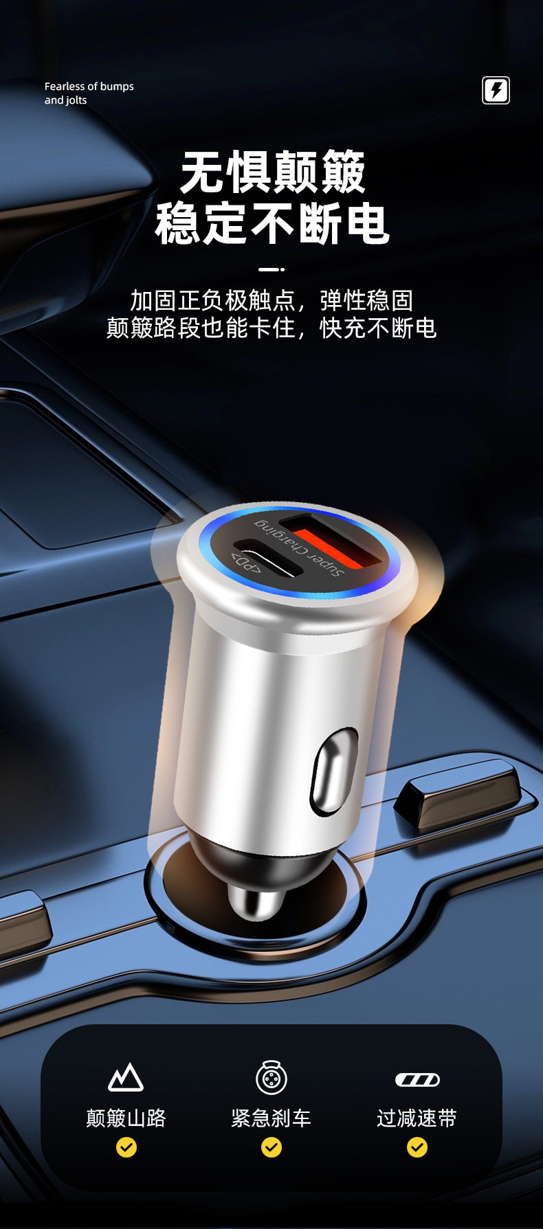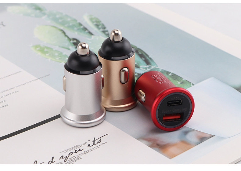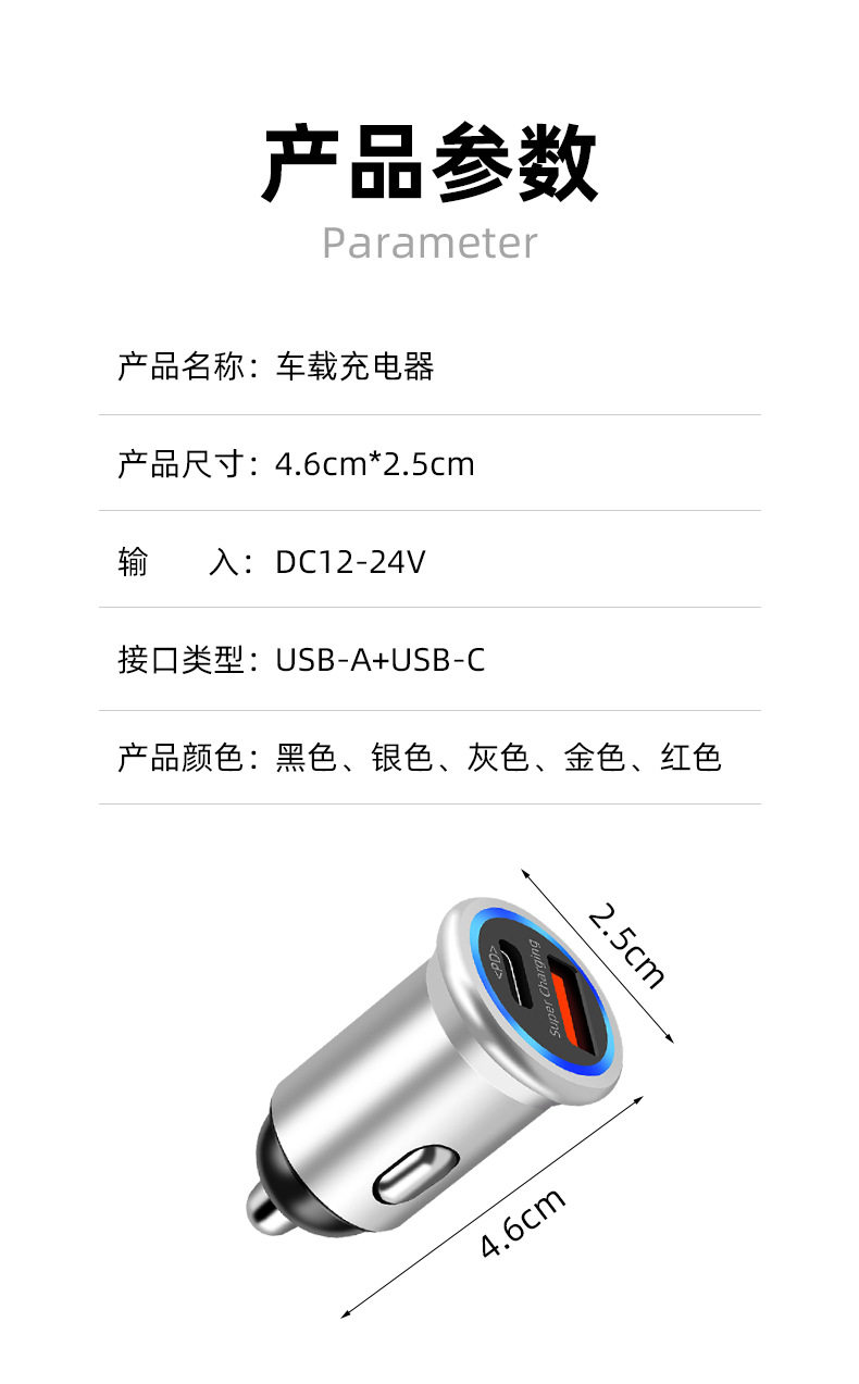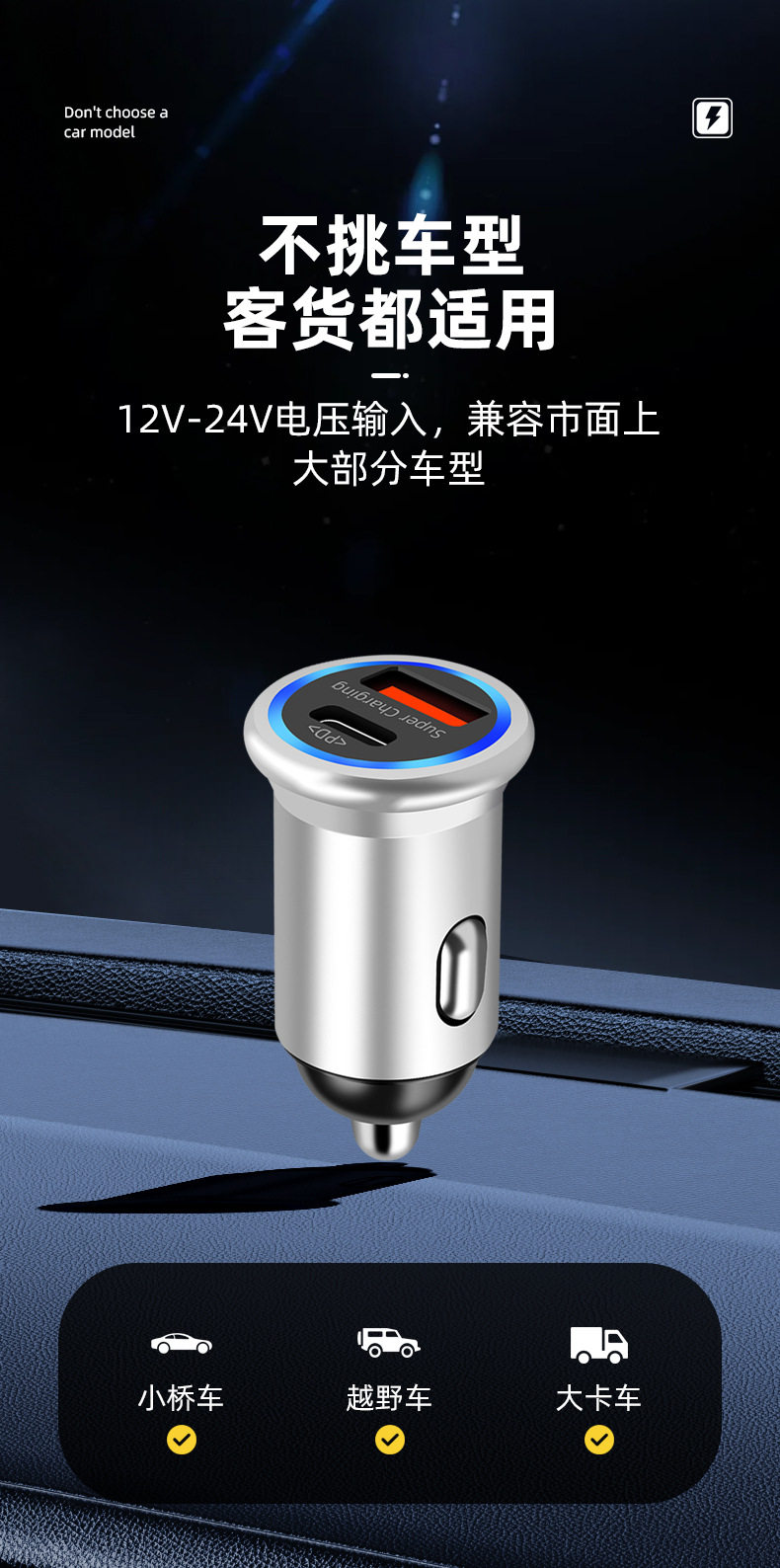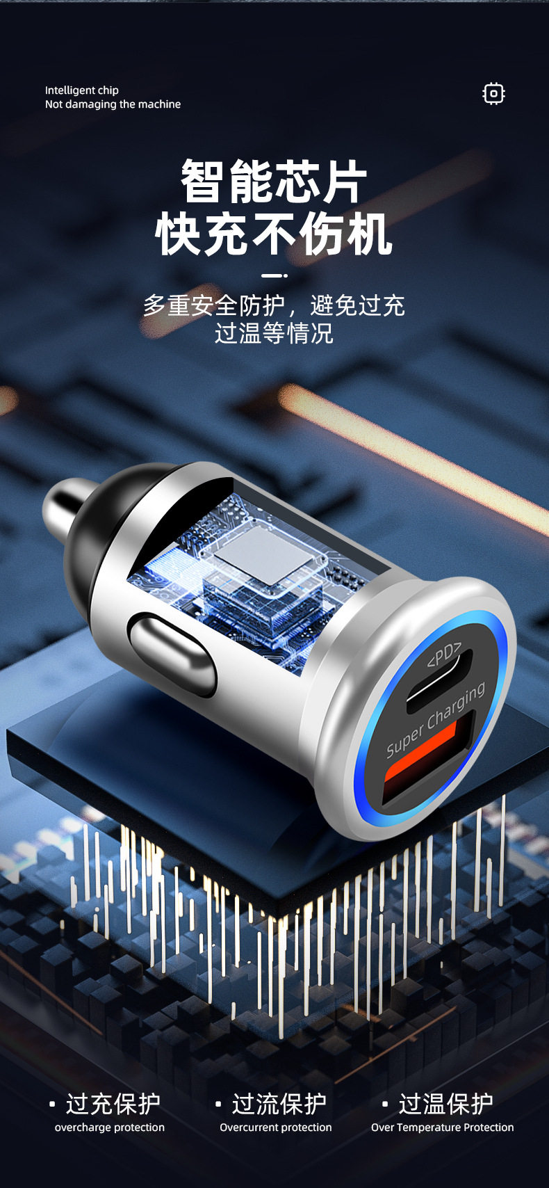 New car charger PD dual-port output fast charging PD QC3.0 car fast charging metal body with atmosphere light