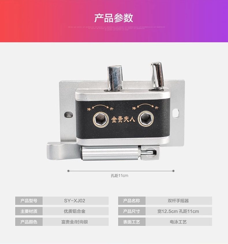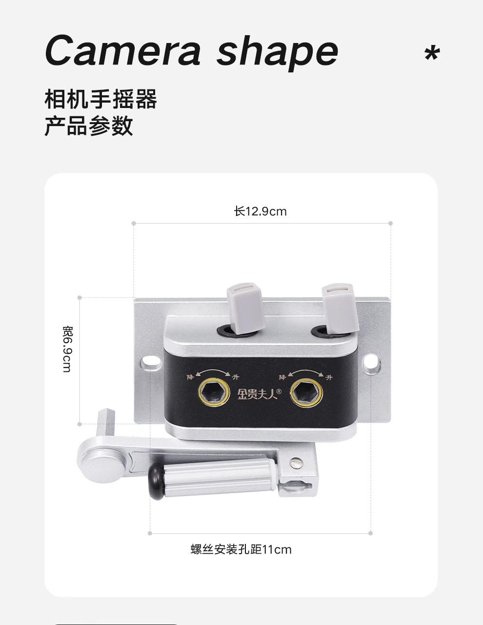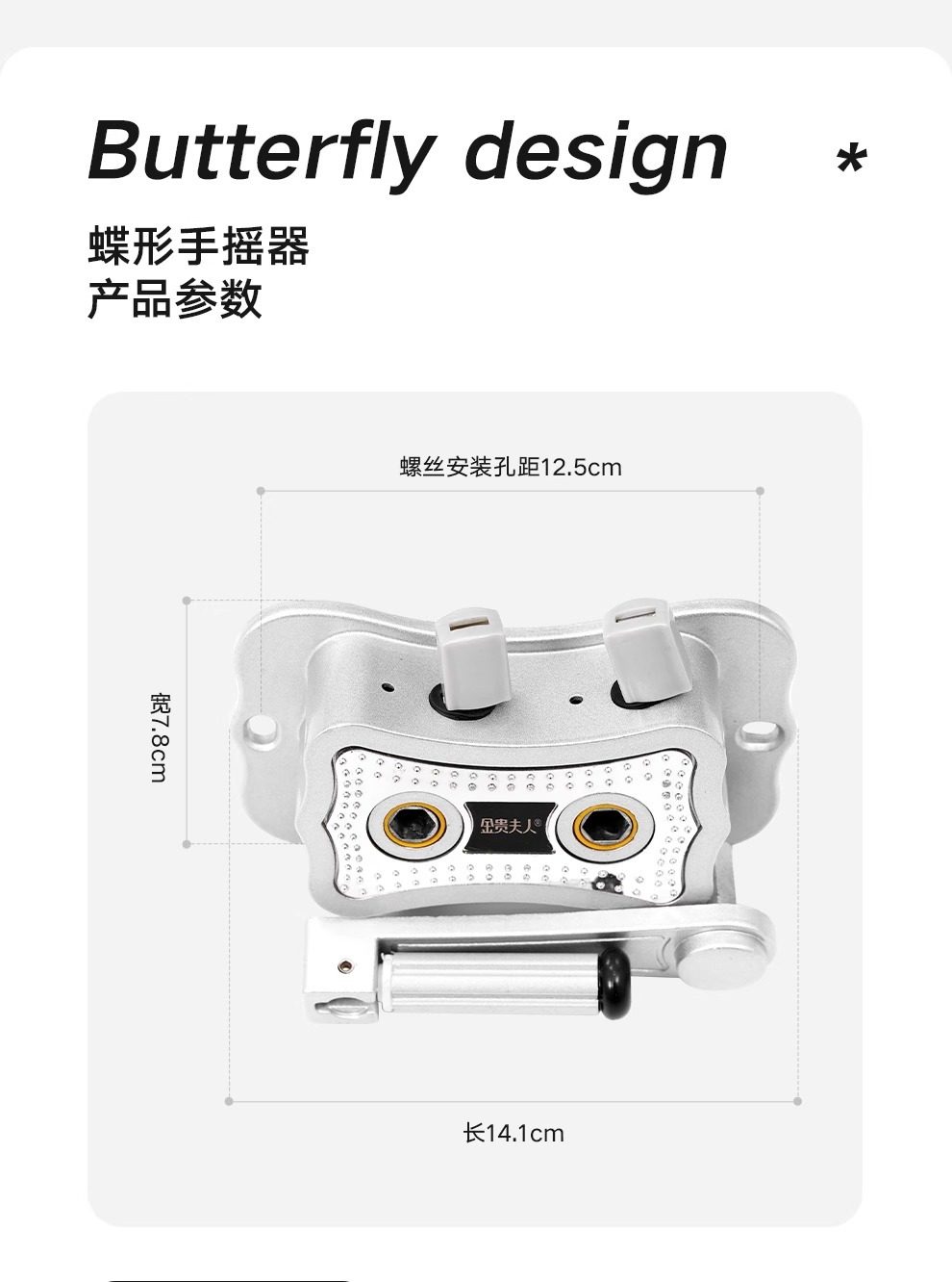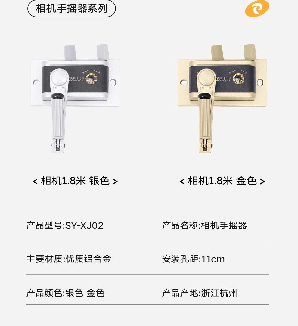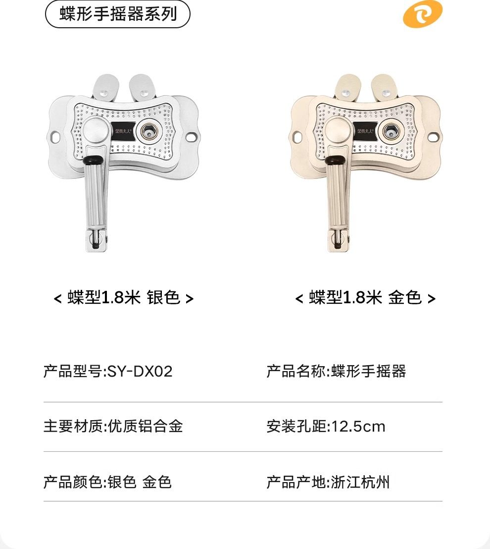 | Colour | Silver ( 11cm mounting hole spacing),Gold ( 11cm mounting hole spacing),Classic silver butterfly shape ( 12.5cm mounting hole spacing),Classic golden butterfly shape ( 12.5cm mounting hole spacing),Glacier silver butterfly model ( 13.2cm mounting hole spacing),Champagne gold butterfly model ( 13.2cm mounting hole spacing),Magic night black maternal and infant hand crank ( 9.5cm mounting hole spacing),Champagne gold maternal and infant hand crank ( 9.5cm mounting hole spacing),Glacier silver maternity and infant hand crank ( 9.5cm mounting hole spacing),Glacier silver double pole push-pull model ( 9.5cm mounting hole spacing),Champagne gold double pole push-pull model ( 9.5cm mounting hole spacing),Magic night black double rod push-pull model ( 9.5cm mounting hole spacing),Glacier silver single rod hand crank ( 9.5cm mounting hole spacing),Champagne gold single pole hand crank ( 9.5cm mounting hole spacing),Magic night black single rod hand crank ( 9.5cm mounting hole spacing),Magic night black maternal and infant hand crank ( 9.5cm installation hole spacing) - ultra high layer 4m special,Glacier silver maternal and infant hand crank ( 9.5cm installation hole spacing) - ultra high layer 4m special,Champagne gold maternal and infant hand crank ( 9.5cm mounting hole spacing) - ultra-high layer height 4m dedicated,Silver butterfly model ( 13.2cm installation hole spacing) - ultra-high top height 4m lift range,Champagne gold butterfly model ( 13.2cm installation hole spacing) - ultra-high top height 4m lift range,1 piece 7.5m steel wire (304 material) |