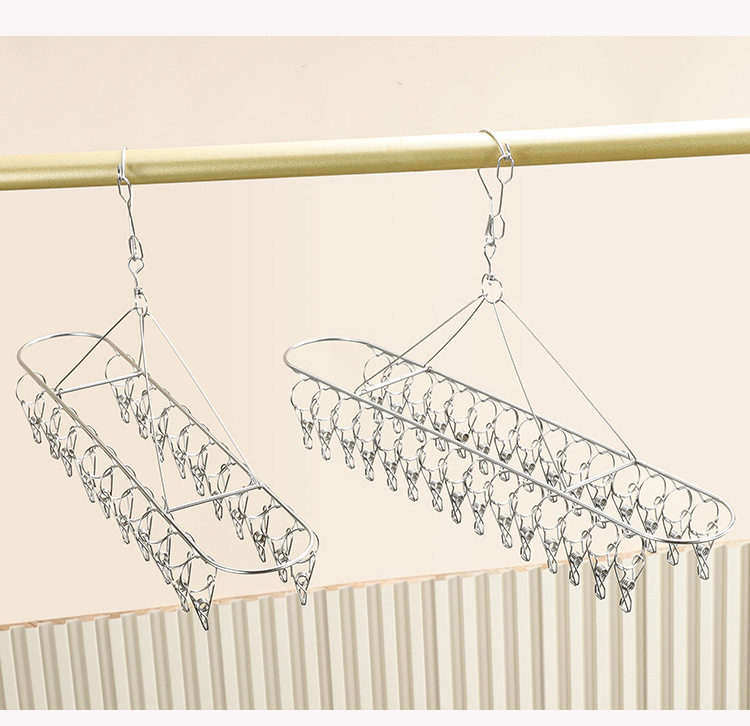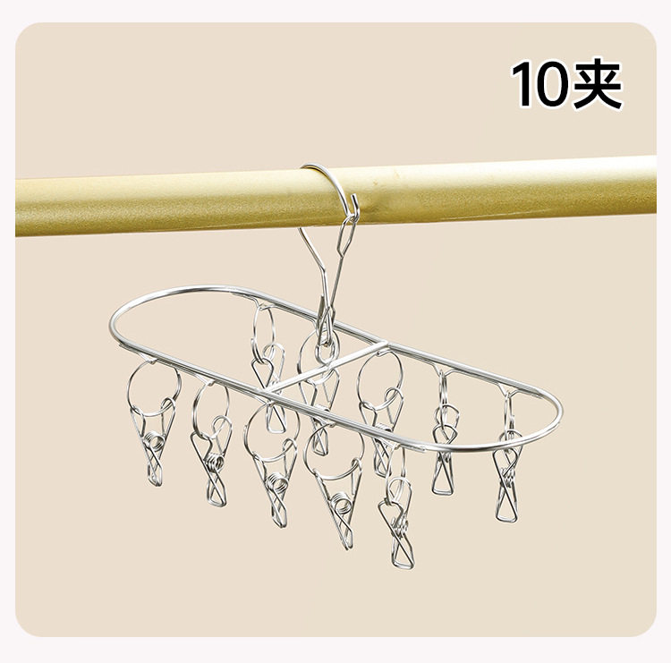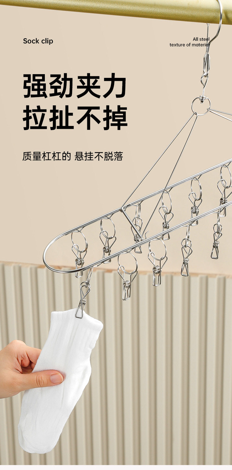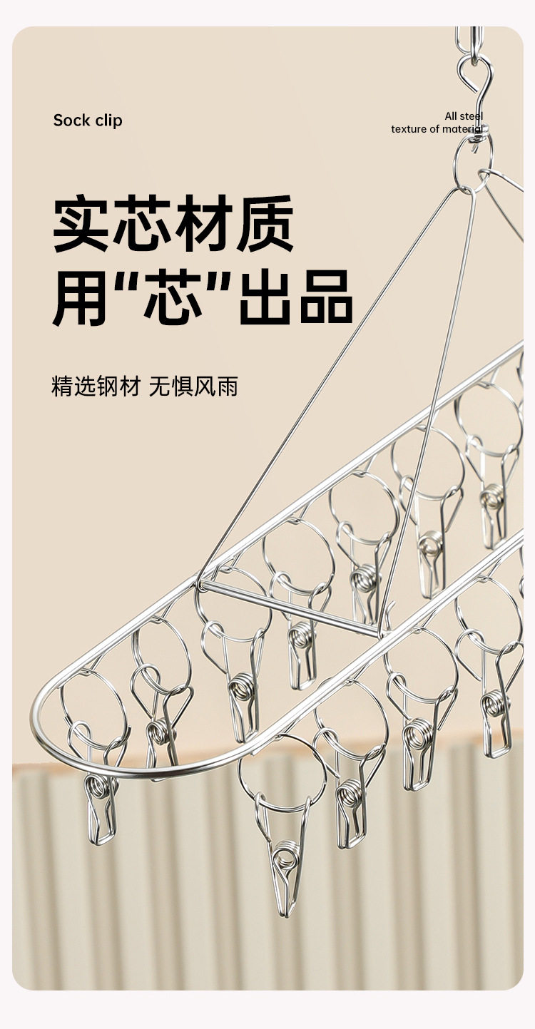Clothes Drying Rack Balcony Storage Multi-Head Clip Clothes Hanger Thickeneded Double-Layer Artifact Sock Drying Rack Simple Clip