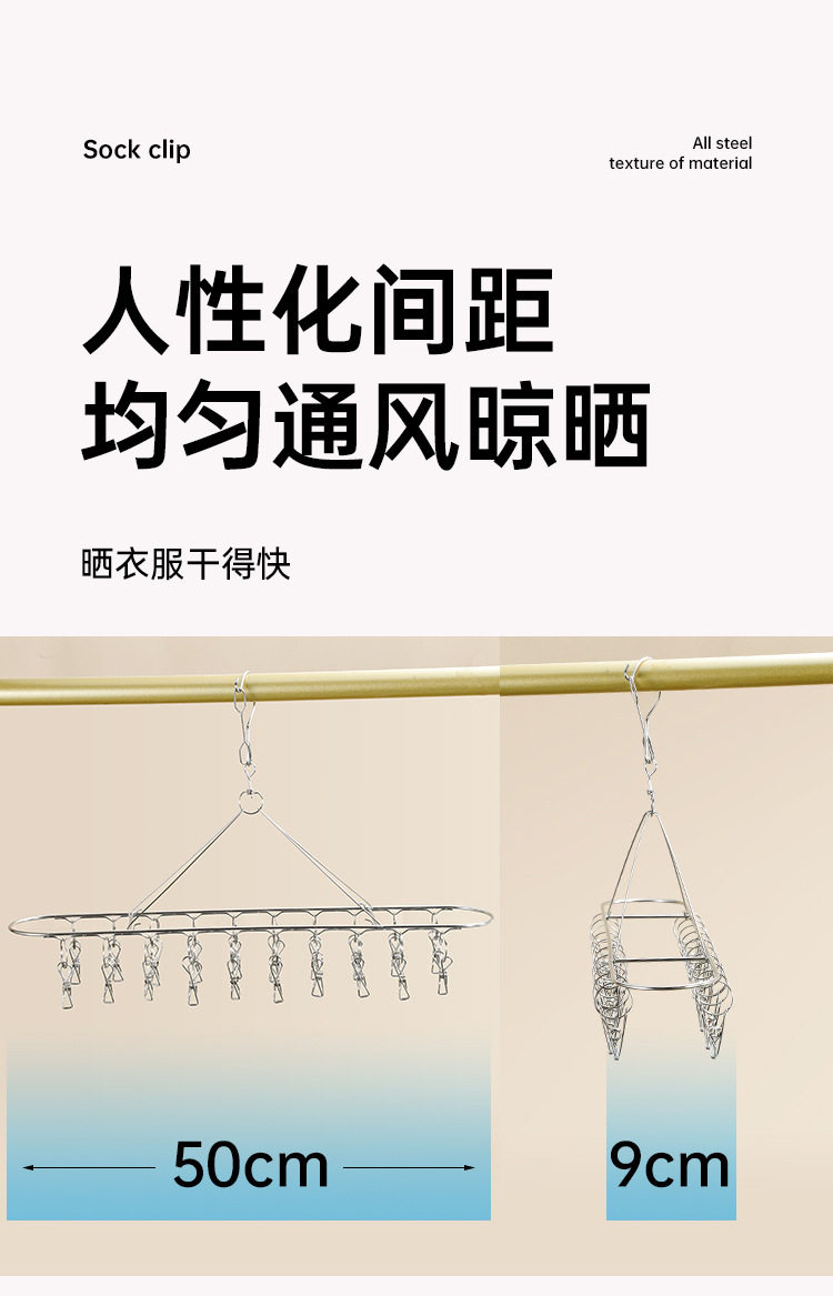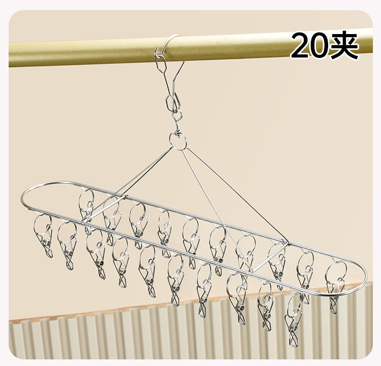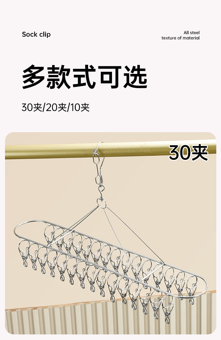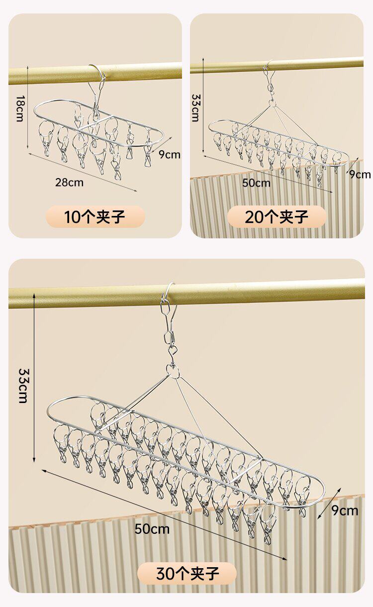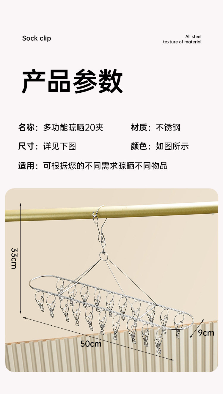 Clothes Drying Rack Balcony Storage Multi-Head Clip Clothes Hanger Thickeneded Double-Layer Artifact Sock Drying Rack Simple Clip
