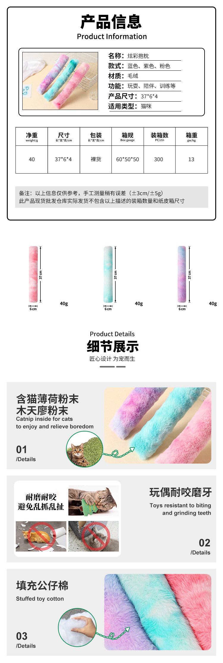 | Word | Cat pillow, stuffed, gradient color, pink, blue, purple, pet supplies, plaid, pillow design. |