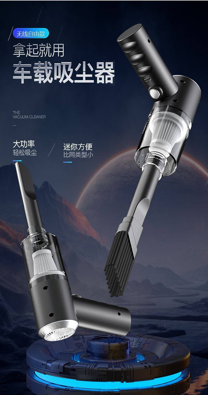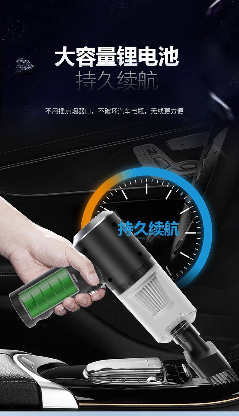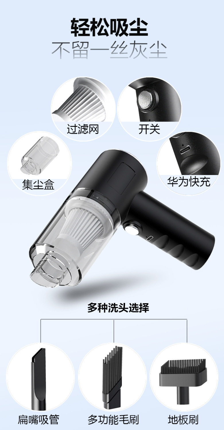 Cross-border handheld car vacuum cleaner household portable wireless charging high-power dust suction and dust removal gun dual-purpose wool suction