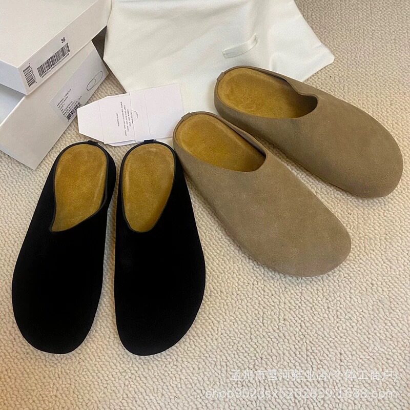2024 New Model Unisex Retro Genuine Leather Mule Shoes, Birkenstock-Style Flat Closed-Toe Slippers, Non-Slip