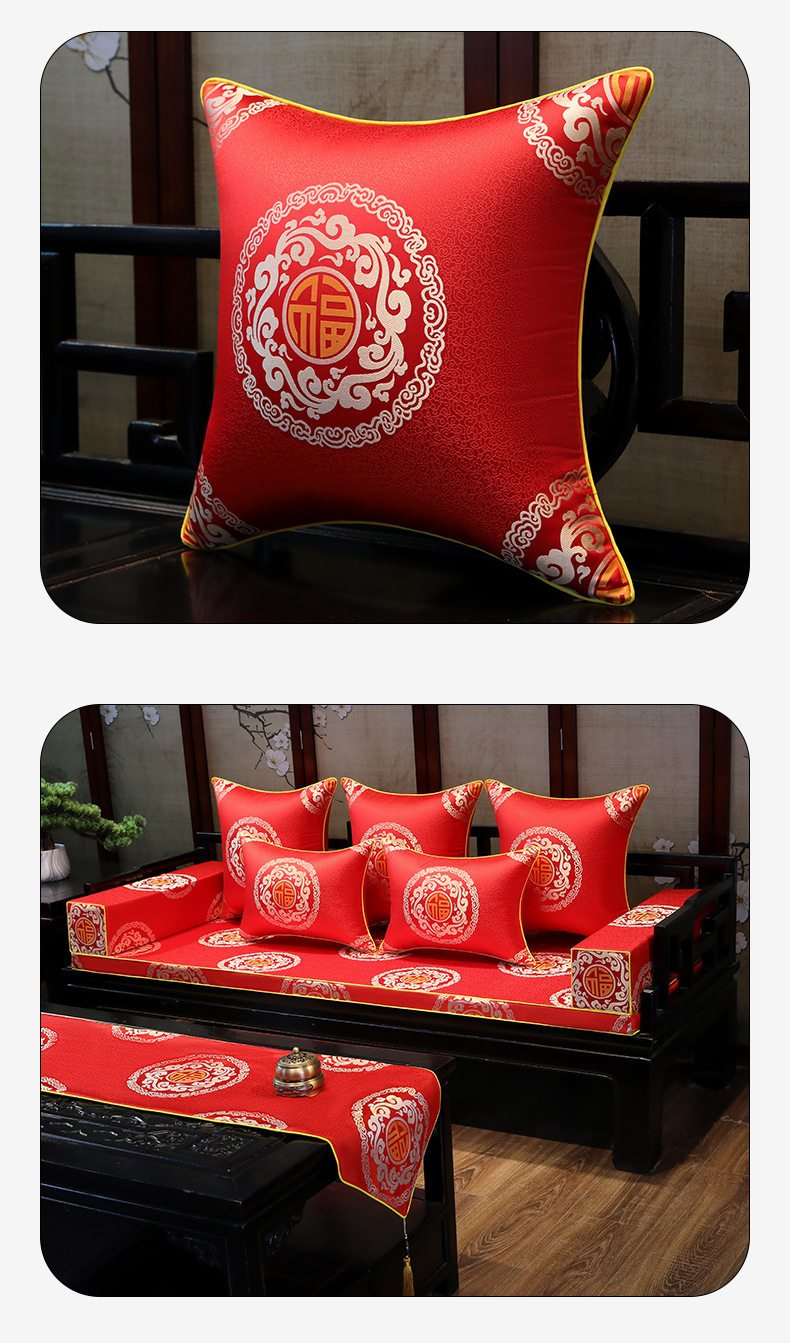 Chinese Classical Jacquard Pillow Case Redwood Sofa Pillow Living Room Cushion Cover Removable and Washable Core-Free Backrest Cover