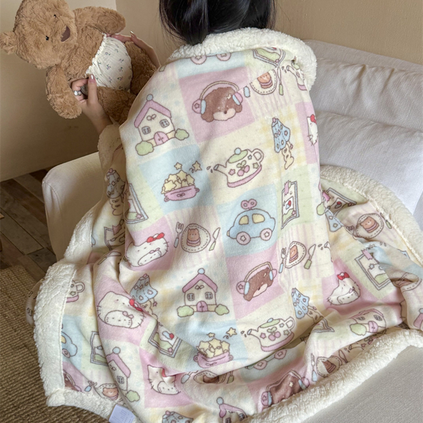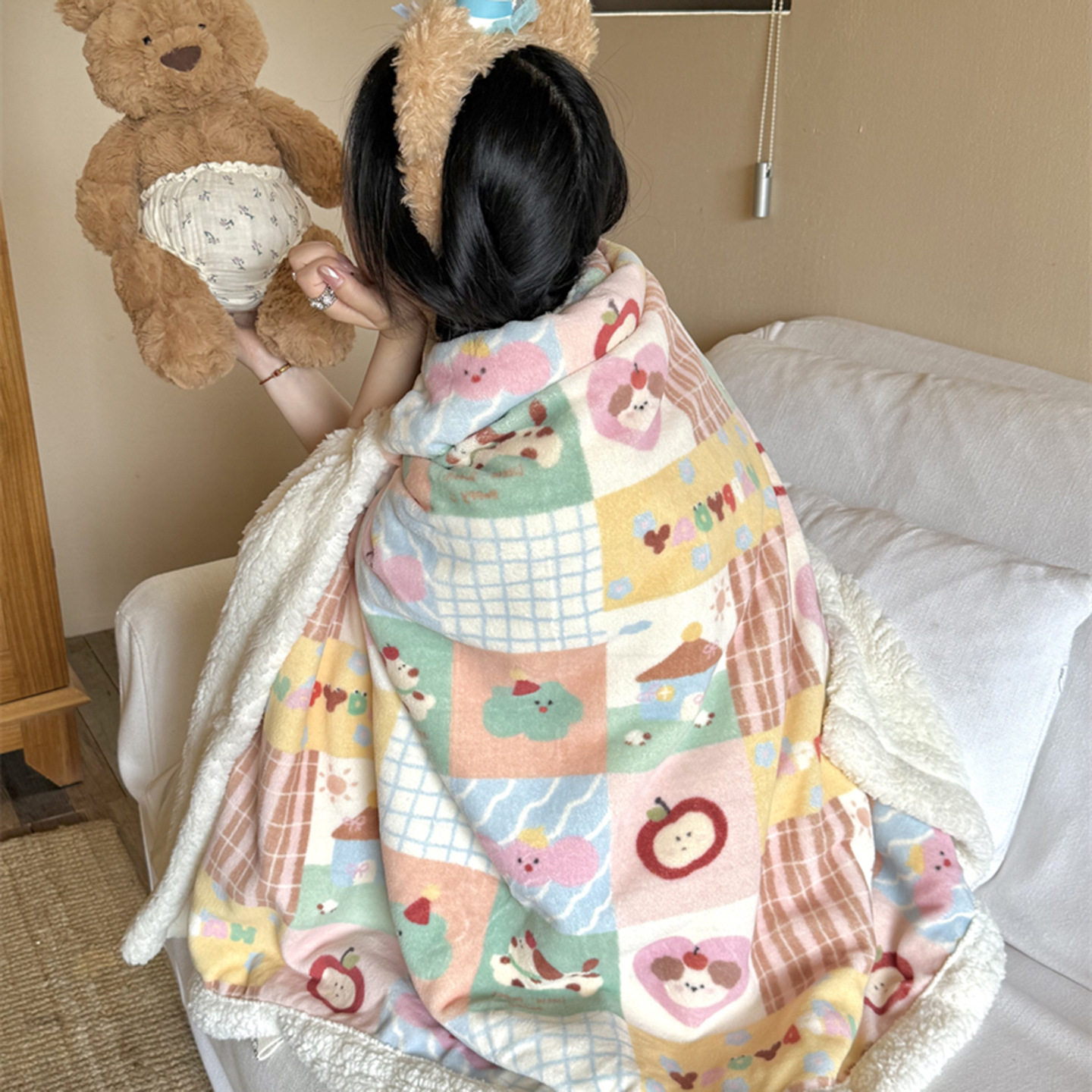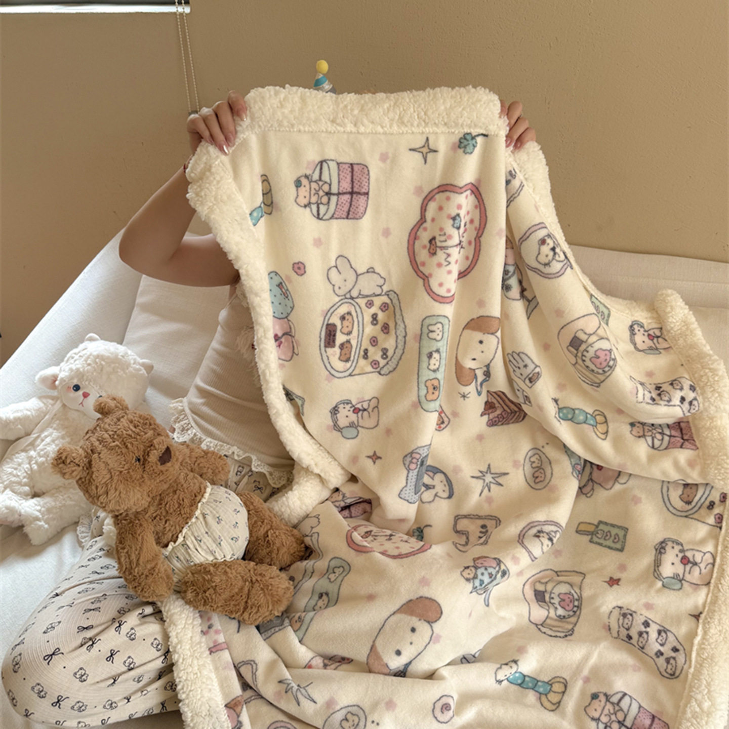 Thickened Lamb Fleece Blanket Office Nap Winter Shawl Blanket Coral Fleece Air Conditioning Sofa Cover Blanket Kindergarten