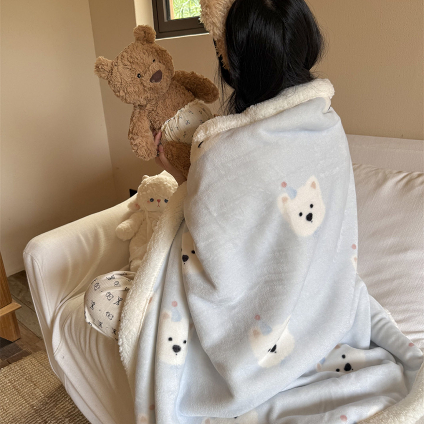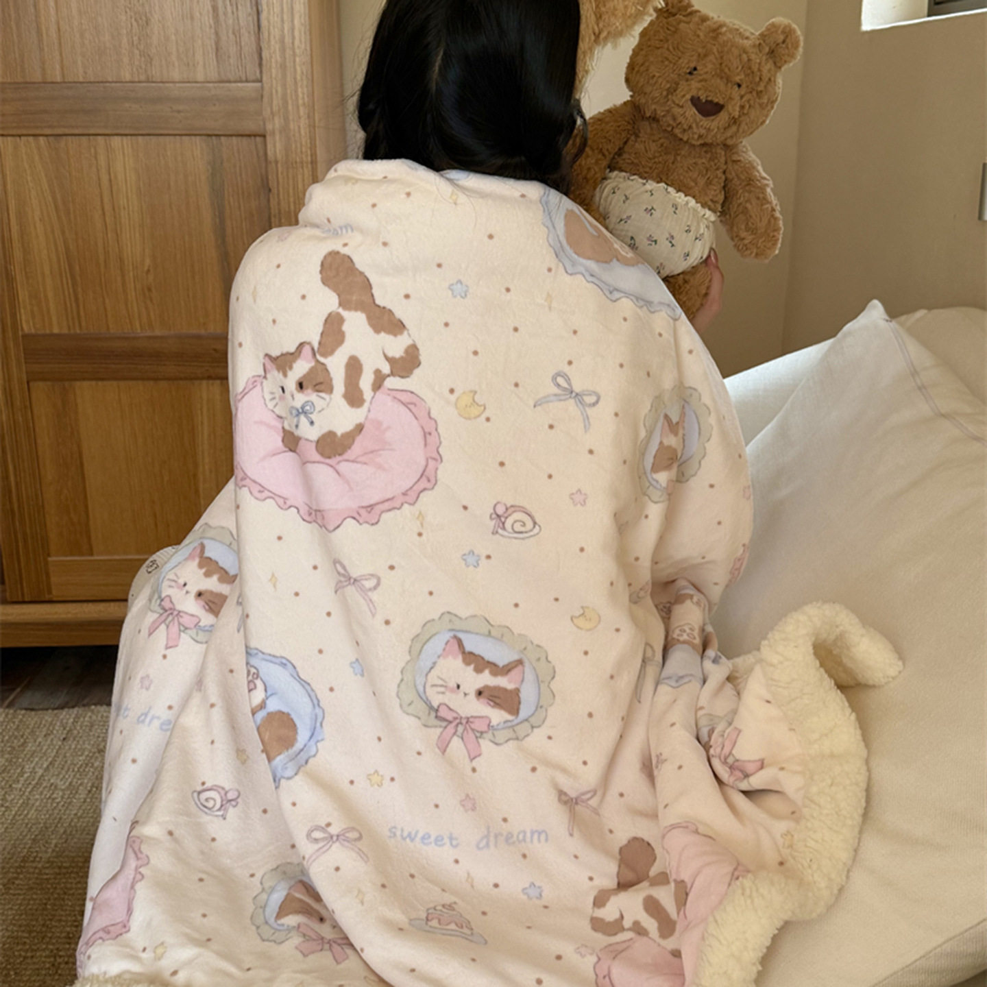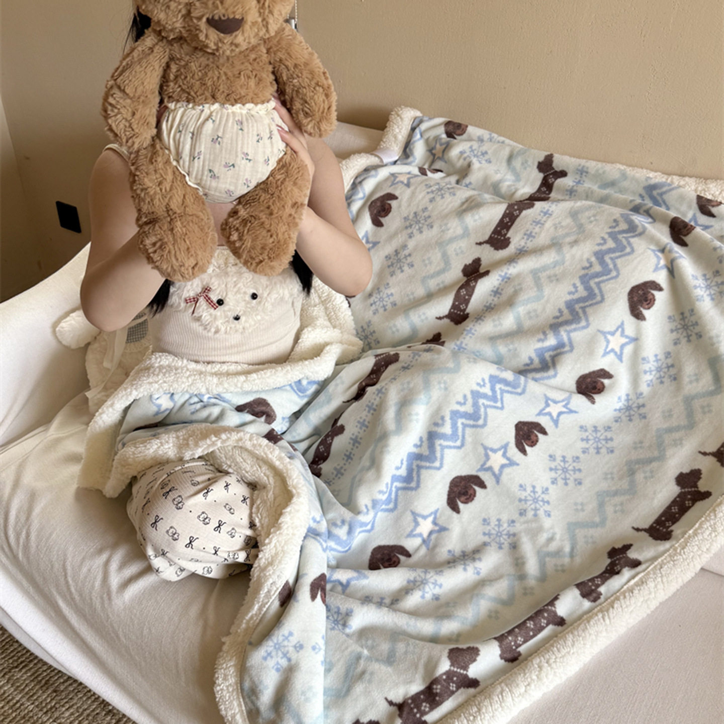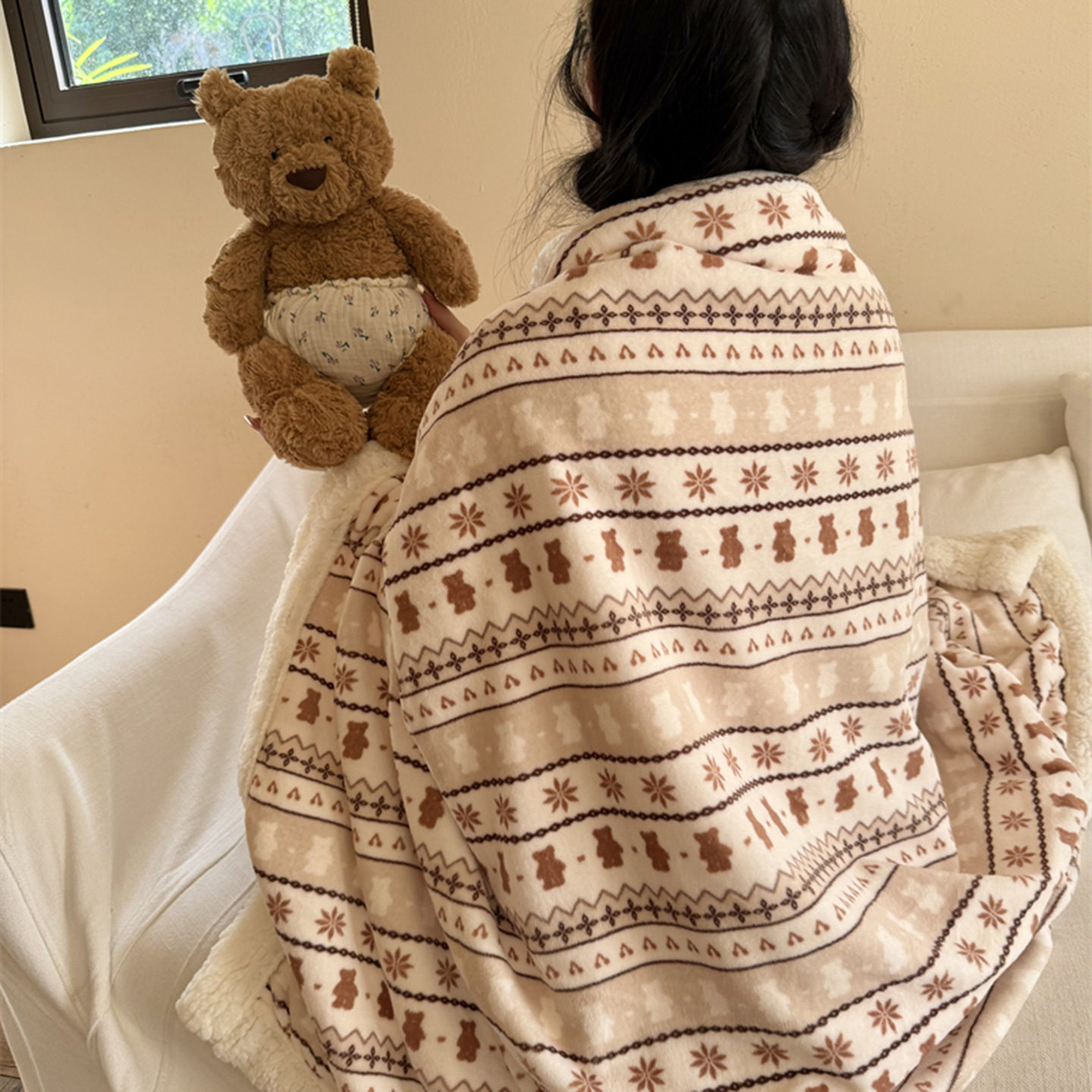 Thickened Lamb Fleece Blanket Office Nap Winter Shawl Blanket Coral Fleece Air Conditioning Sofa Cover Blanket Kindergarten
