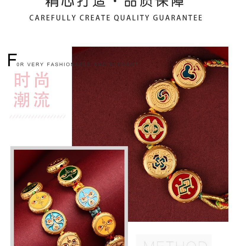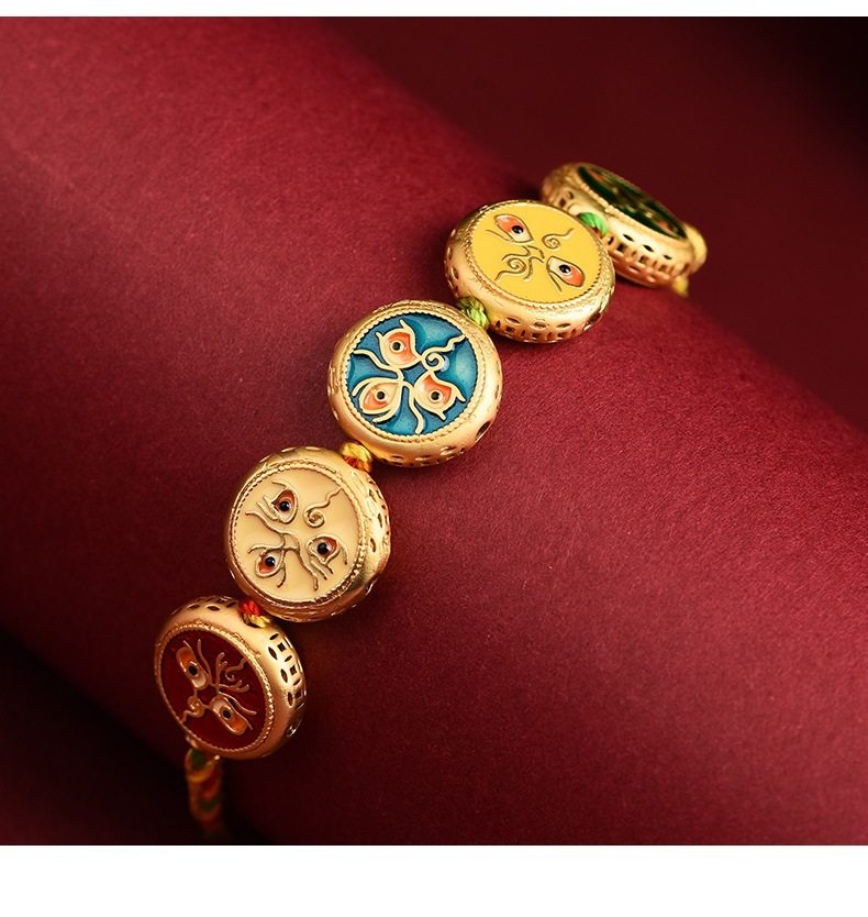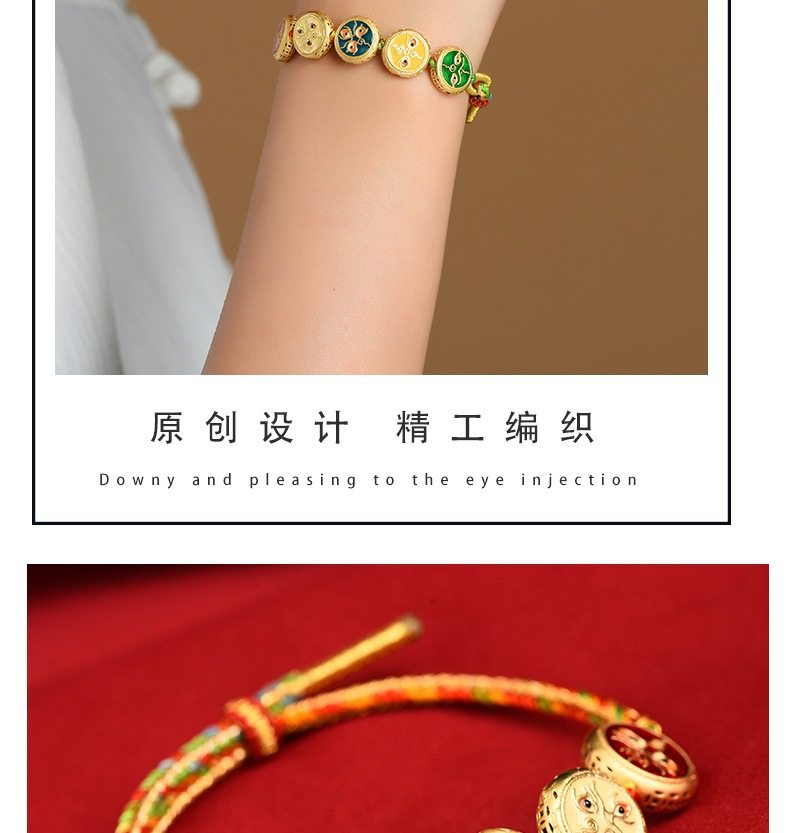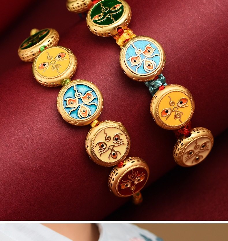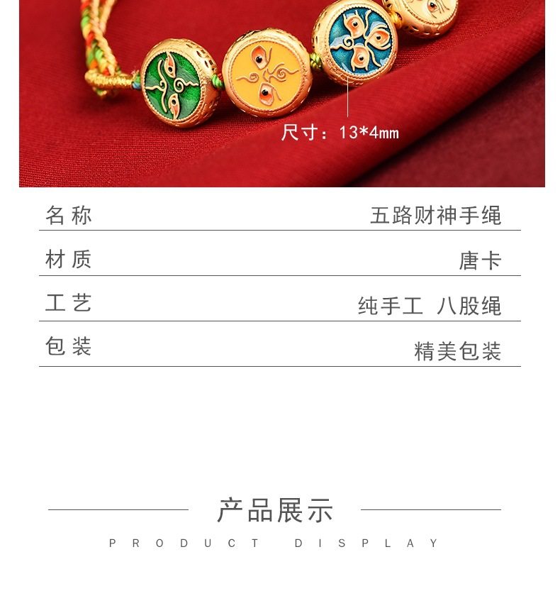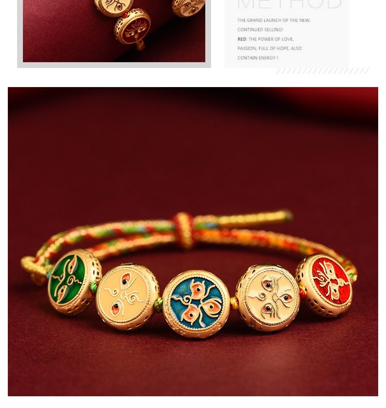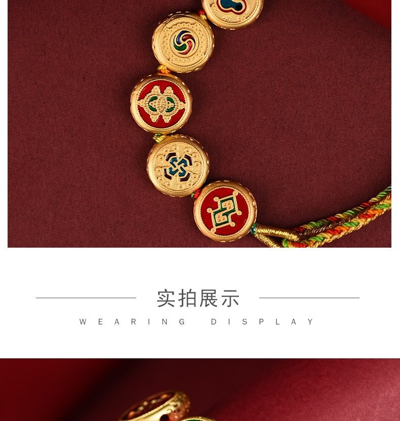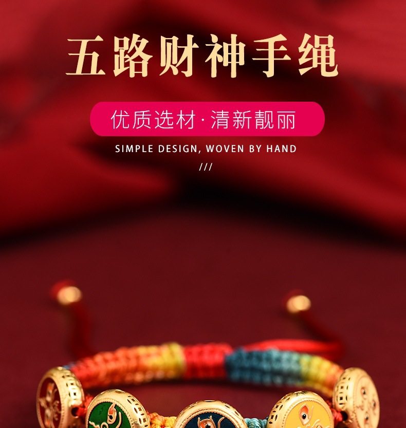 Five-way God of Wealth Translated Pearl Zhakiram Xizang-style Thangka Hand-woven Rope Couple's Amulet Bracelet for the Year of the Dragon