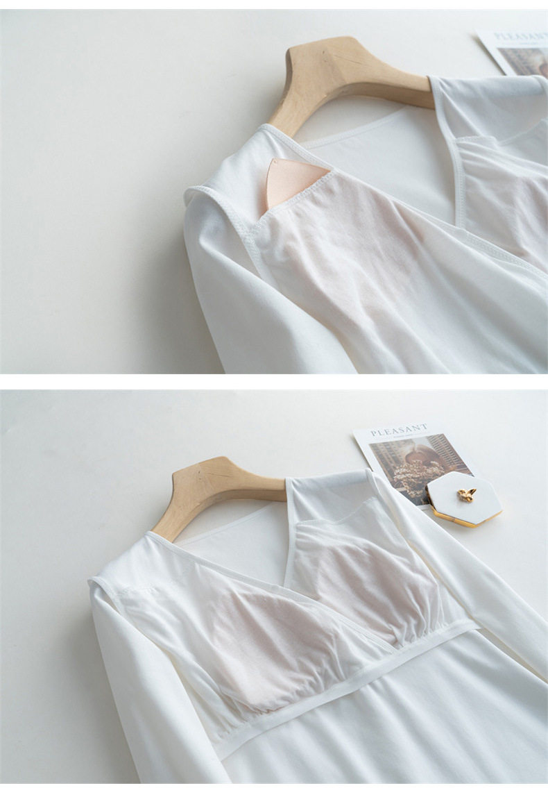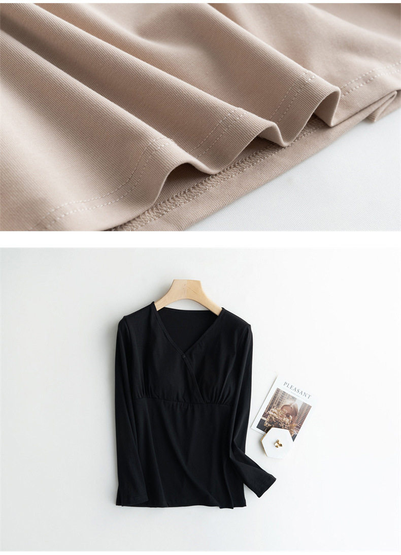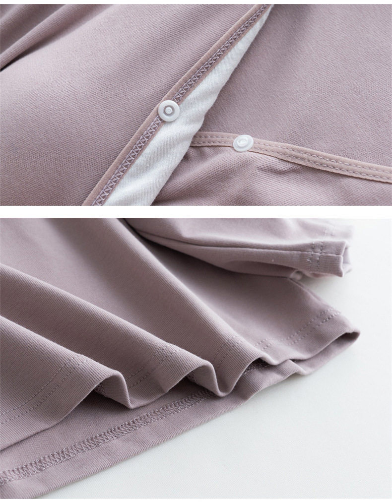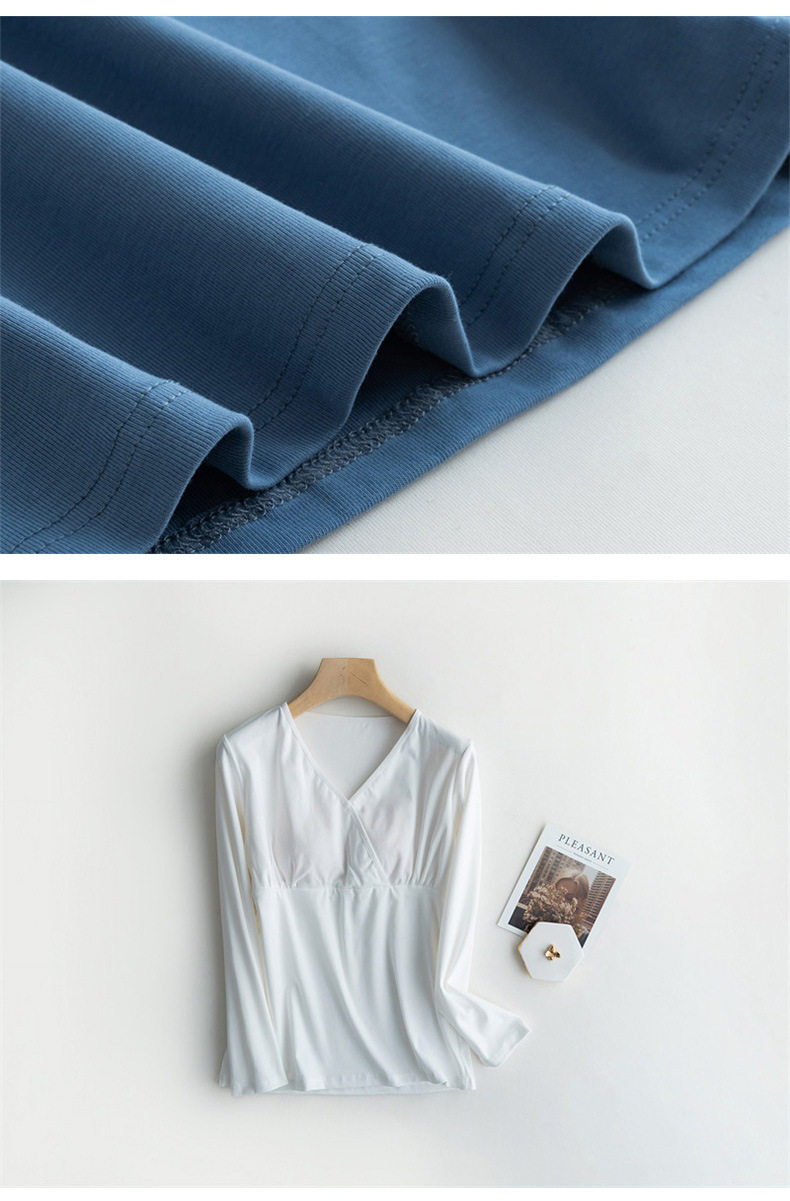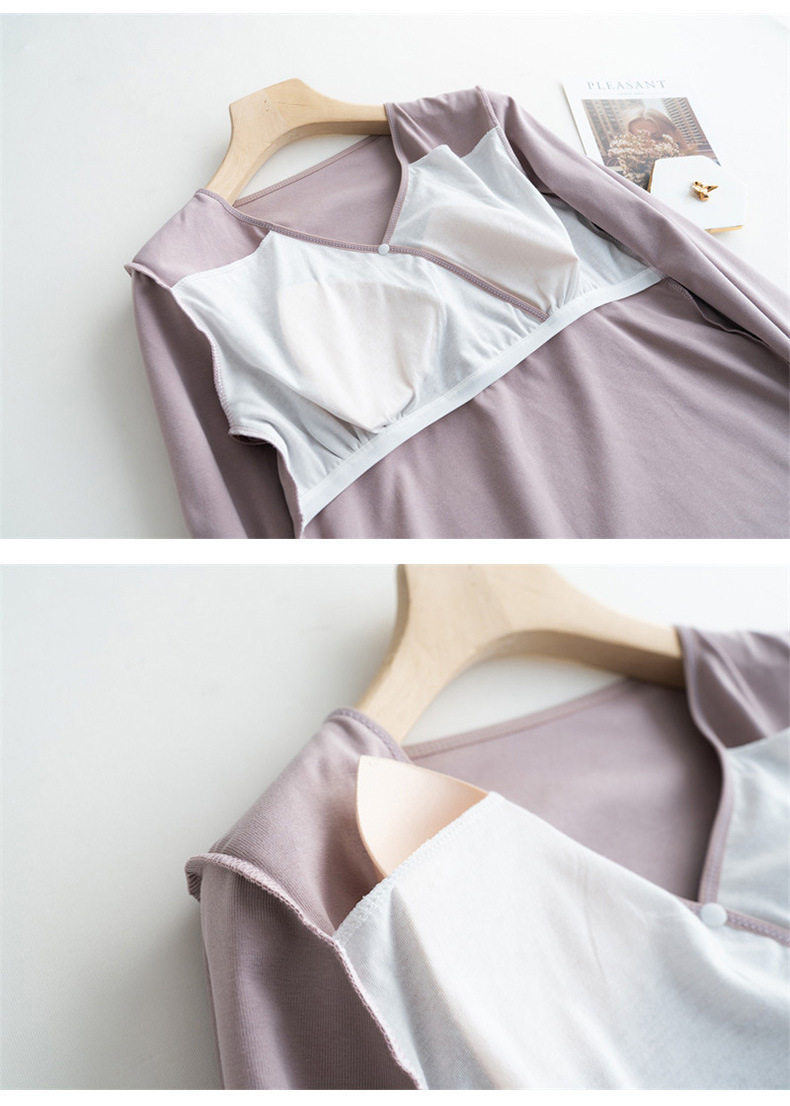 Pure Cotton Breastfeeding Clothes with Chest Pad Long-Sleeved Crossed Non-Wearing Underwear Monthly Clothes Pregnant Women's Postpartum Breastfeeding Clothes Base Clothes