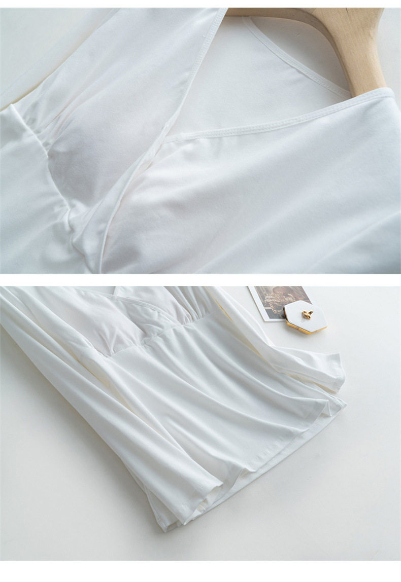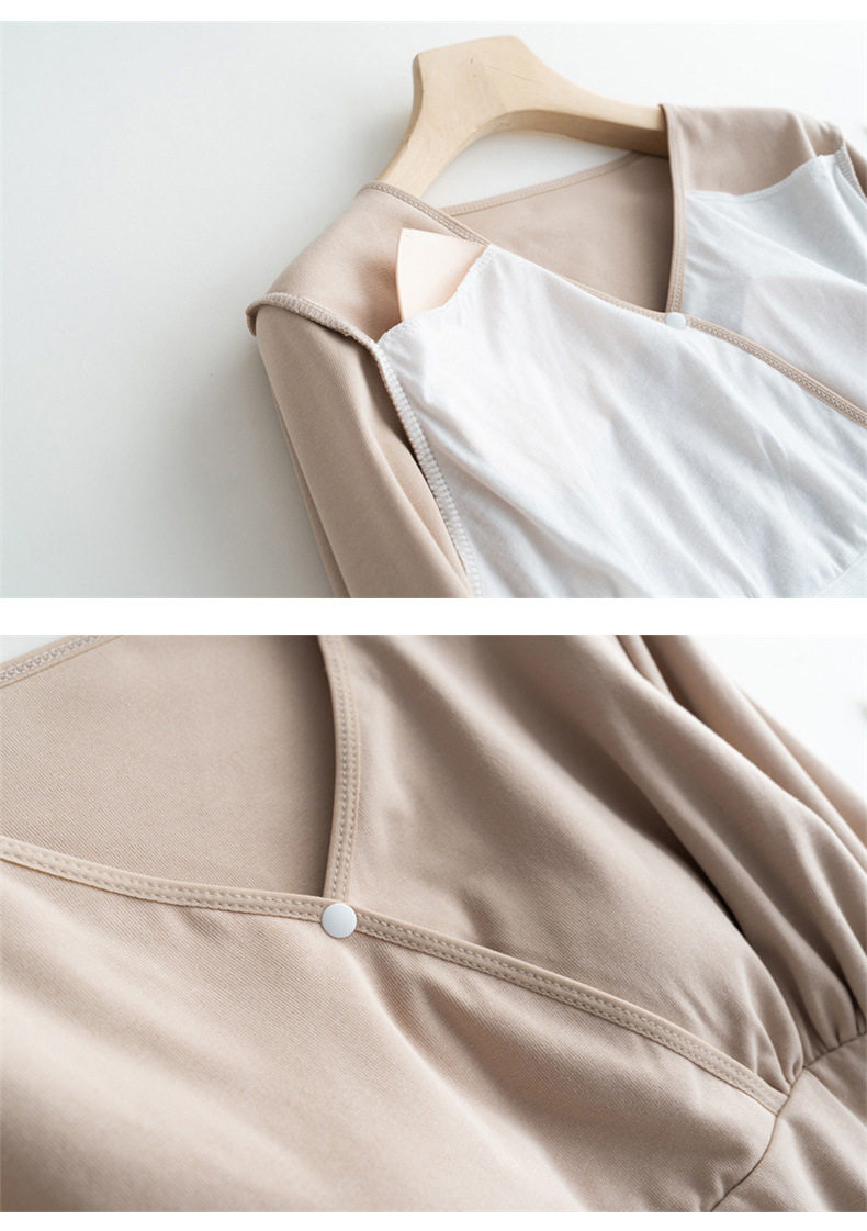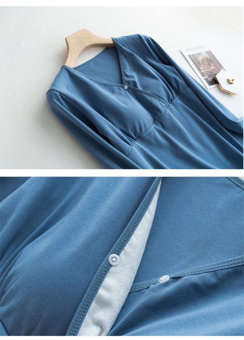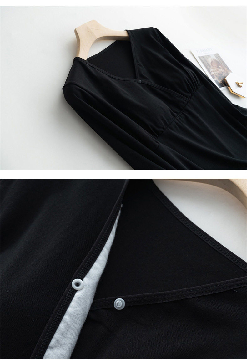 Pure Cotton Breastfeeding Clothes with Chest Pad Long-Sleeved Crossed Non-Wearing Underwear Monthly Clothes Pregnant Women's Postpartum Breastfeeding Clothes Base Clothes