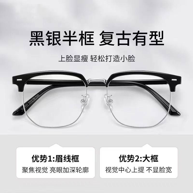 Stylish and Handsome Half-Frame Myopia Glasses for Tech-Savvy Men, Business Glasses Frames, Retro Literary Style, Ultra-Light Flat Glasses for Students