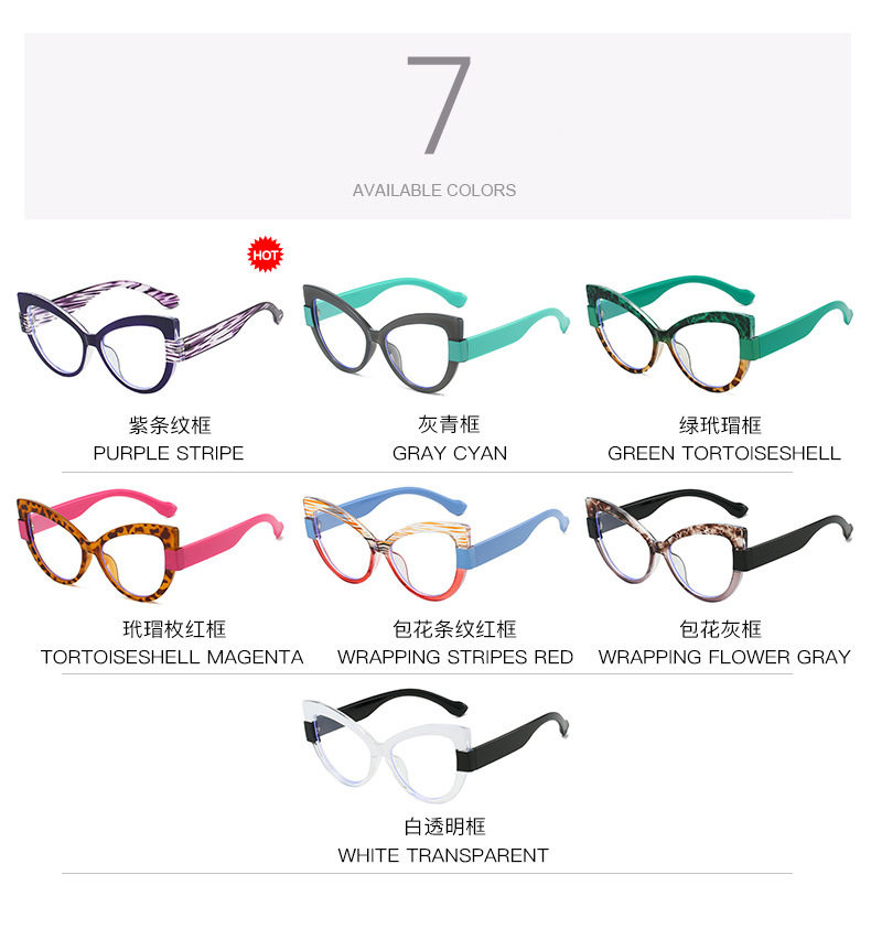 Cat's Eye Coloring Flat Mirror Women's Internet Celebrity Same Style Instagram Style Anti-Blue Light Distinctive Glasses Frame Fashionable for Short-sighted Glasses