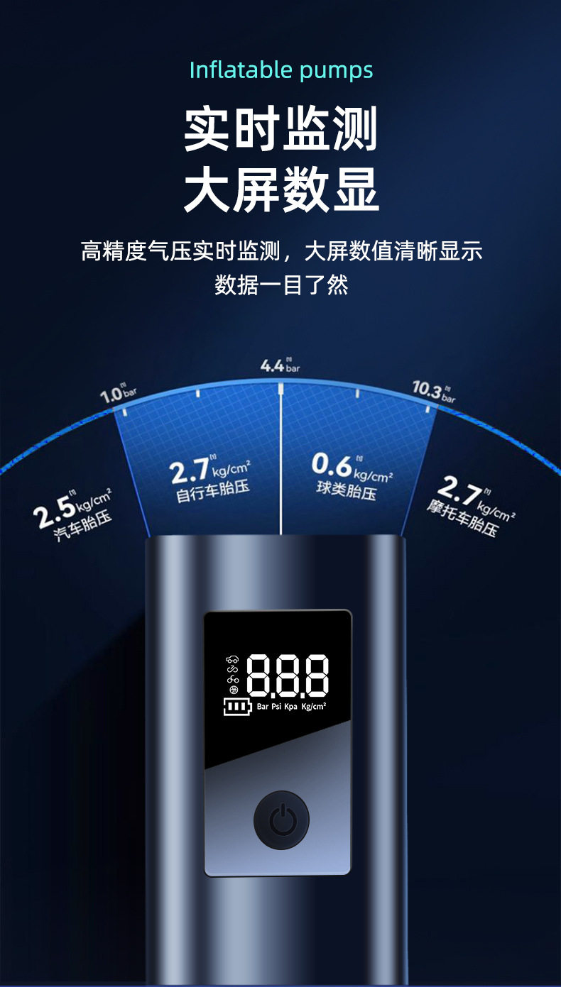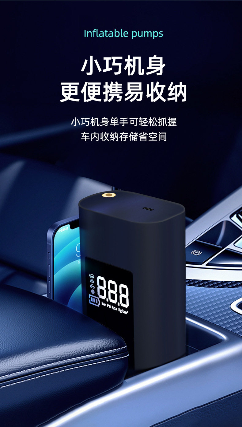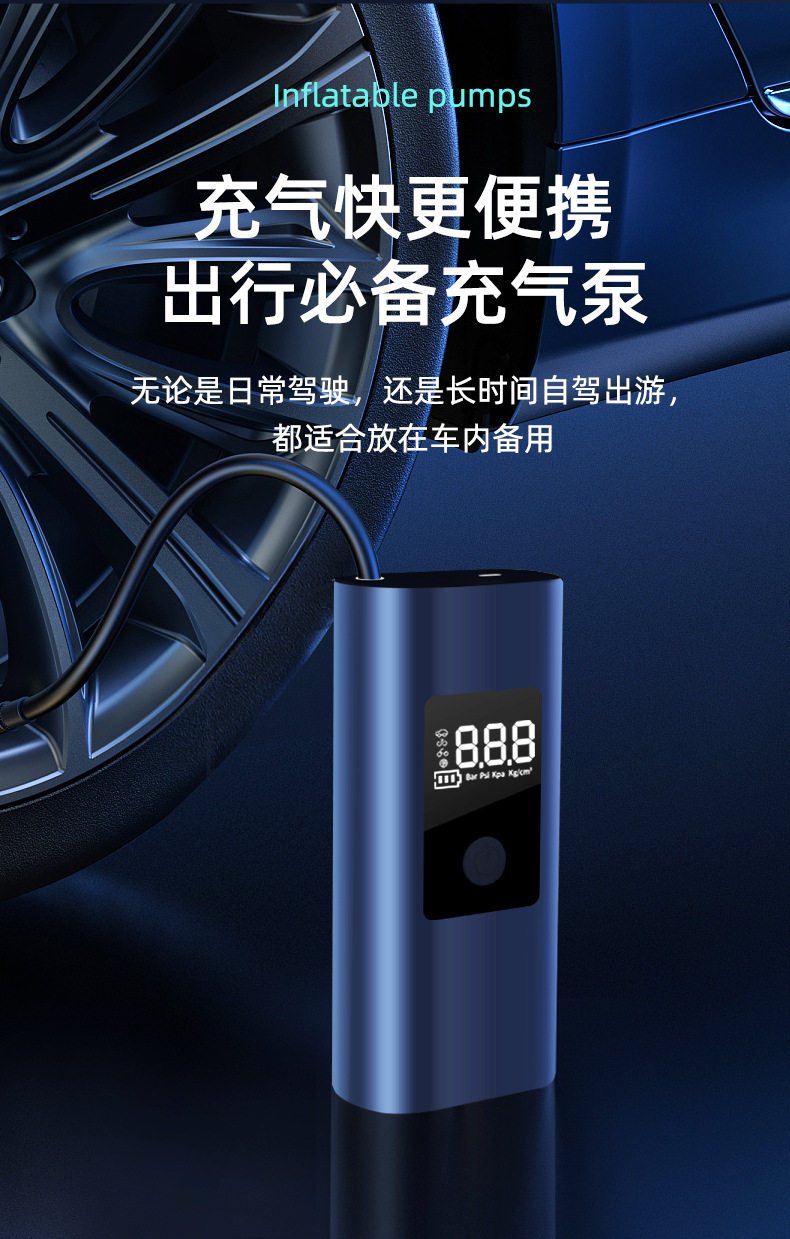 New cross-border air pump large battery capacity portable multifunctional handheld car wireless digital display car air pump