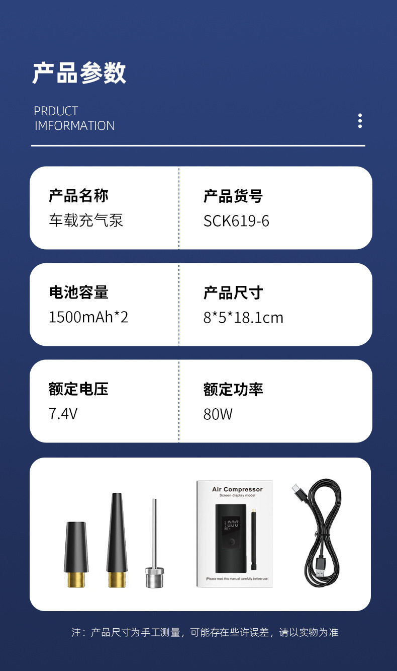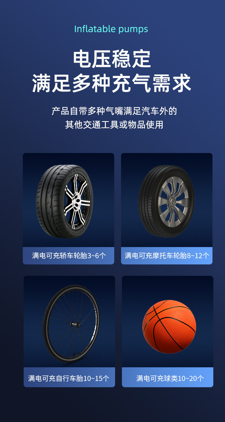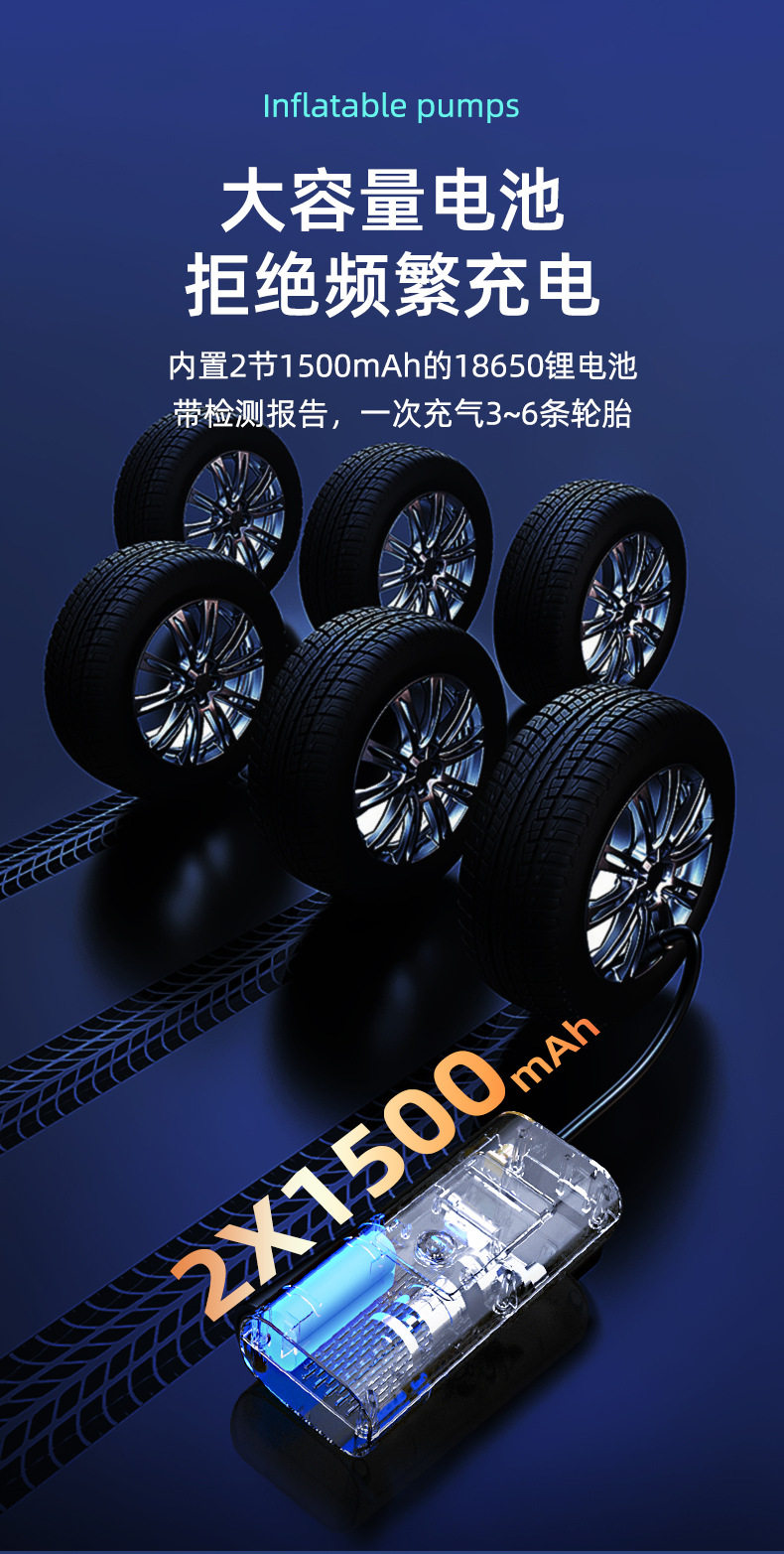 New cross-border air pump large battery capacity portable multifunctional handheld car wireless digital display car air pump