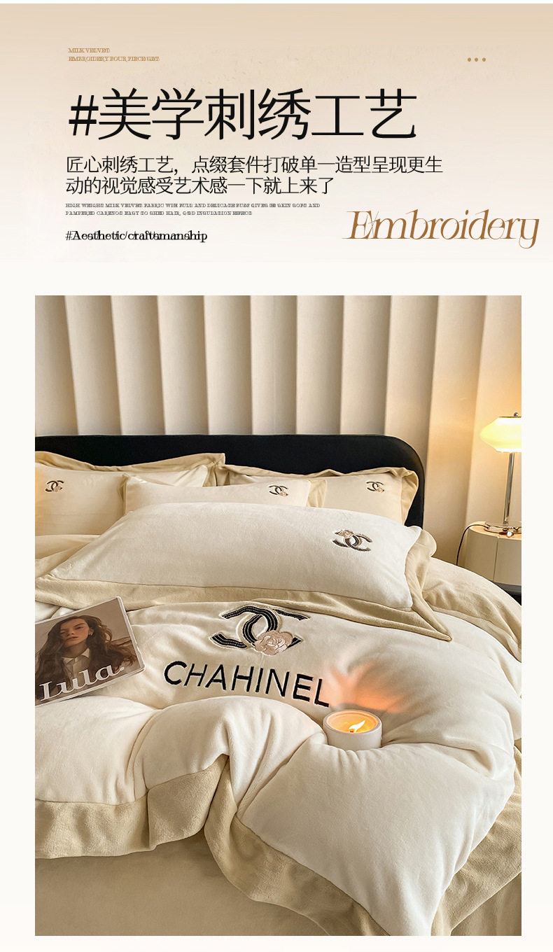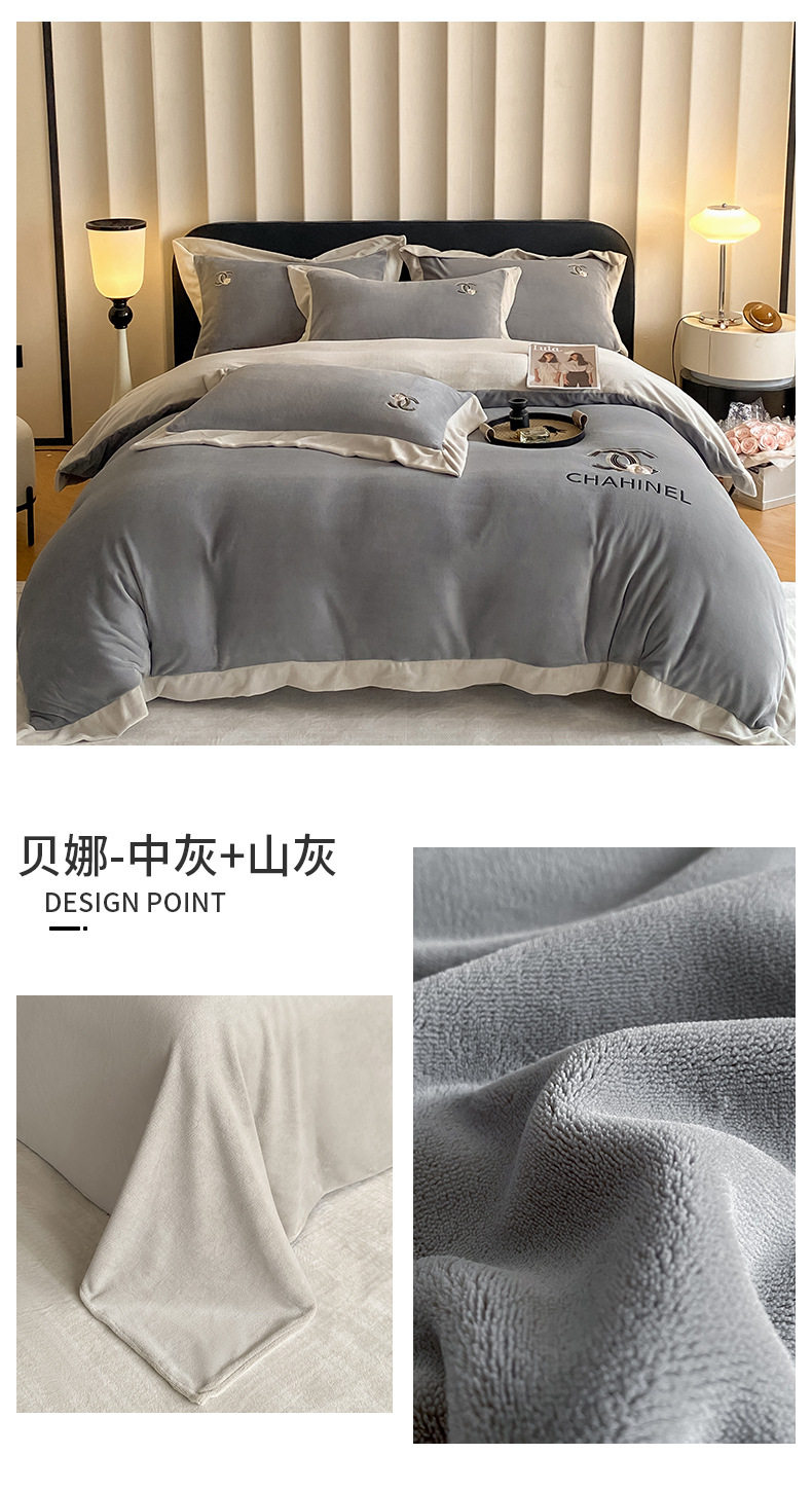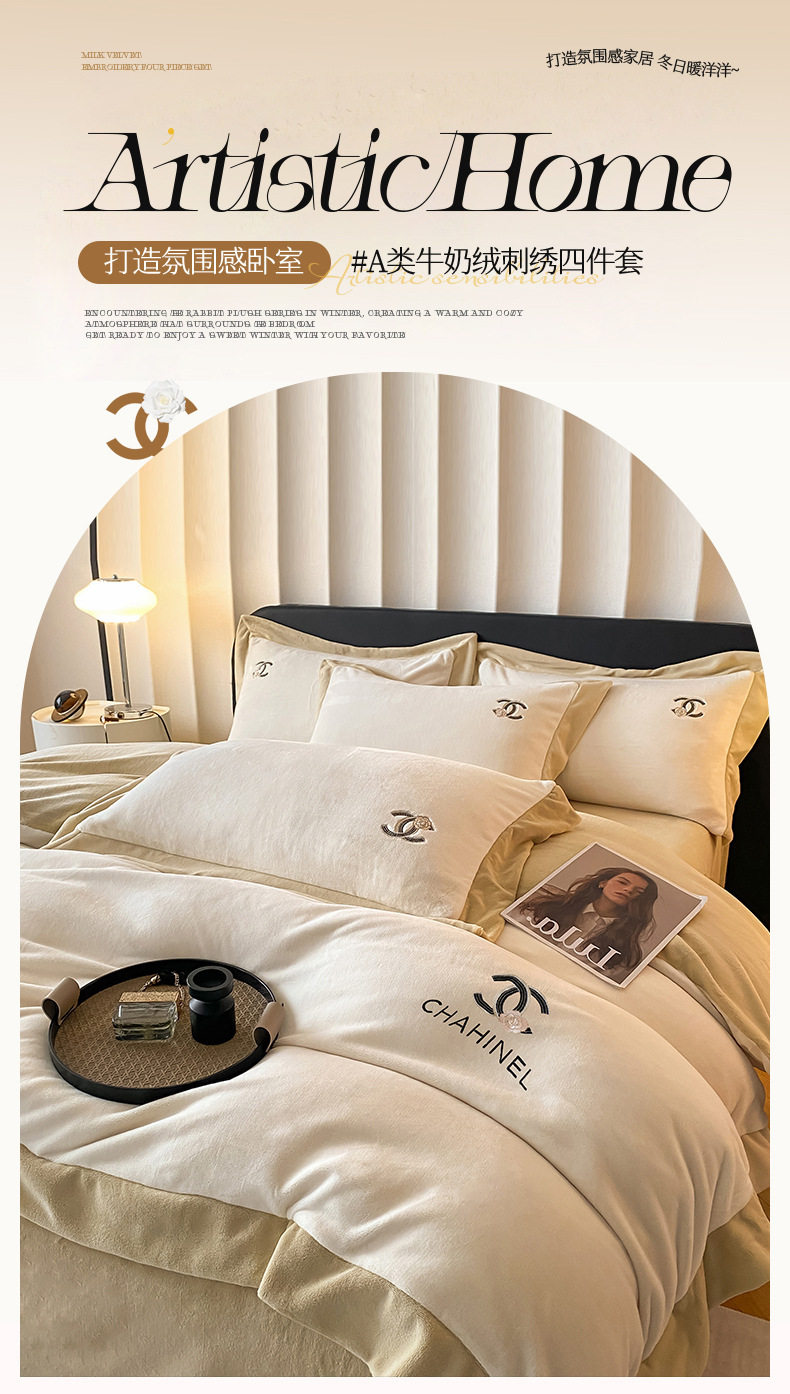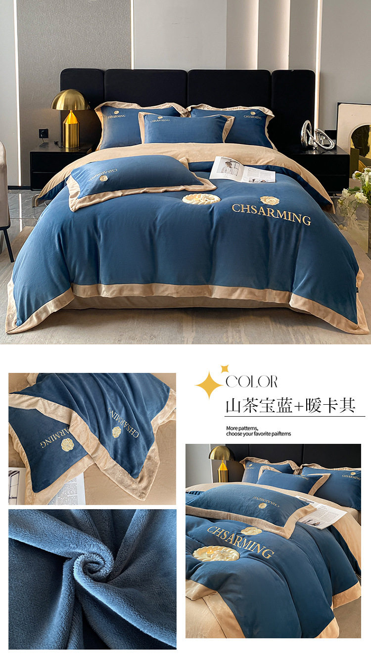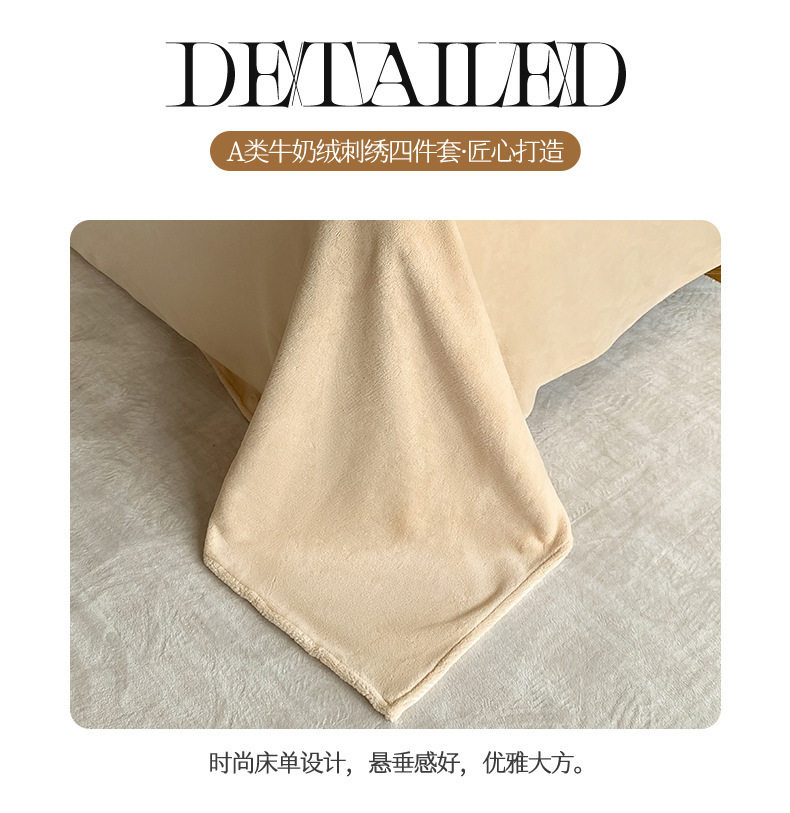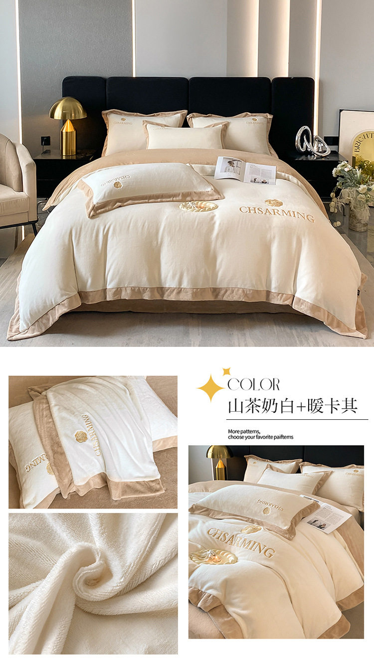 Class a Accessible Luxury Thickeneded Milk Velvet Four-Piece Set Autumn and Winter Double-Sided Baby Velvet Three-Piece Set High-Density Embroidered Quilt Cover Bed Sheets