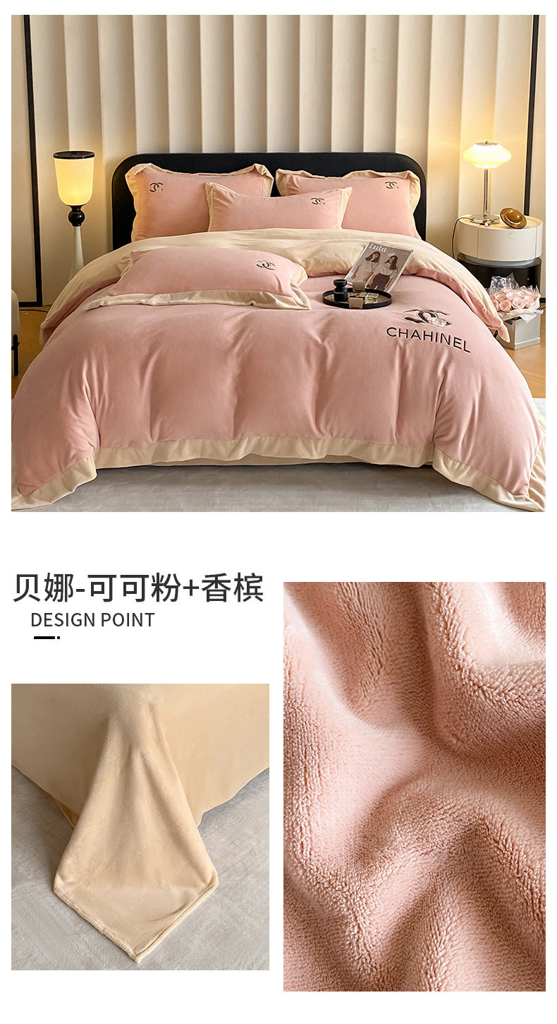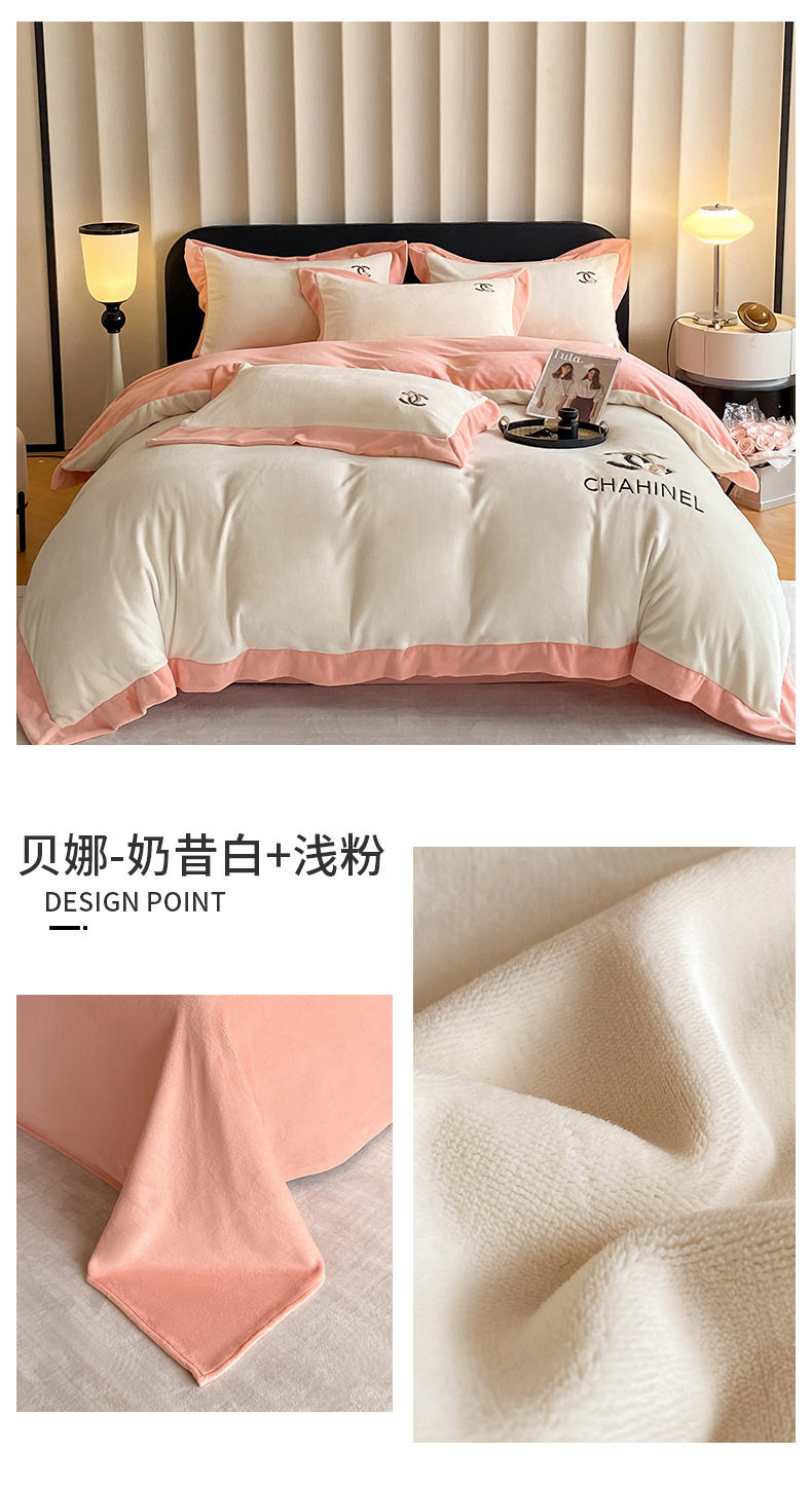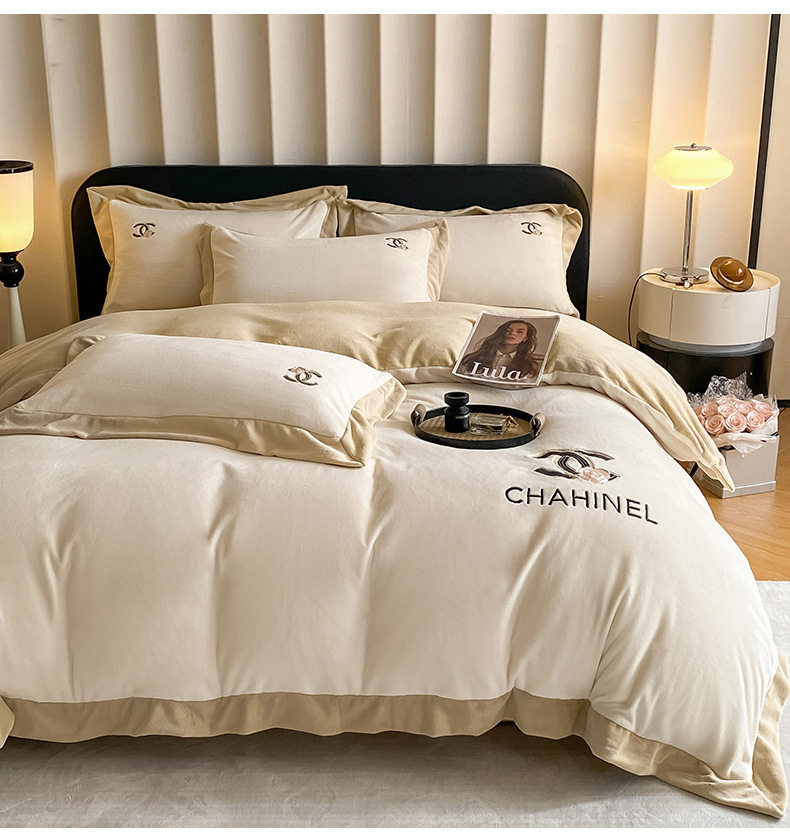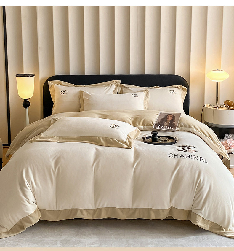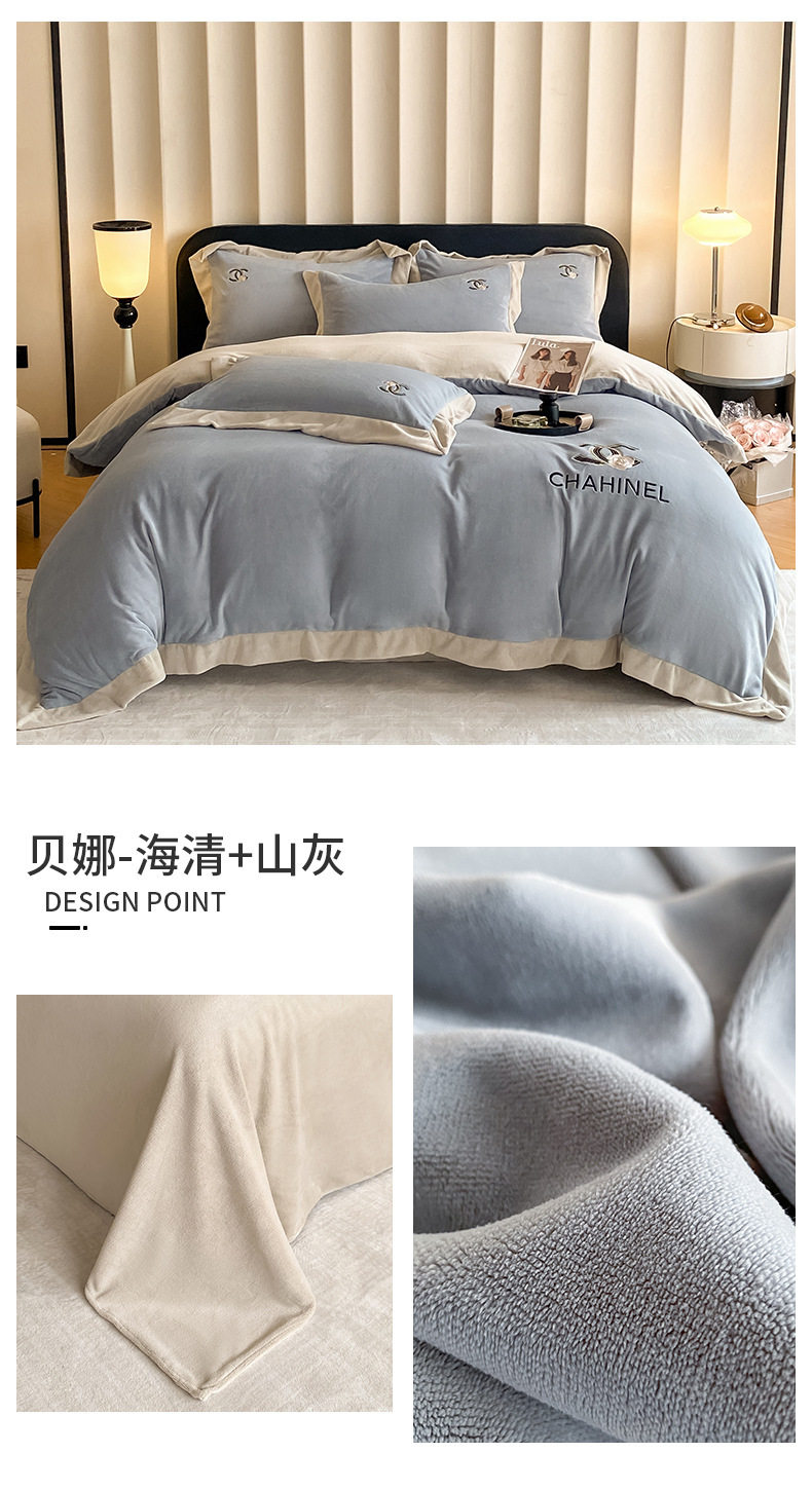 Class a Accessible Luxury Thickeneded Milk Velvet Four-Piece Set Autumn and Winter Double-Sided Baby Velvet Three-Piece Set High-Density Embroidered Quilt Cover Bed Sheets