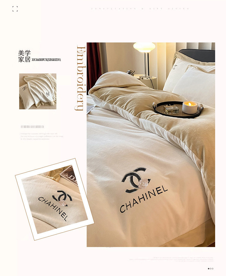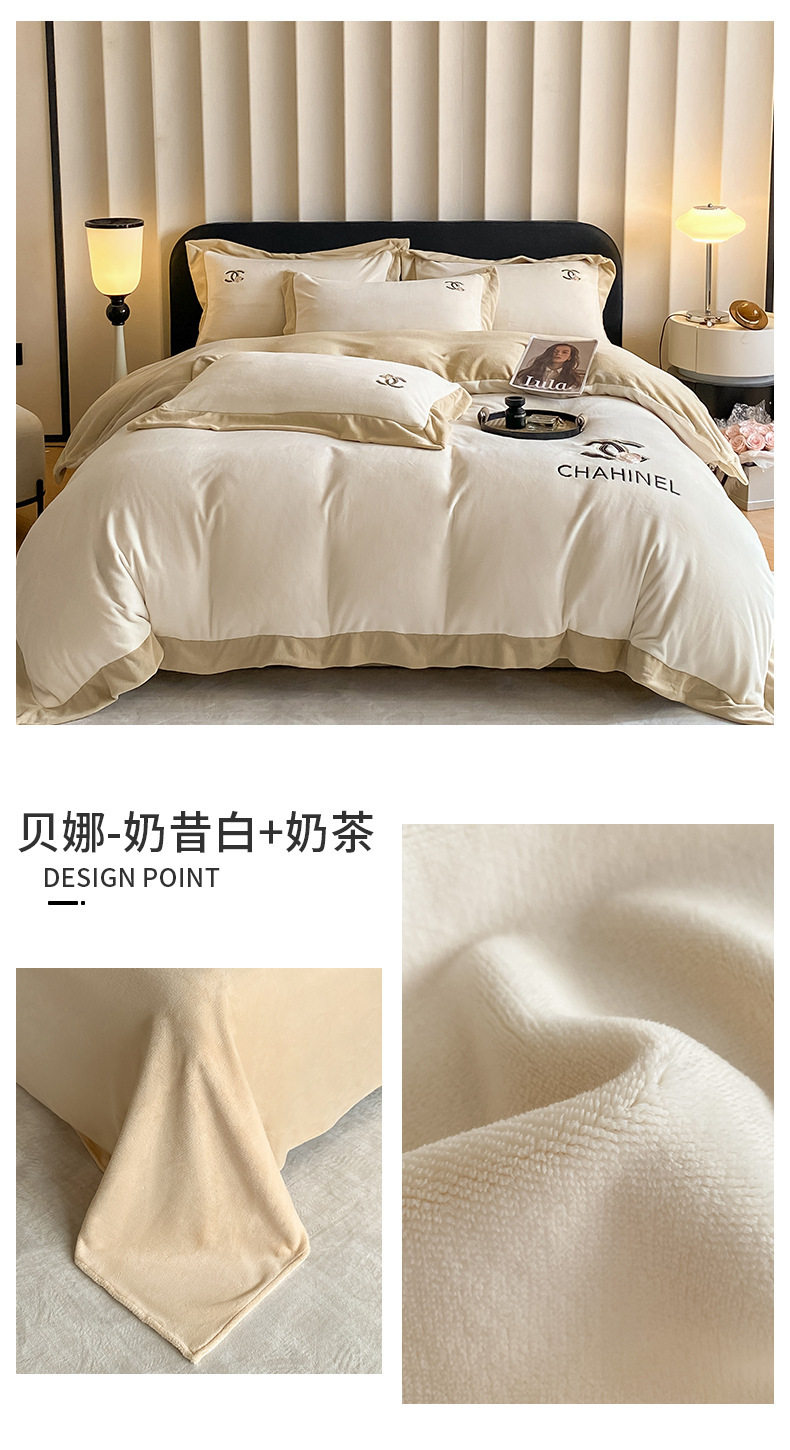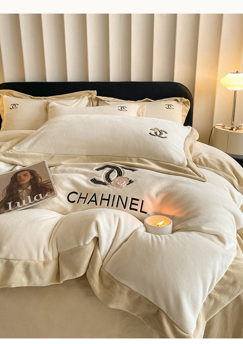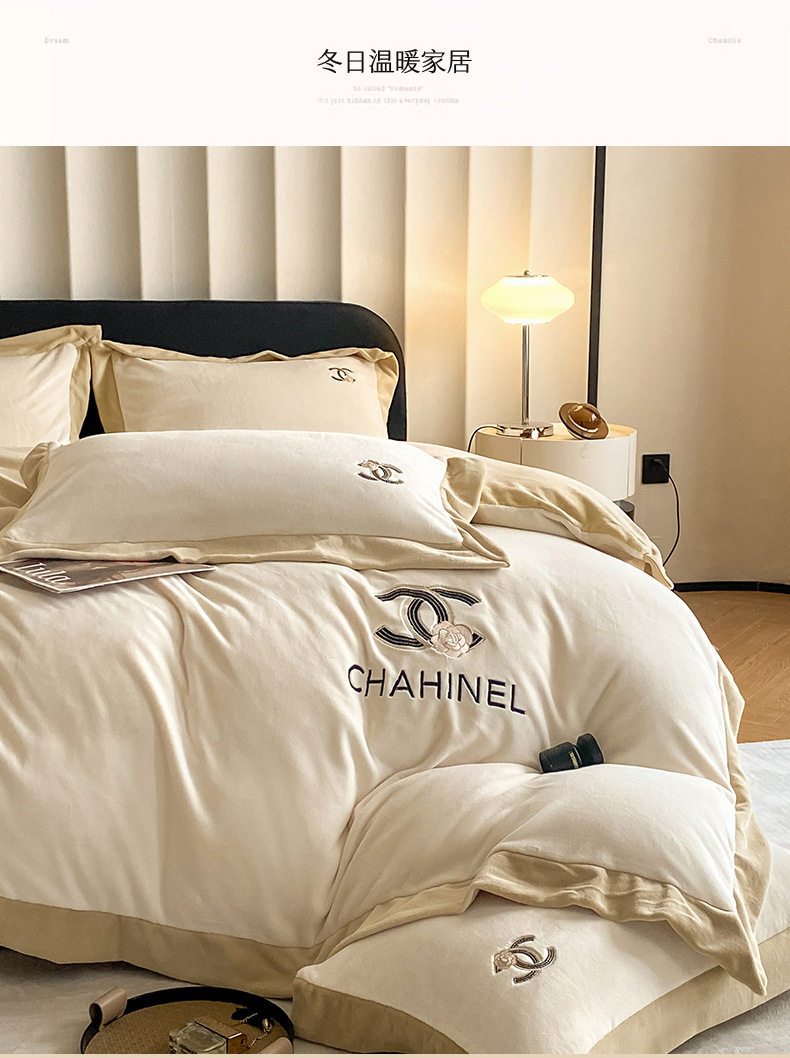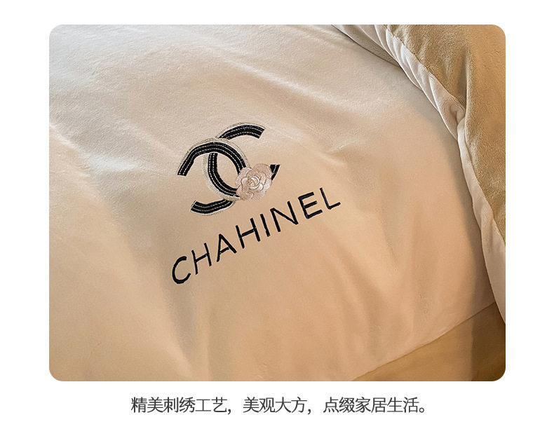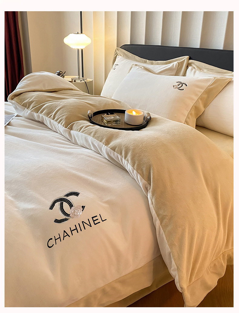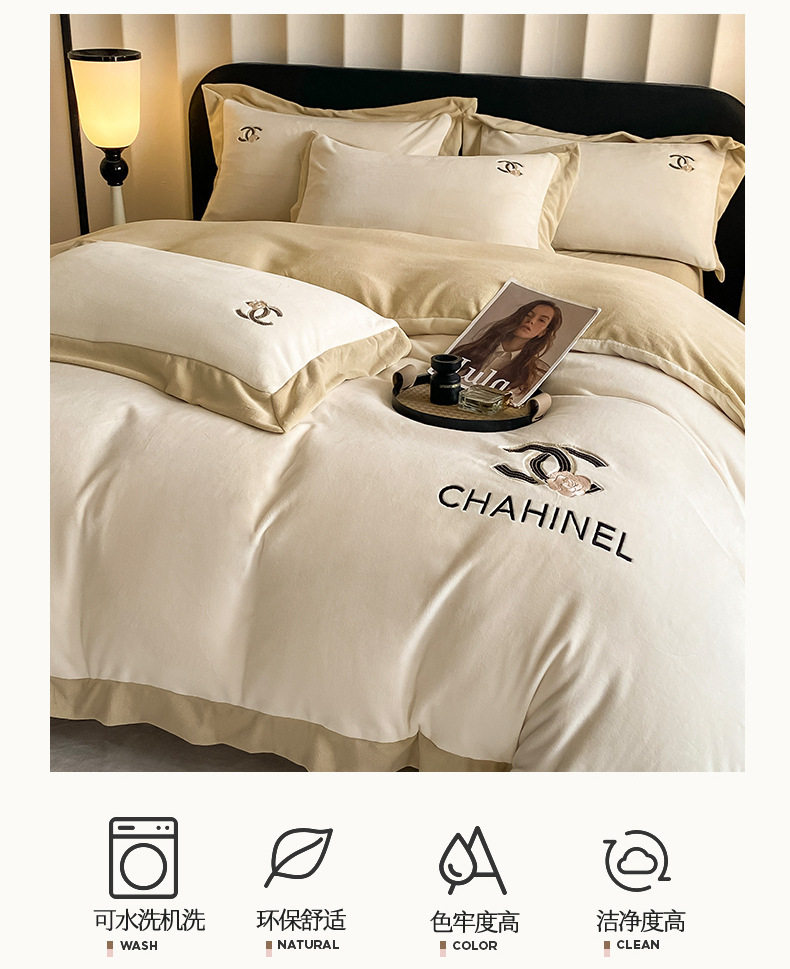 Class a Accessible Luxury Thickeneded Milk Velvet Four-Piece Set Autumn and Winter Double-Sided Baby Velvet Three-Piece Set High-Density Embroidered Quilt Cover Bed Sheets