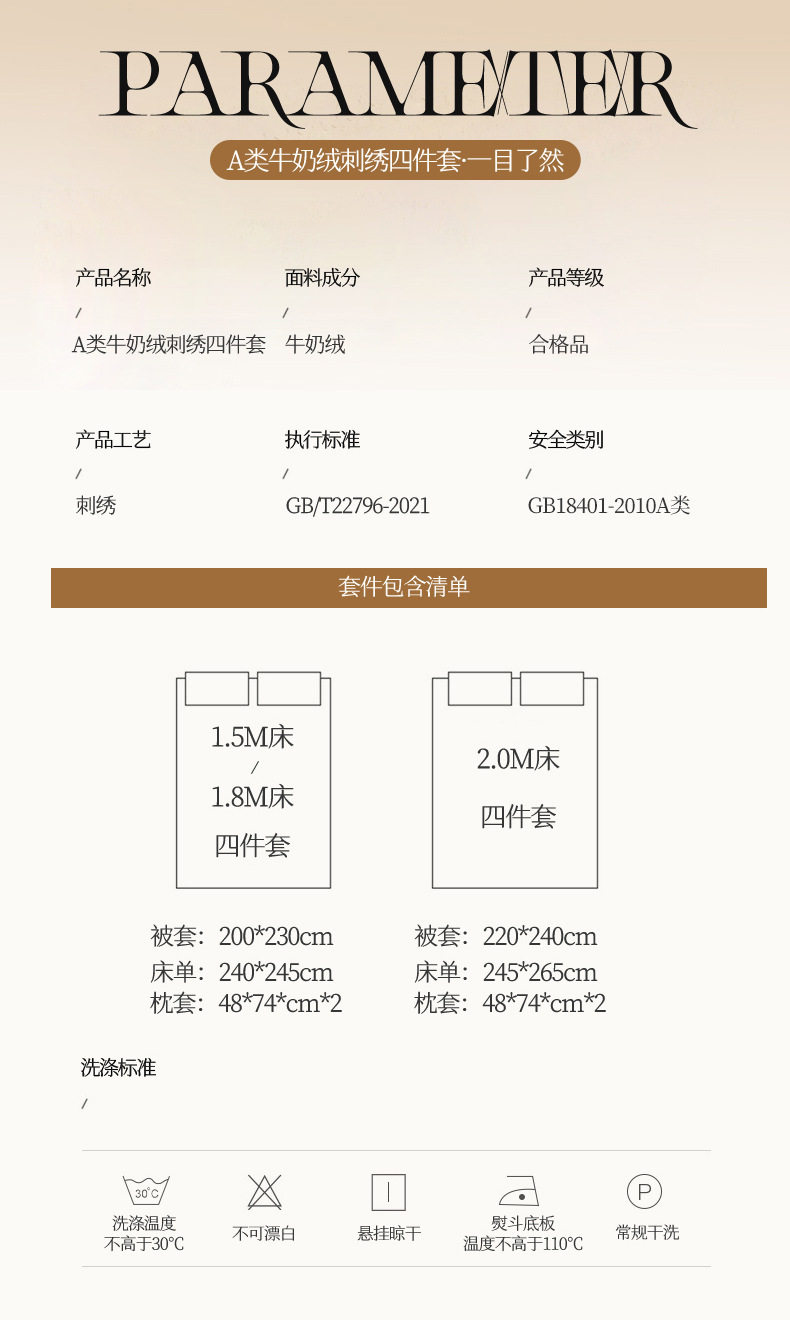 | Size specifications | 1.5-1.8m bed sheet set (4-piece) - fits 200*230cm duvet inserts,2.0m bed sheet four-piece set suitable for 220*240cm quilt core,1.5m fitted sheet set of four is suitable for 200*230cm quilt core,1.8m fitted sheet set of four is suitable for 200*230cm quilt core,1.2m bed sheet three-piece set, suitable for 150*200cm duvet inserts |