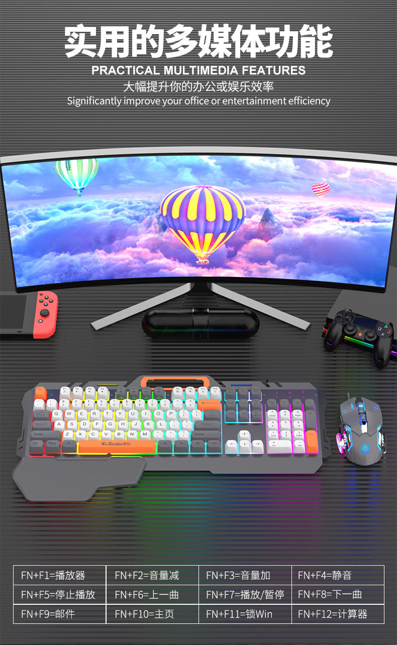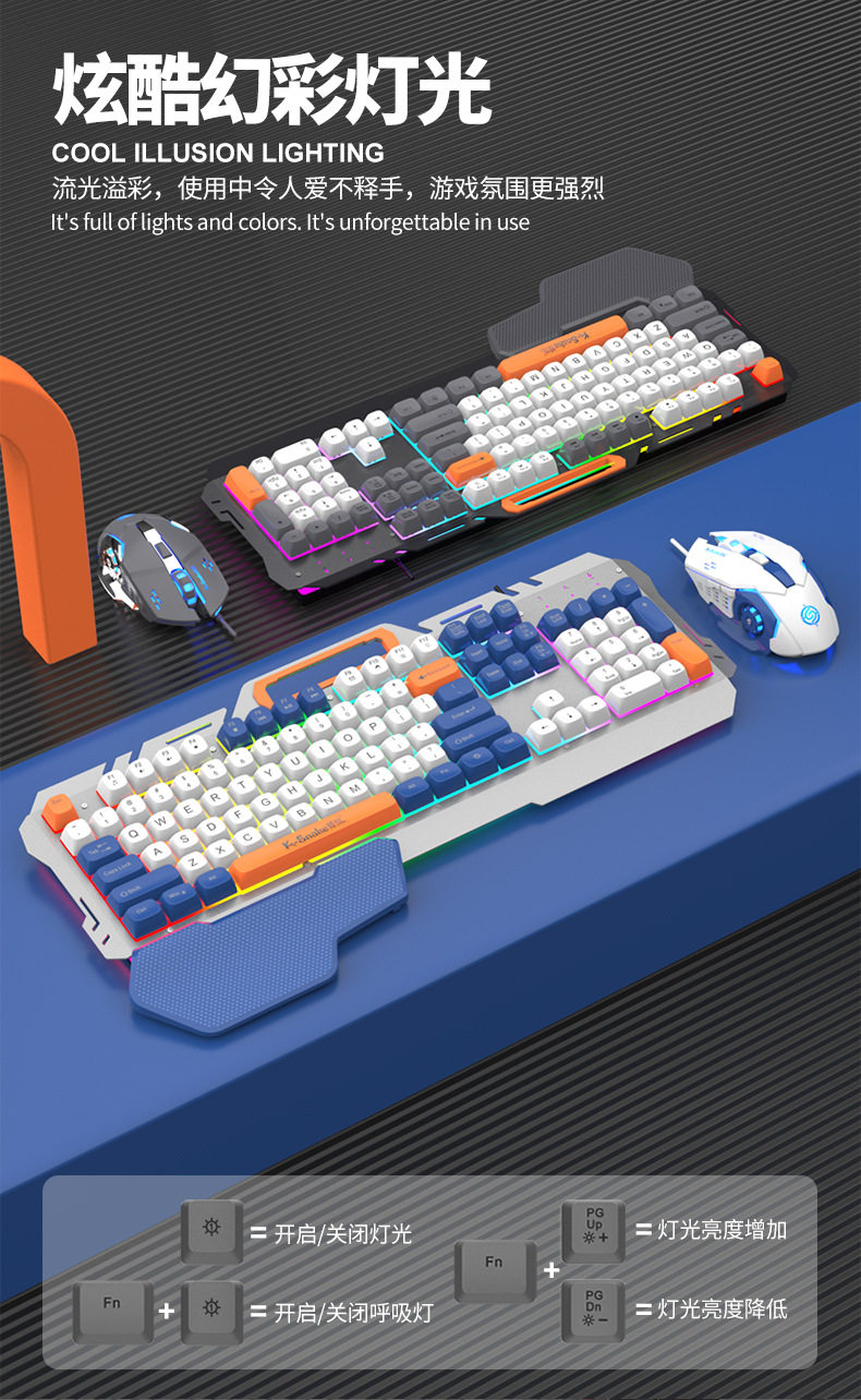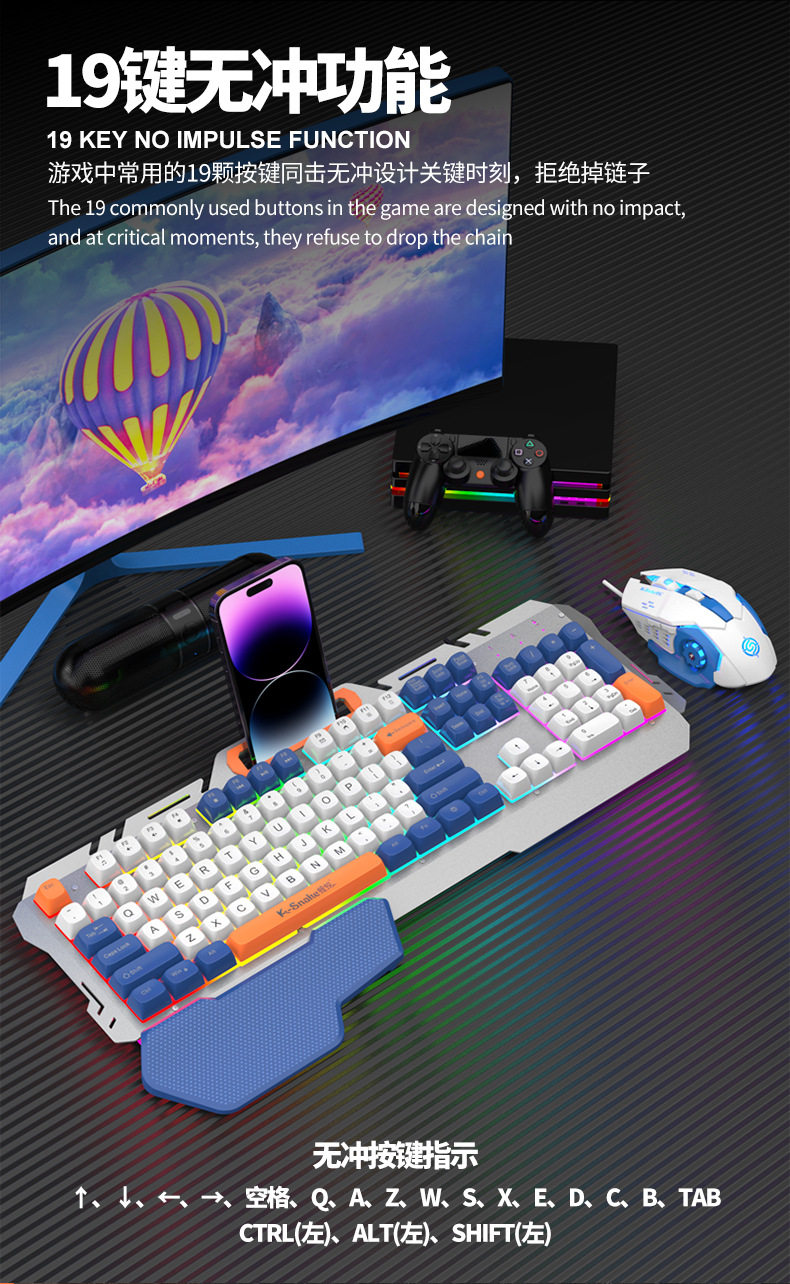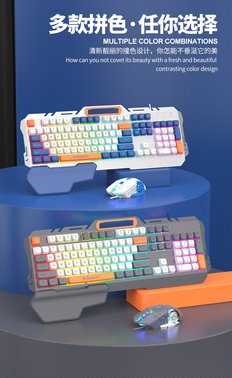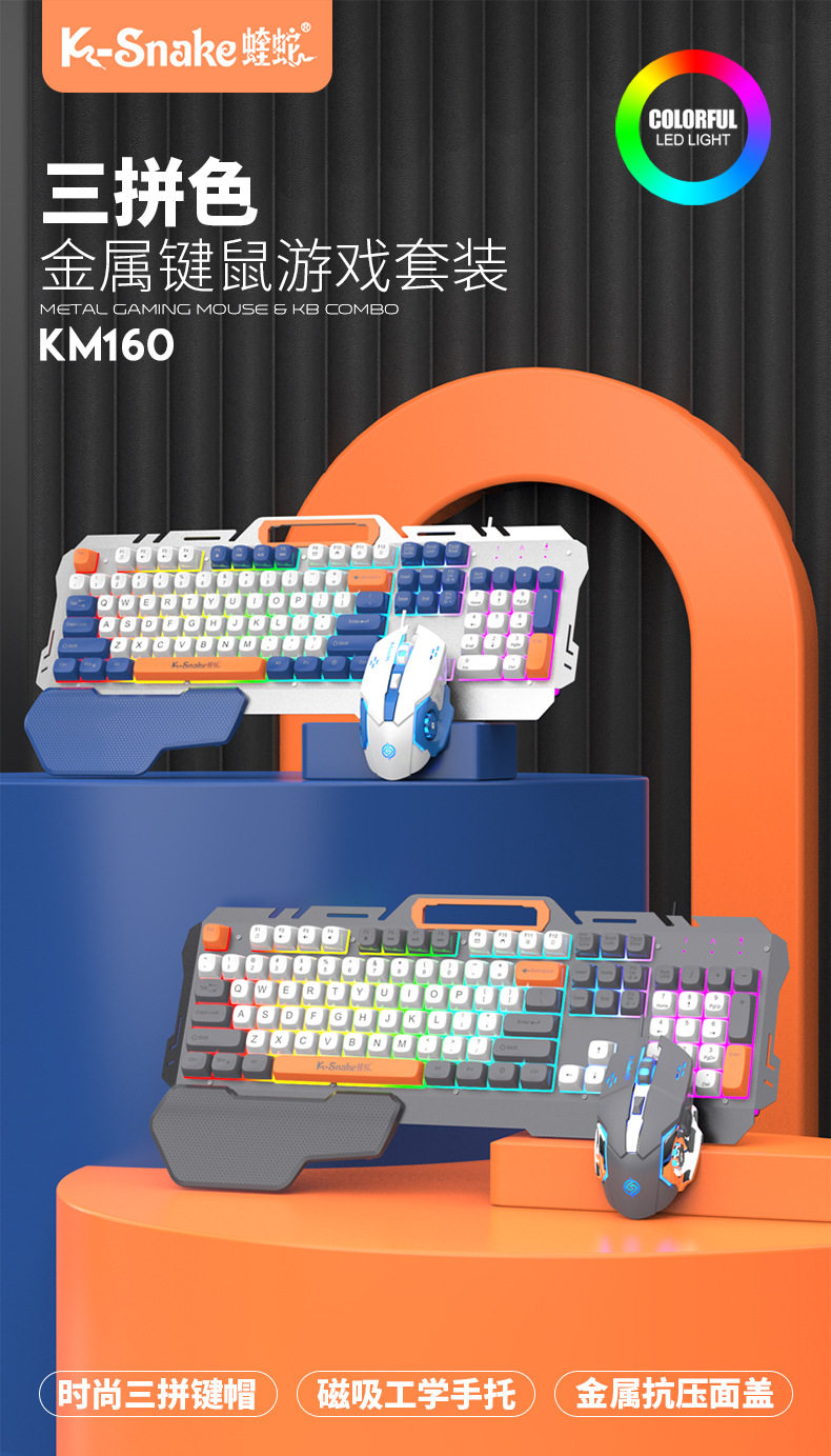Viper's New Km160 Wired Gaming Keyboard Metal Panel Fashionable Color Matching Ball Cap Computer Notebook Keyboard and Mouse