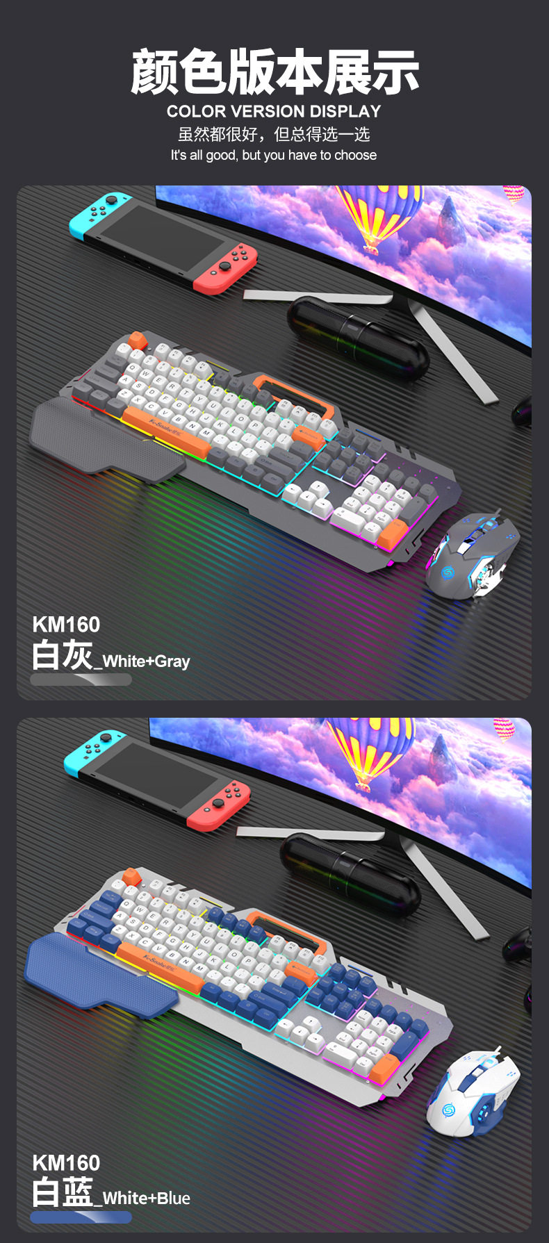 | Color | Viper km160 keyboard + mouse (blue),Viper km160 keyboard + mouse (grey),Viper k16 keyboard (blue),Viper k16 keyboard (gray),Viper km160 keyboard + mouse [qingti],Viper km160 keyboard + mouse [blackberry],Viper km160 keyboard + mouse [micropowder],Viper k16 keyboard [qingti],Viper k16 keyboard [blackberry],Viper k16 keyboard [micro dust] |