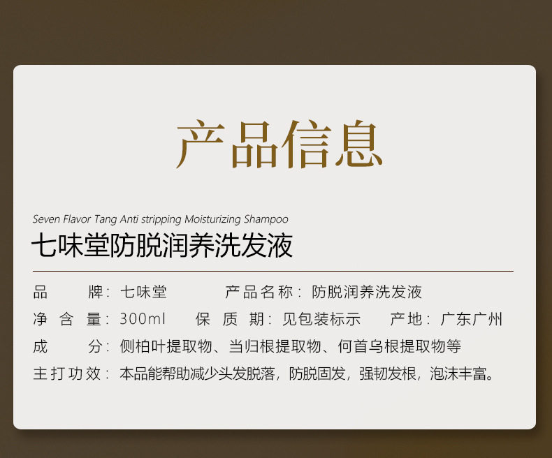 | Item number | Qiweitang anti-hair loss shampoo 300ml |