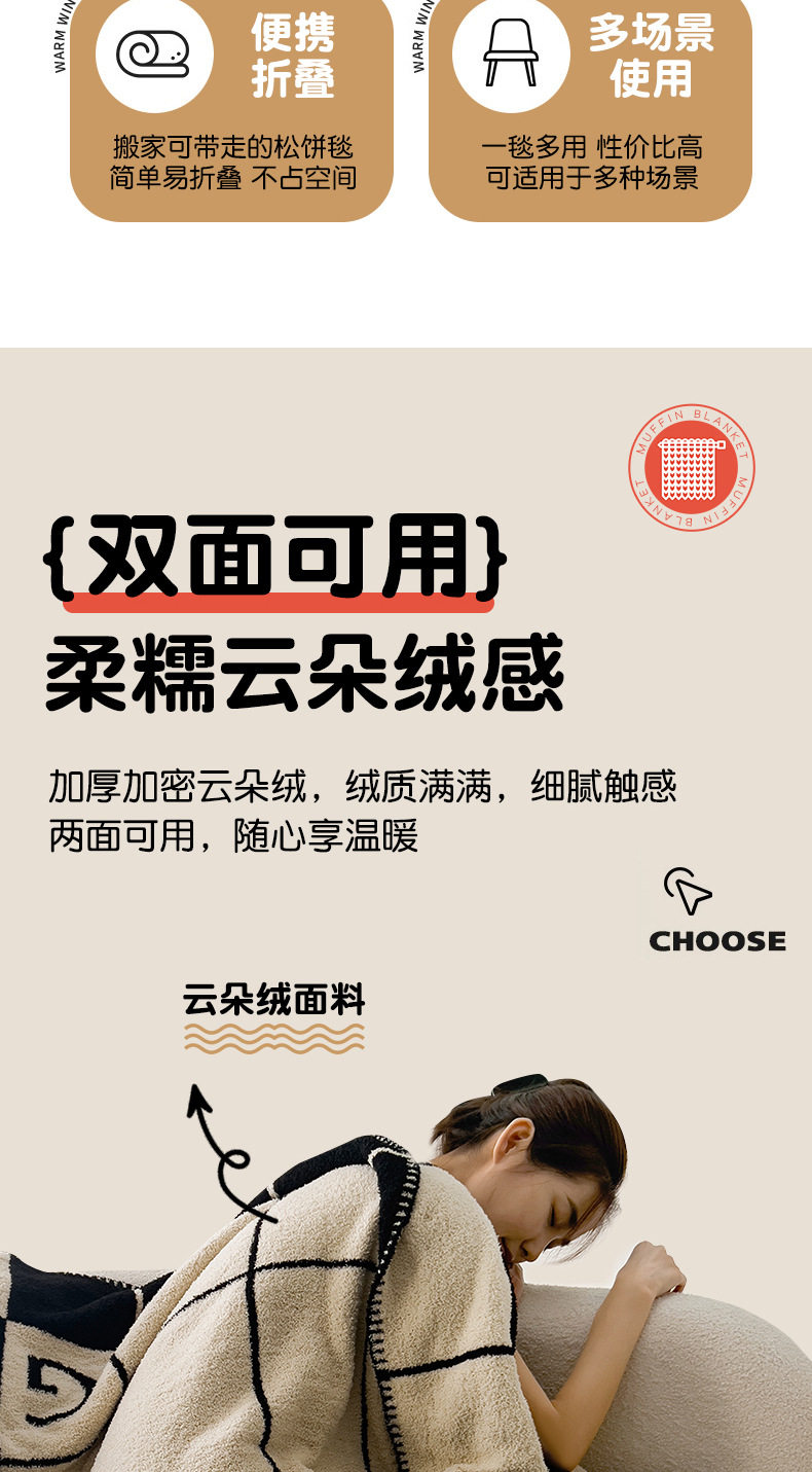 Cloud Velvet Muffin Blanket Nap Class A Office Nap Blanket Air-conditioning Blanket Small Blanket Nap Blanket Cover Blanket