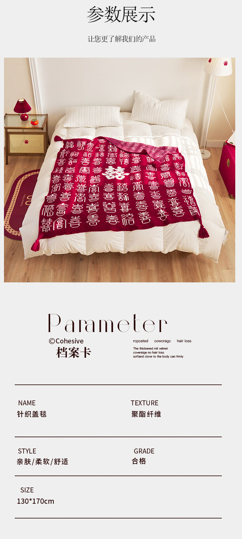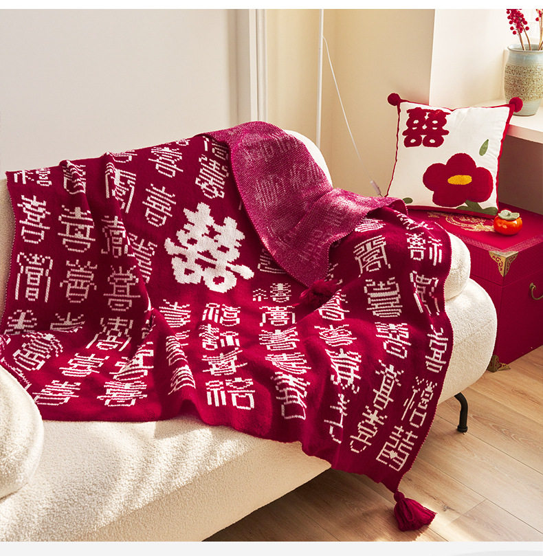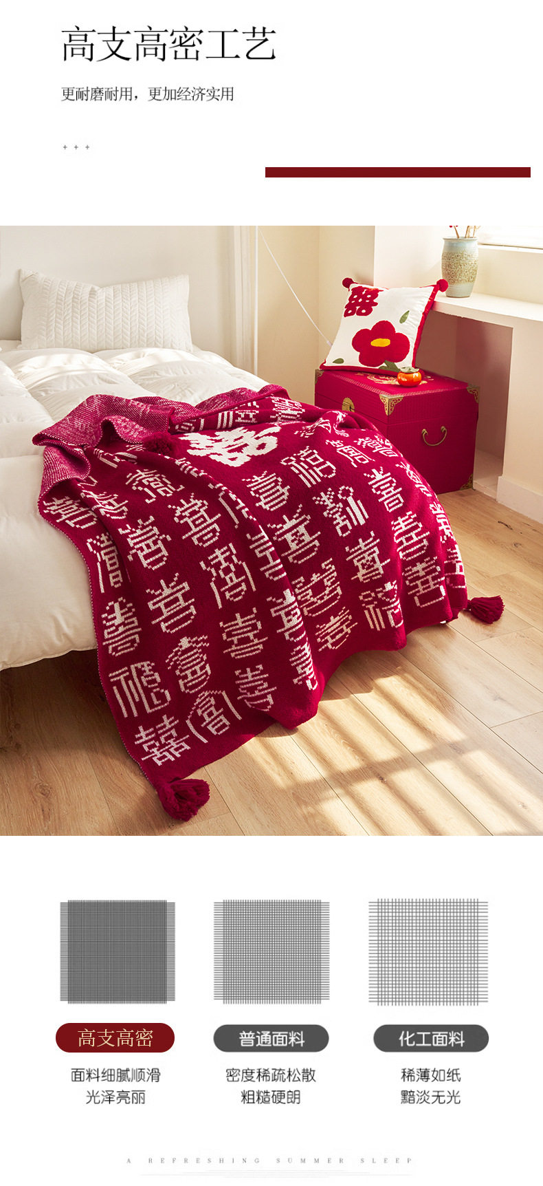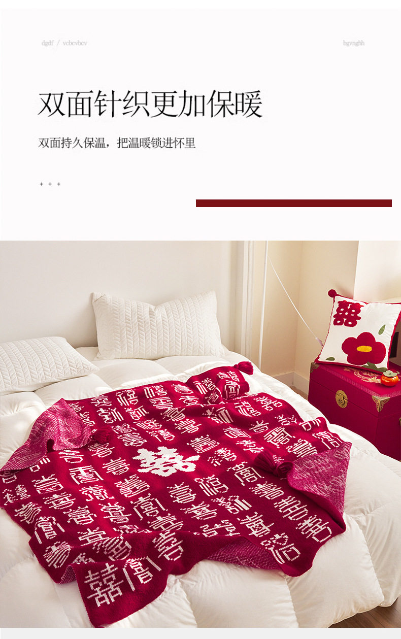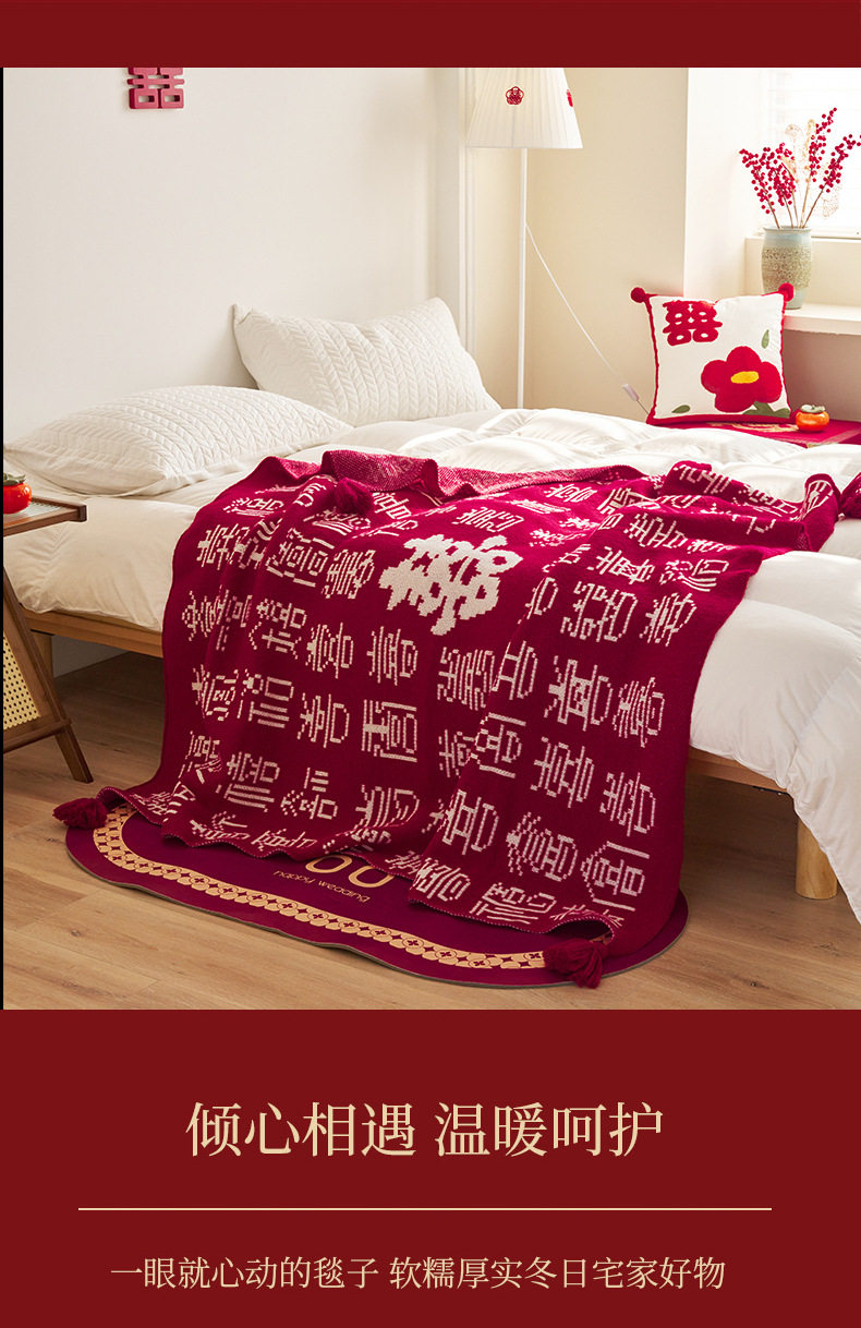 High-end Wedding Wedding Wedding Blanket Nap Blanket Wedding Red Knitted Blanket Sofa Blanket Wedding Gift Accompanying