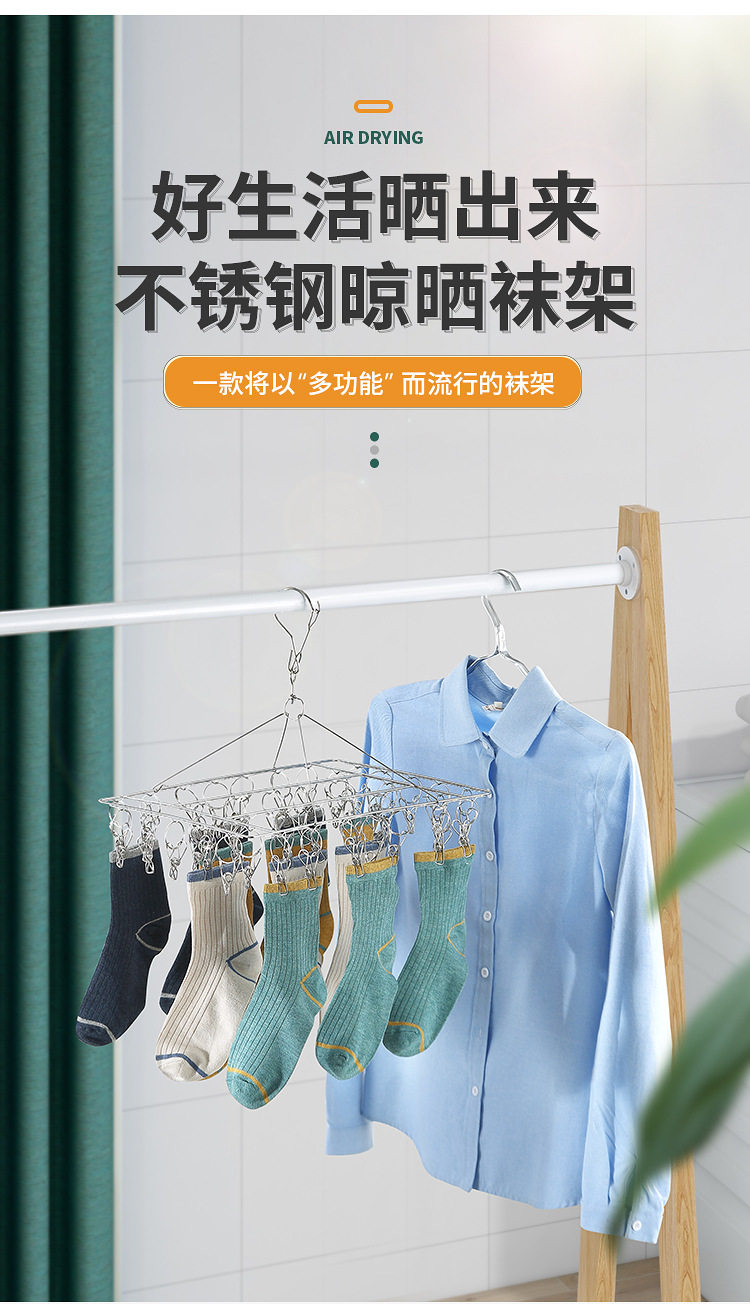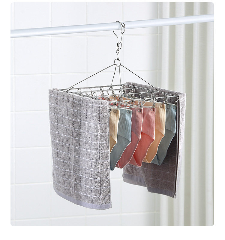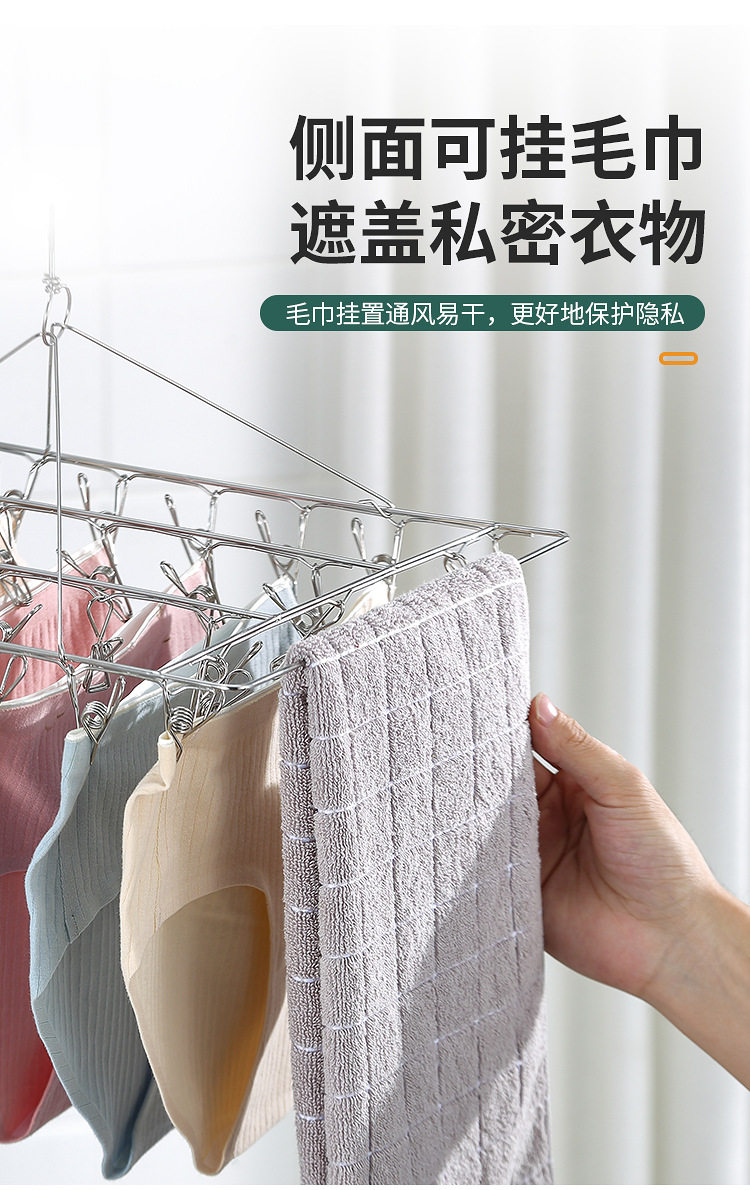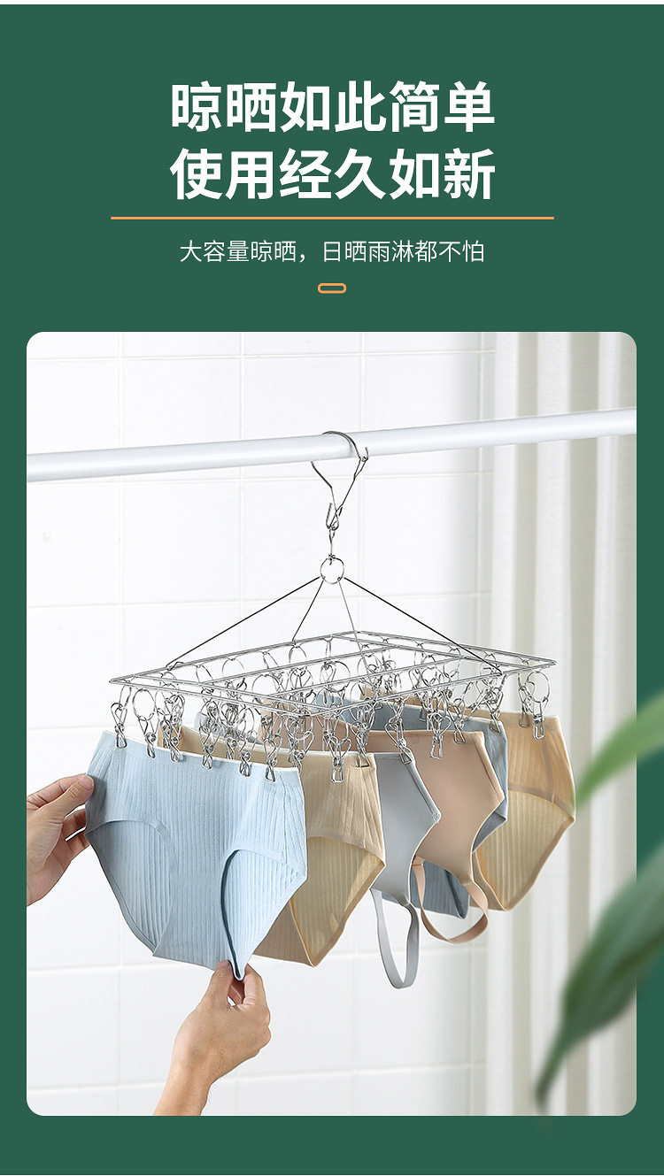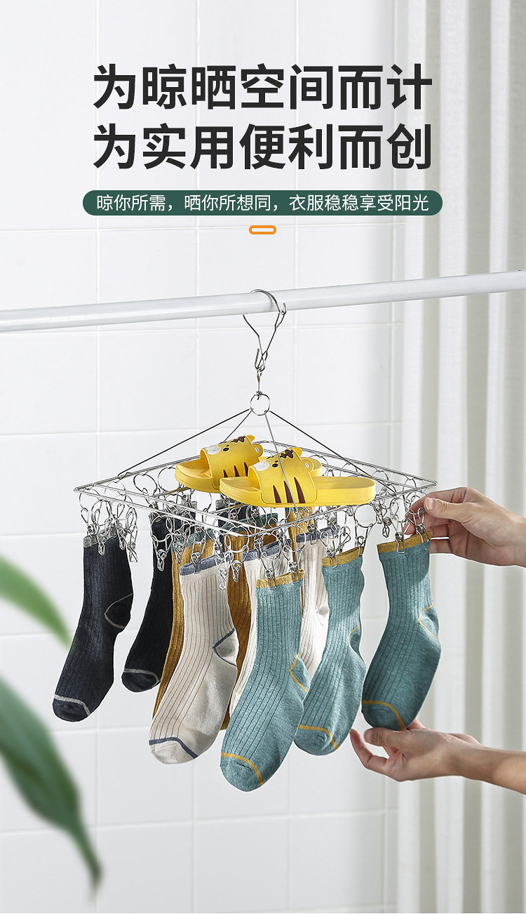 Stainless Steel Hosiery Rack Drying Rack Folding Multi-clip Clothes Drying Pin Socks Windproof Baby Drying Rack Household Commodity