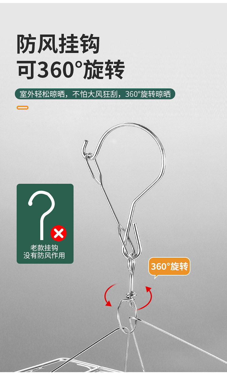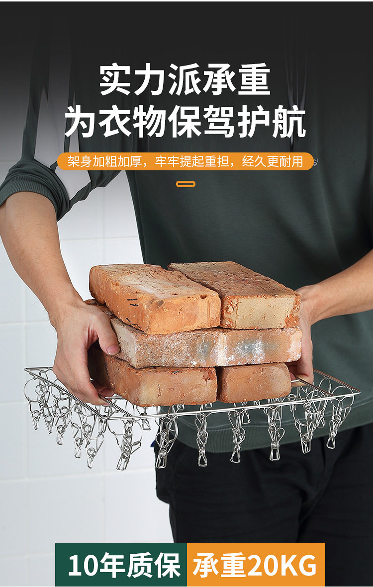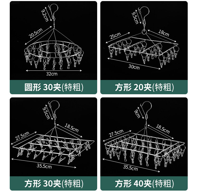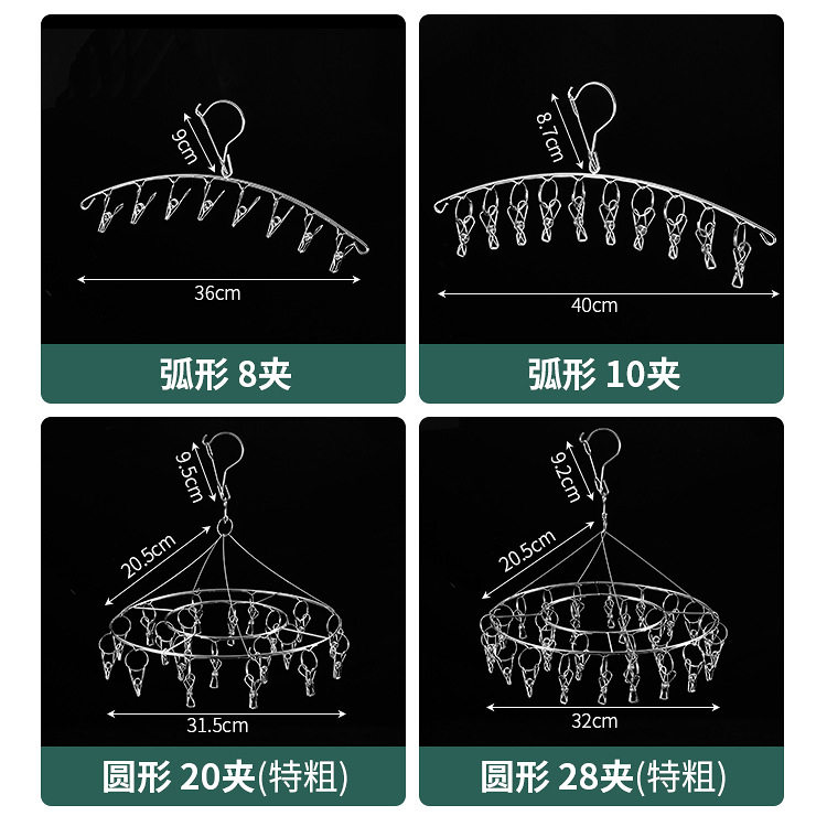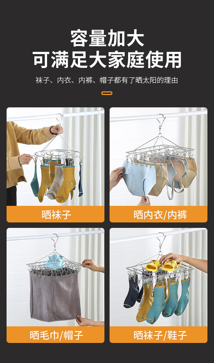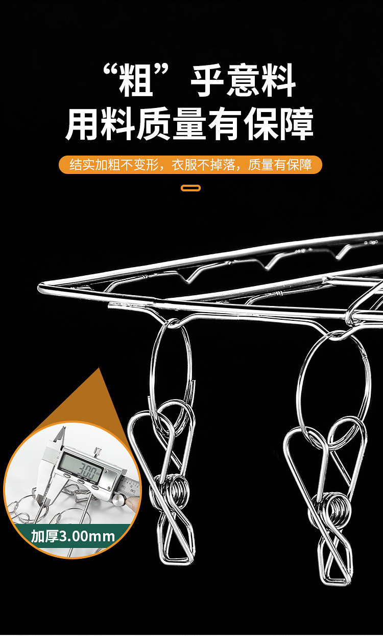 Stainless Steel Hosiery Rack Drying Rack Folding Multi-clip Clothes Drying Pin Socks Windproof Baby Drying Rack Household Commodity