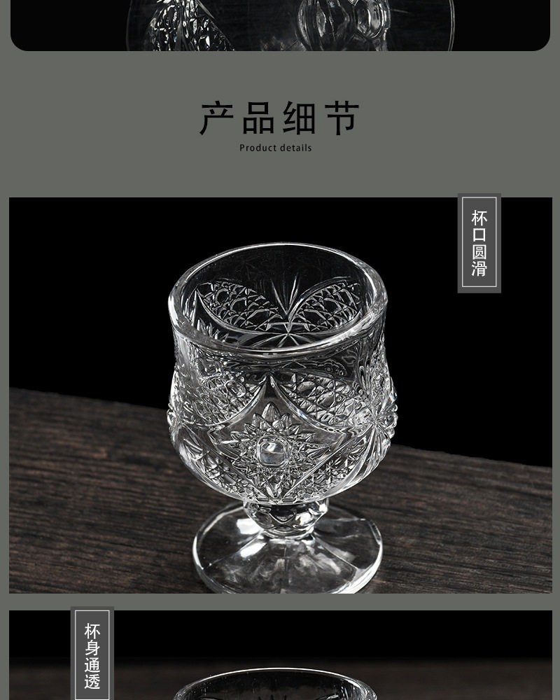 6 pieces of vintage carved glass white wine glass carved small wine glass one or two wine glasses sake red wine wine glass household