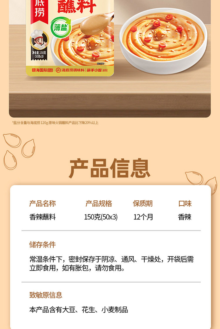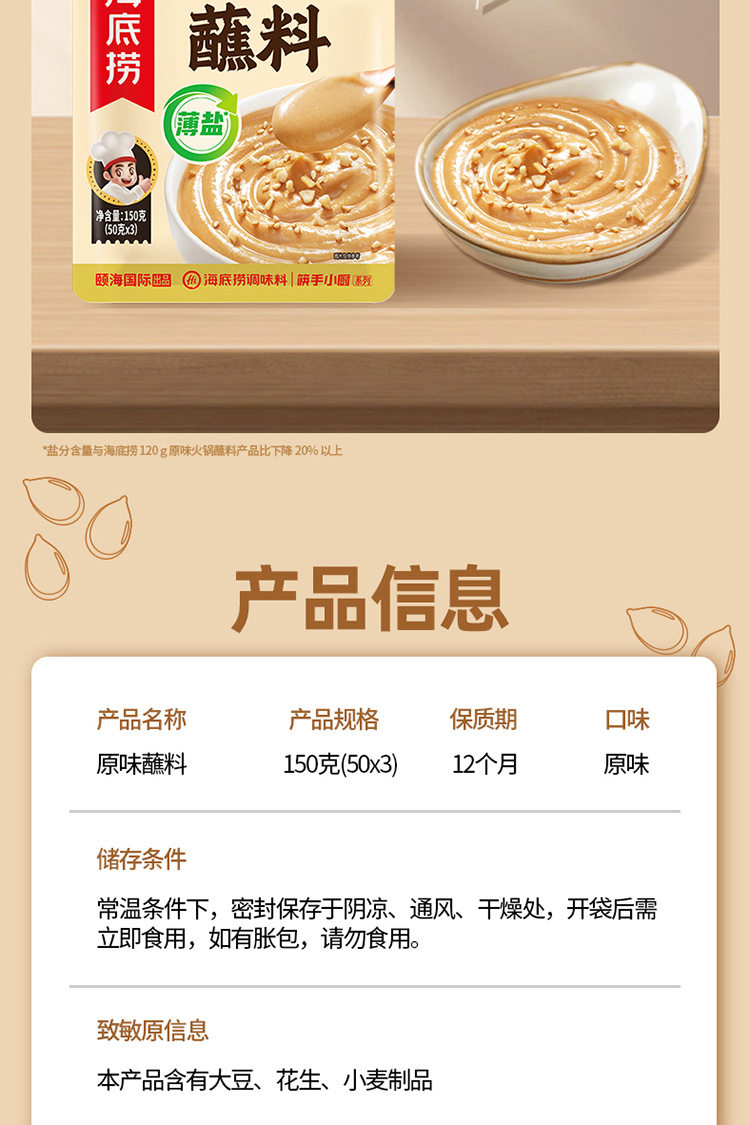 Haidilao Original Dipping Sauce 150g Spicy Sesame Sauce Hot Pot Dipping Sauce Sichuan Sesame Sauce Noodles Mixed with Vegetables Hot Pot Seasoning