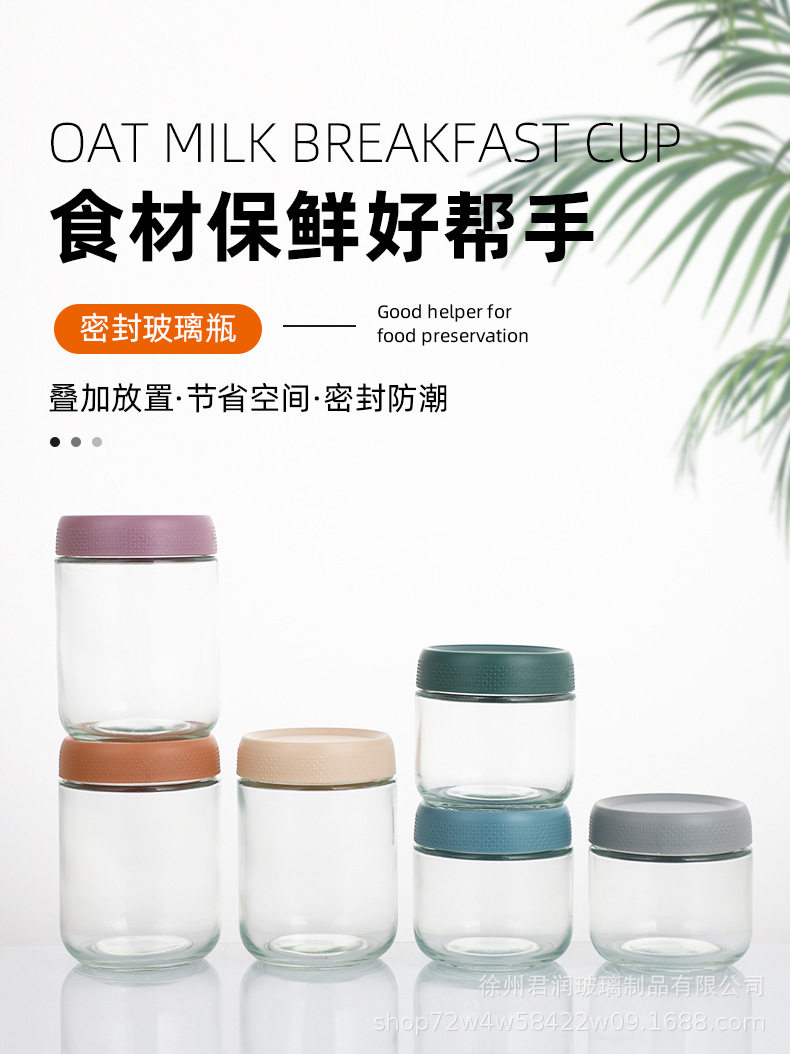 Amazon Mason Jar Glass Jar with Sealed Lid Oatmeal Cup Snack Nut Food Storage Jar Cross Border Supplies