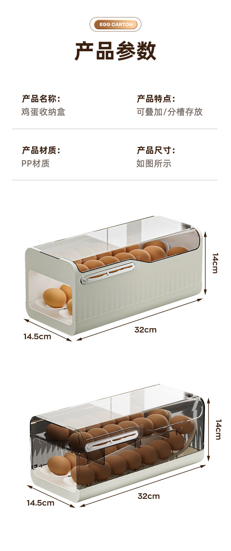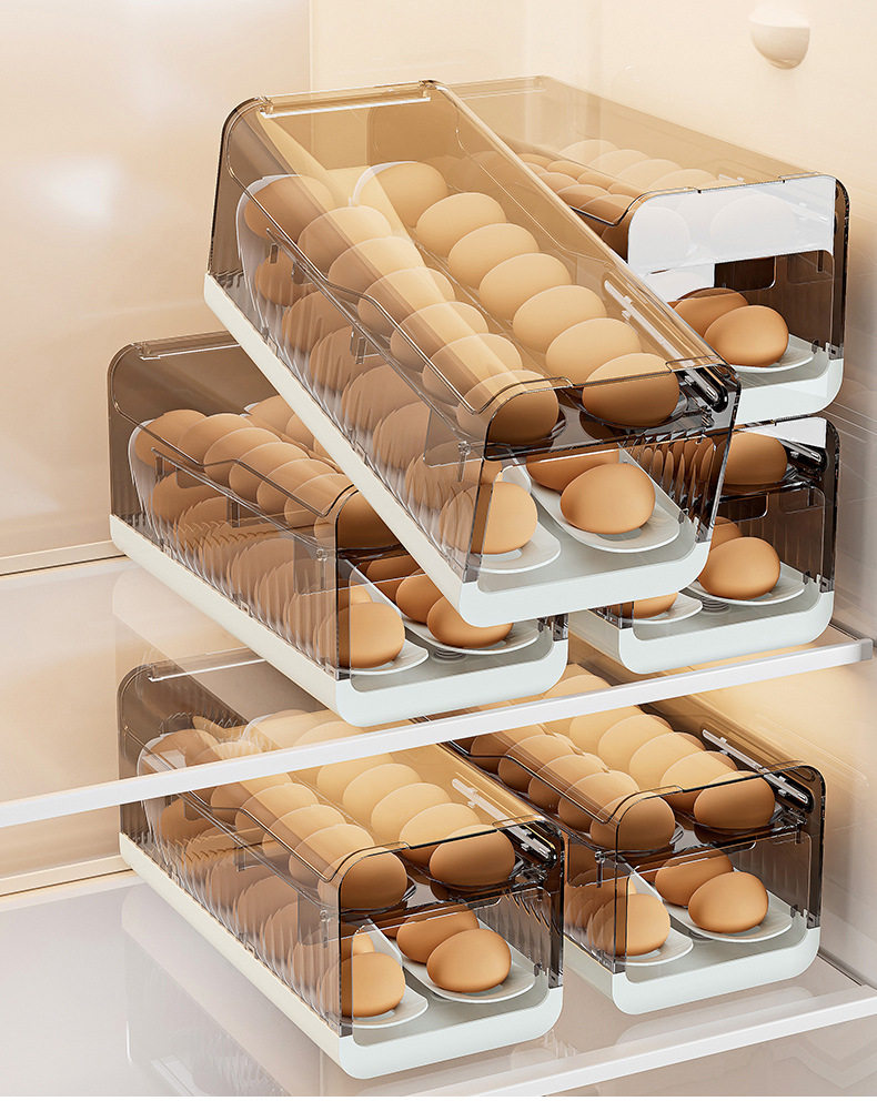 Egg fresh-keeping storage box automatically rolls off large-capacity kitchen multi-layer stackable plastic egg tray egg box