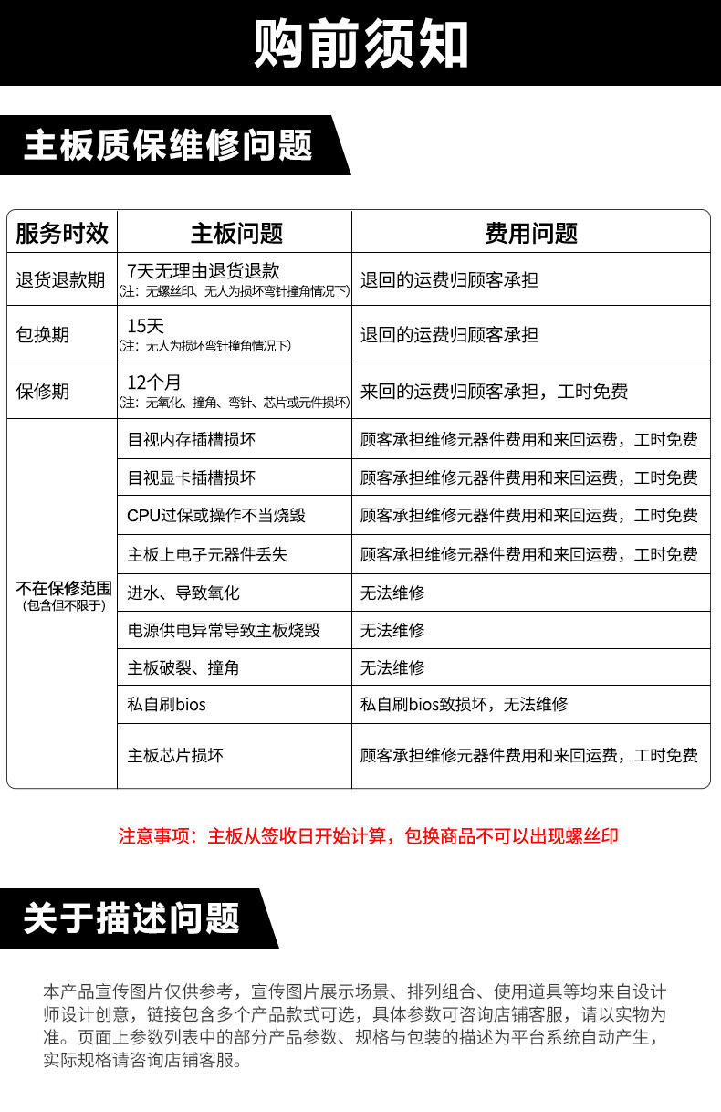 | After-sales service | Three guarantees in the store |