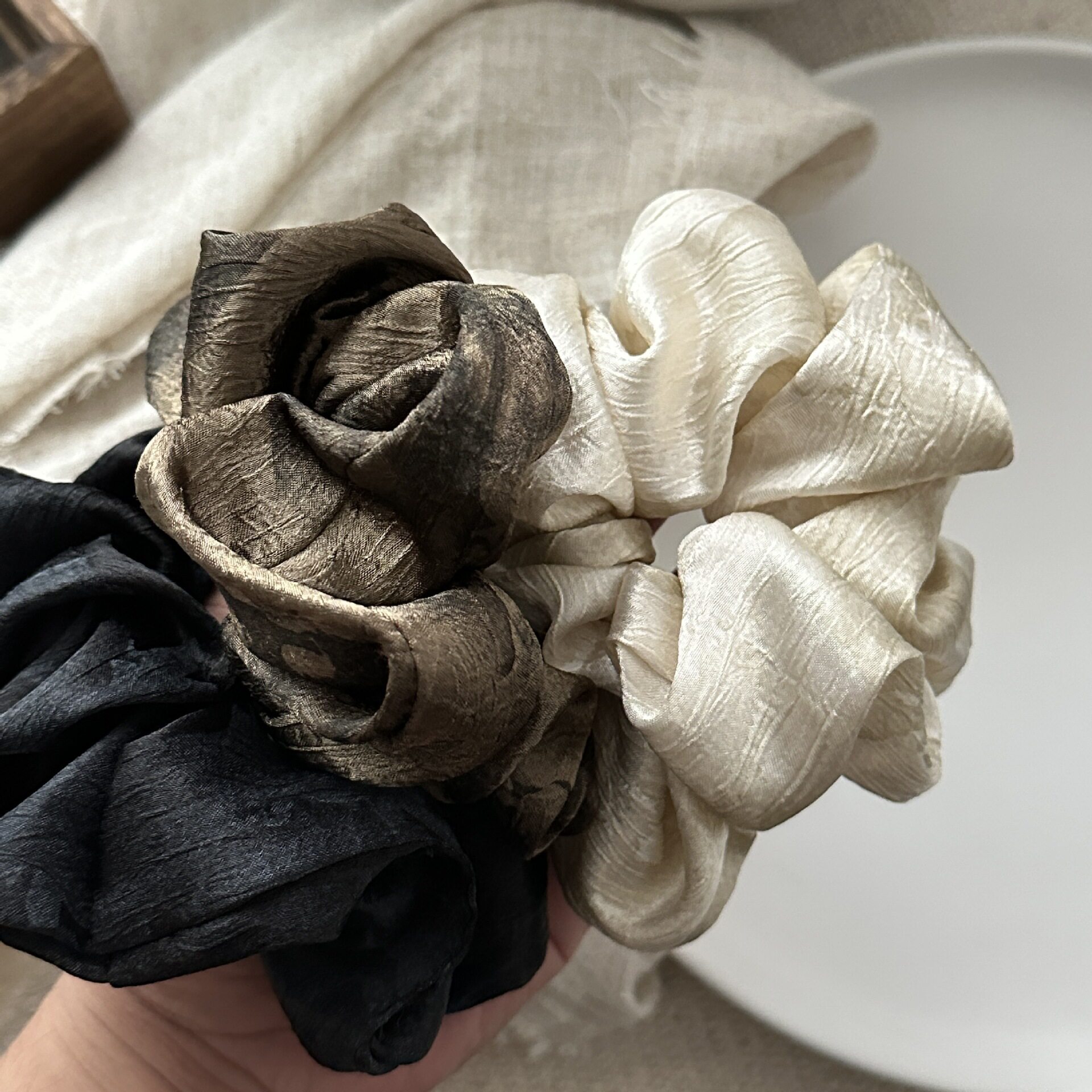 Texture French Retro High-grade Wide-brimmed Large Intestine Hair Ring Ponytail Head Rope Hair Ring Large Bowel Ring