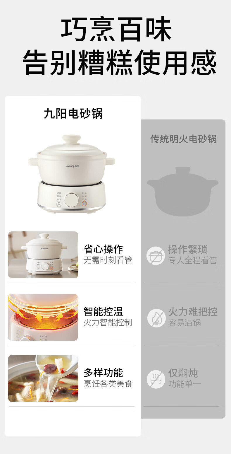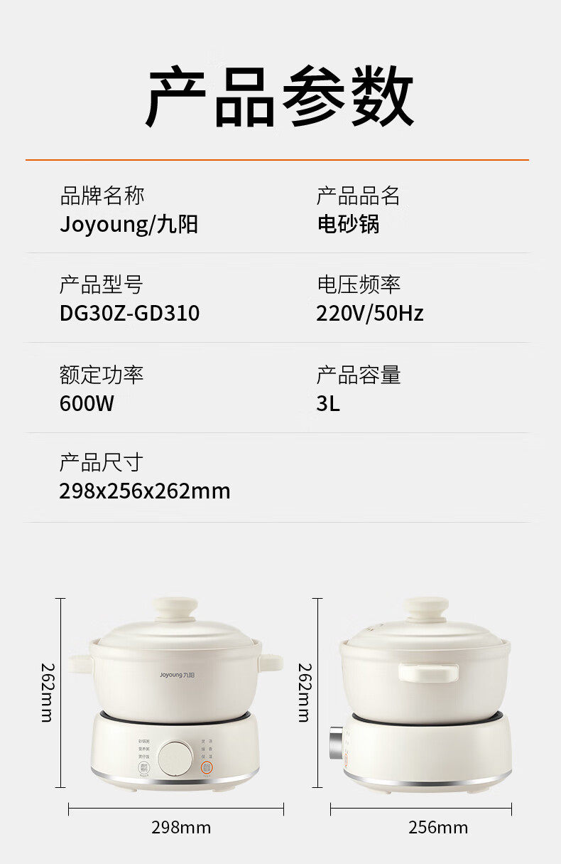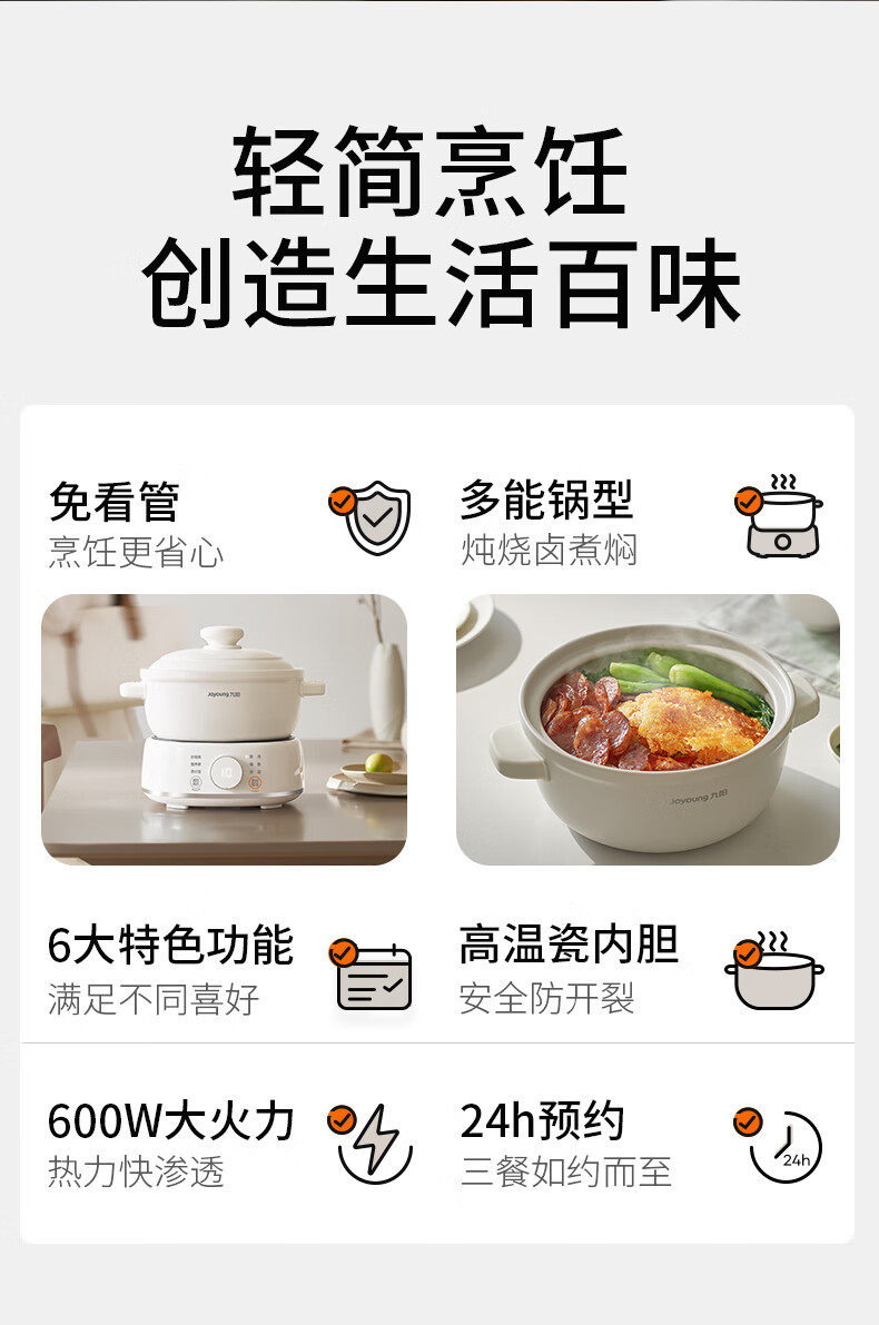 Jiuyang 3L Household Electric Casserole Split Automatic Ceramic Soup Small Electric Stew Pot DG30Z-GD310