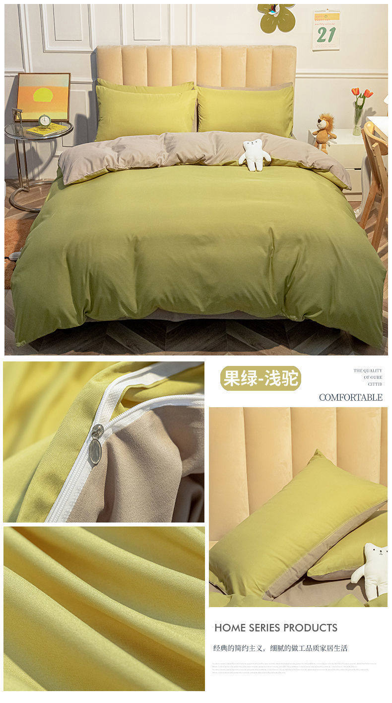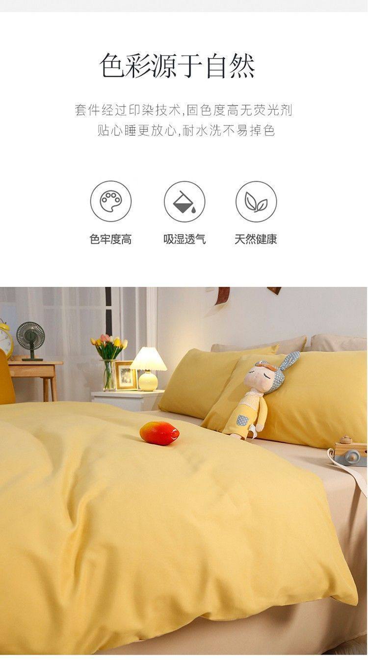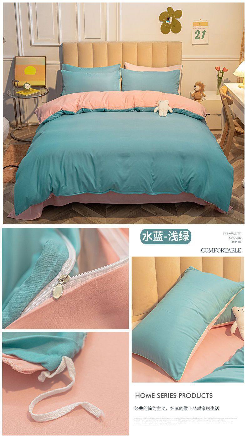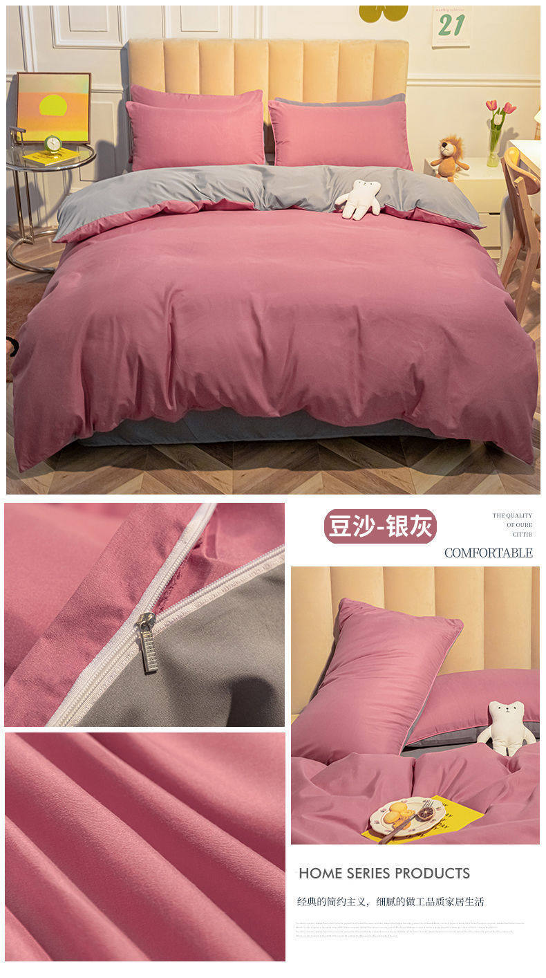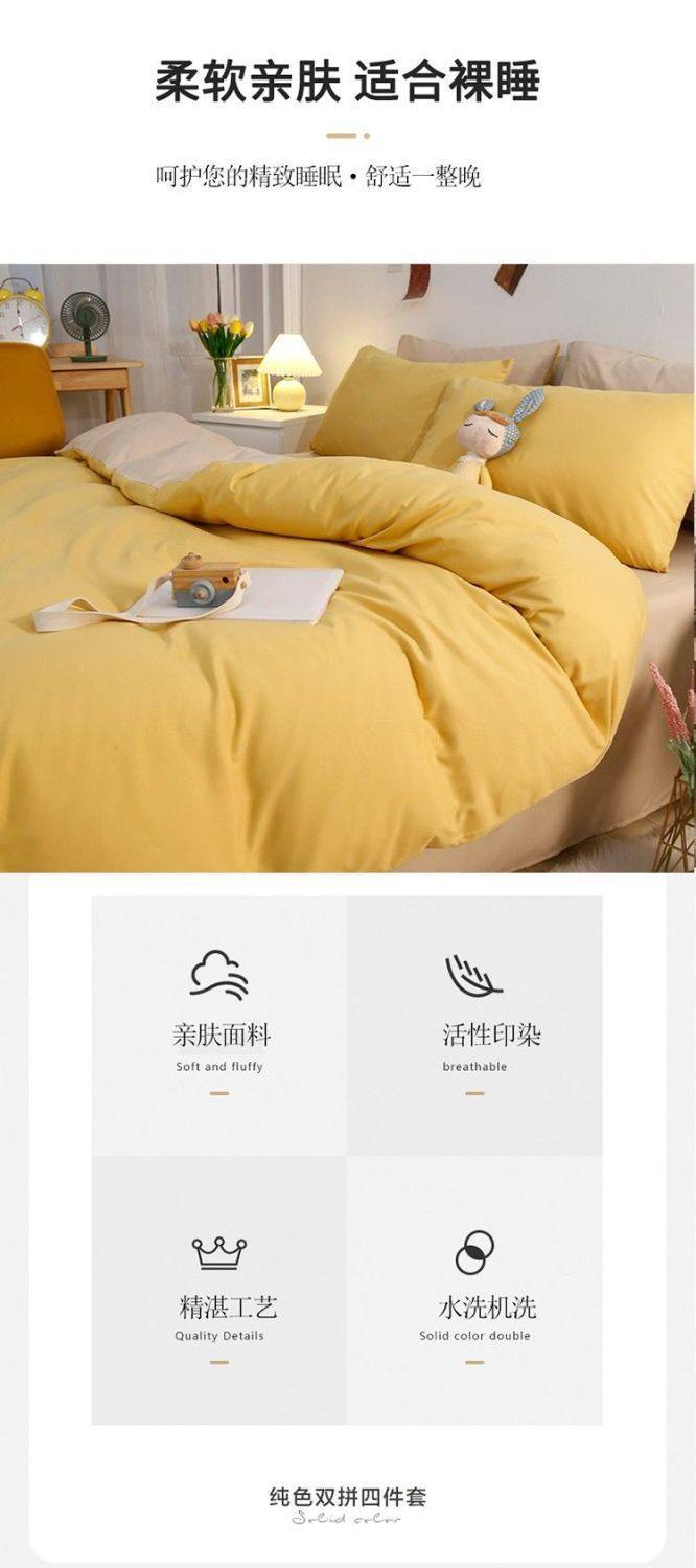 [Nanjiren] Simple Contrasting Color Four-piece Set Solid Color Quilt Cover Bed Sheet Bedding Dormitory Three-piece Set Summer