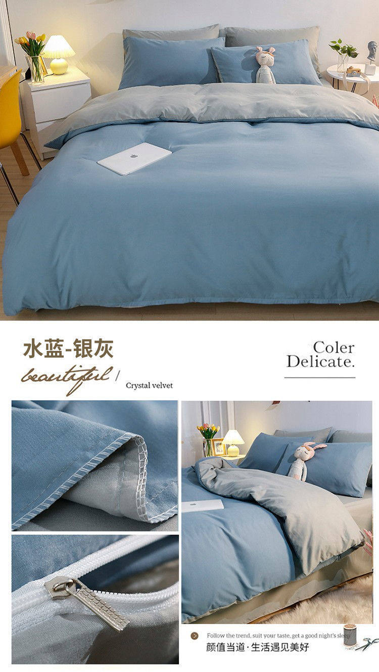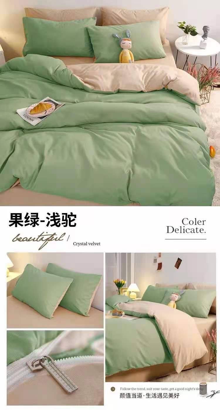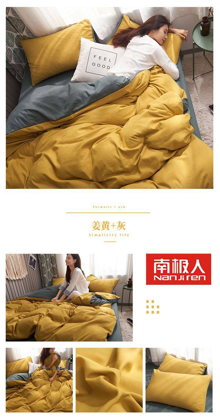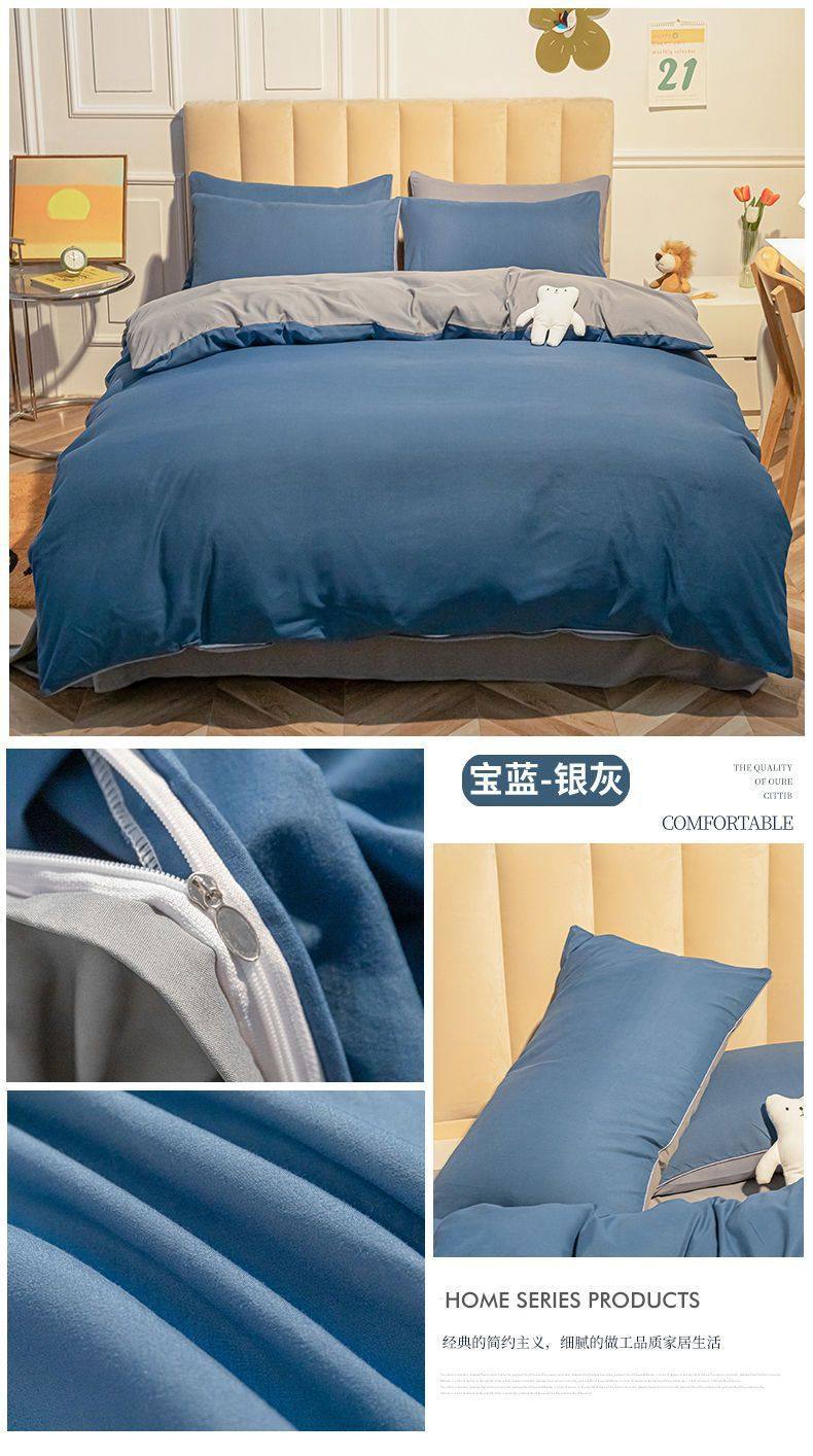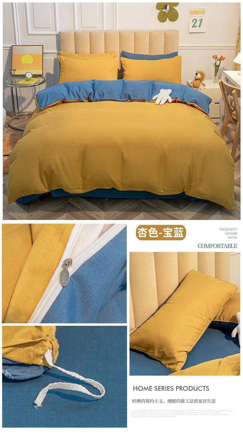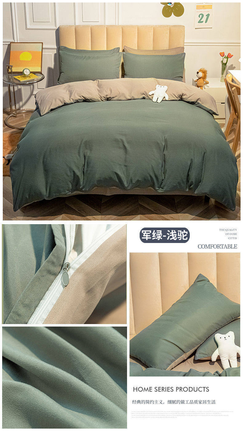 [Nanjiren] Simple Contrasting Color Four-piece Set Solid Color Quilt Cover Bed Sheet Bedding Dormitory Three-piece Set Summer