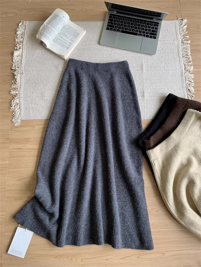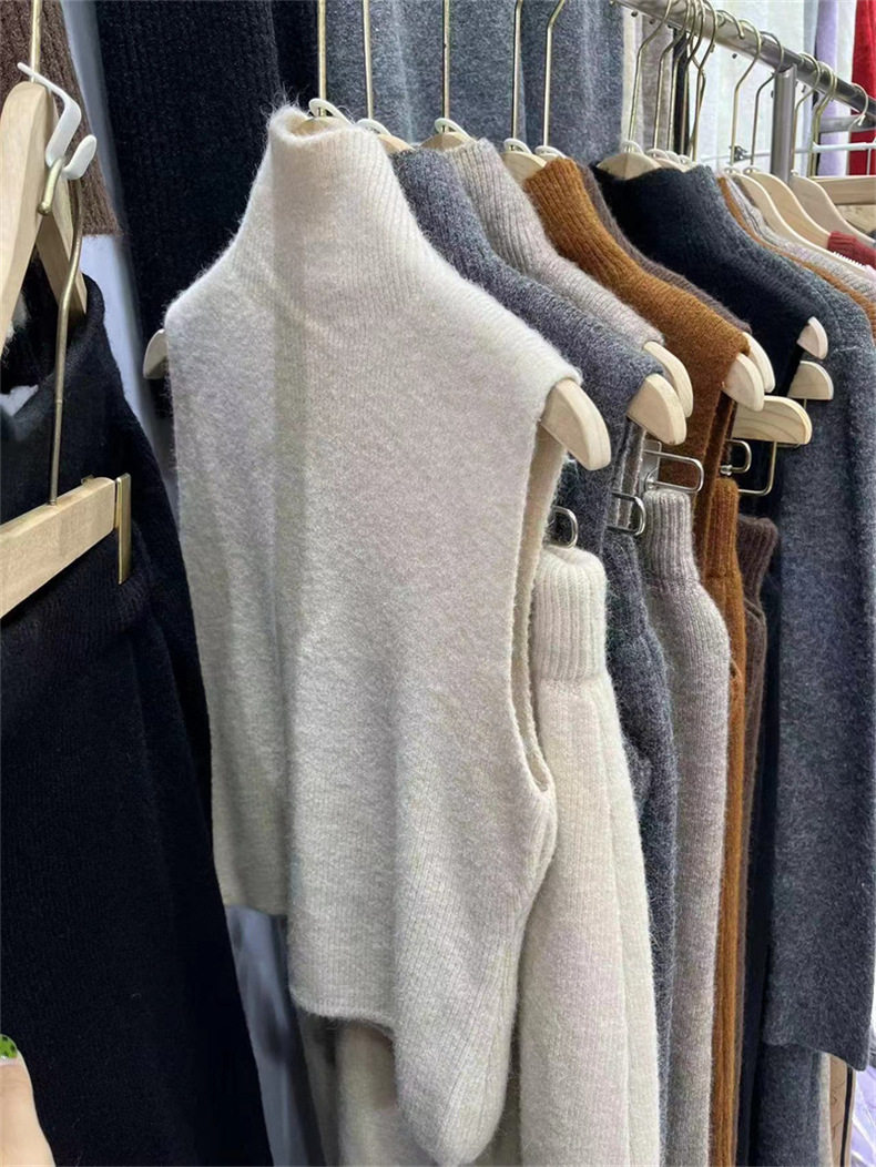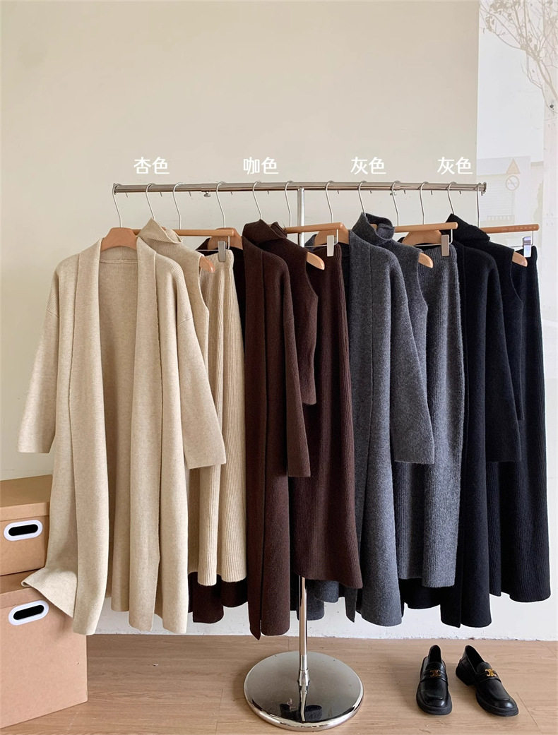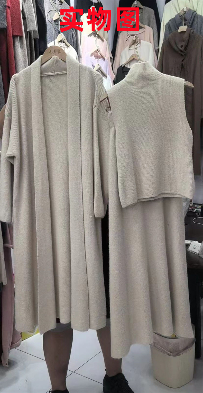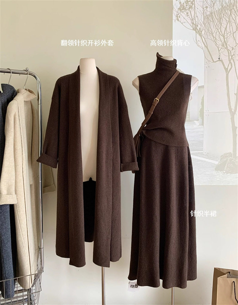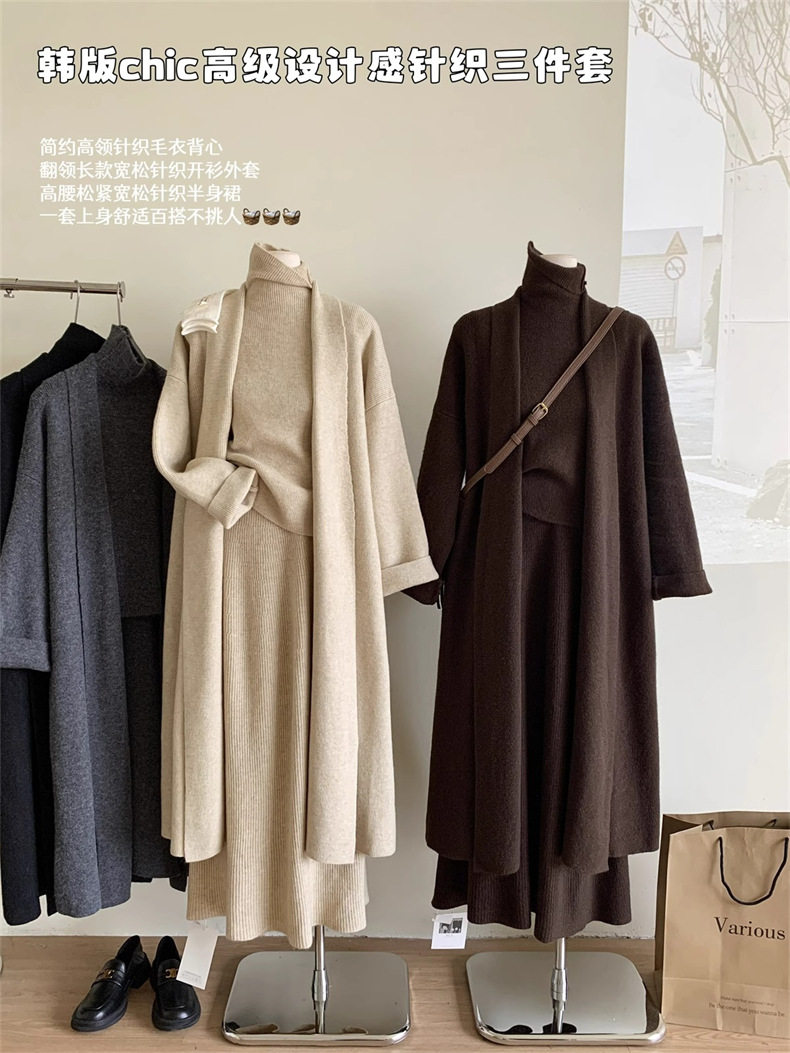 High-End Long-Sleeved Mid-Length Knitted Sweater Suit for Women, Autumn and Winter New Style High-Neck Vest, Half-Length Skirt, Three-Piece Set