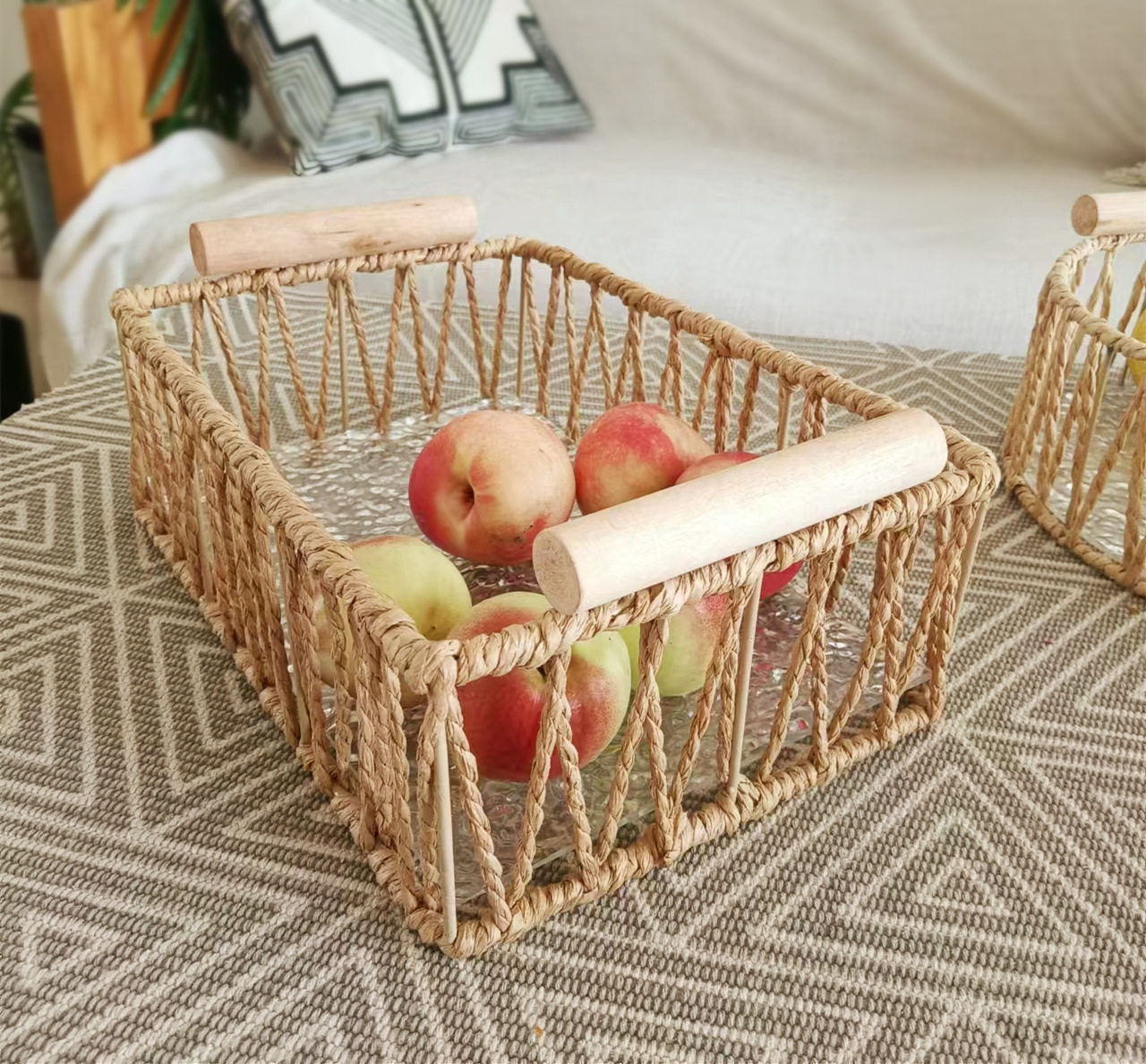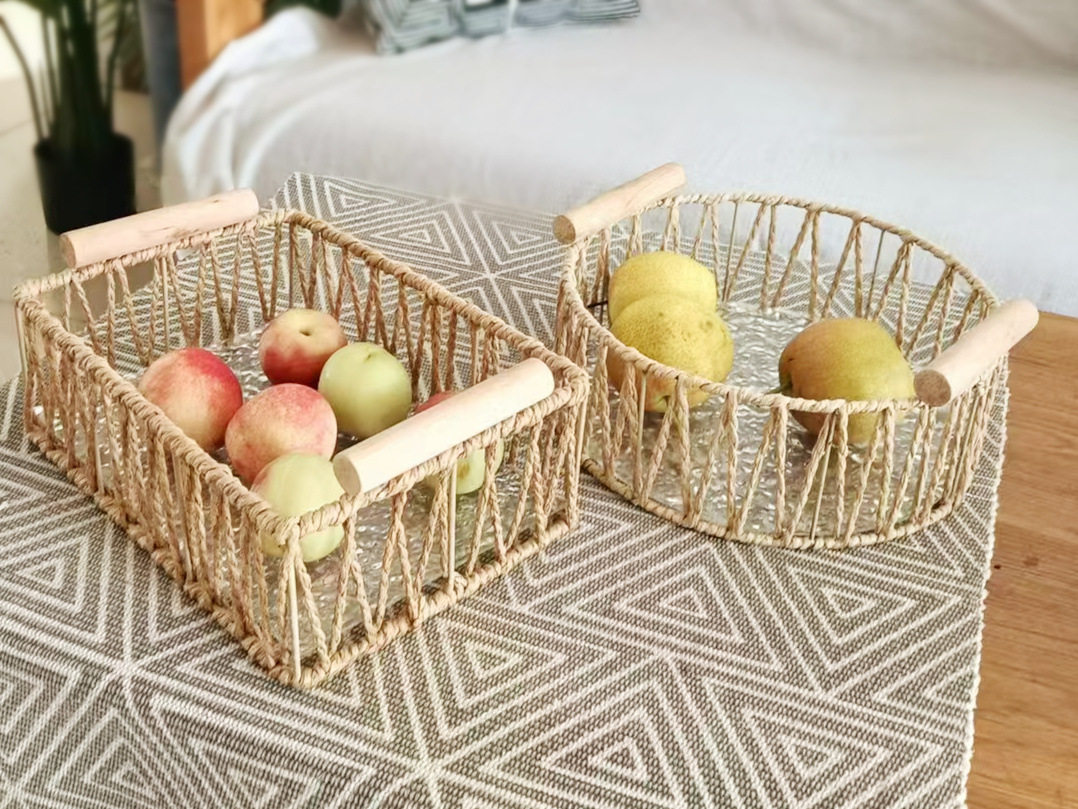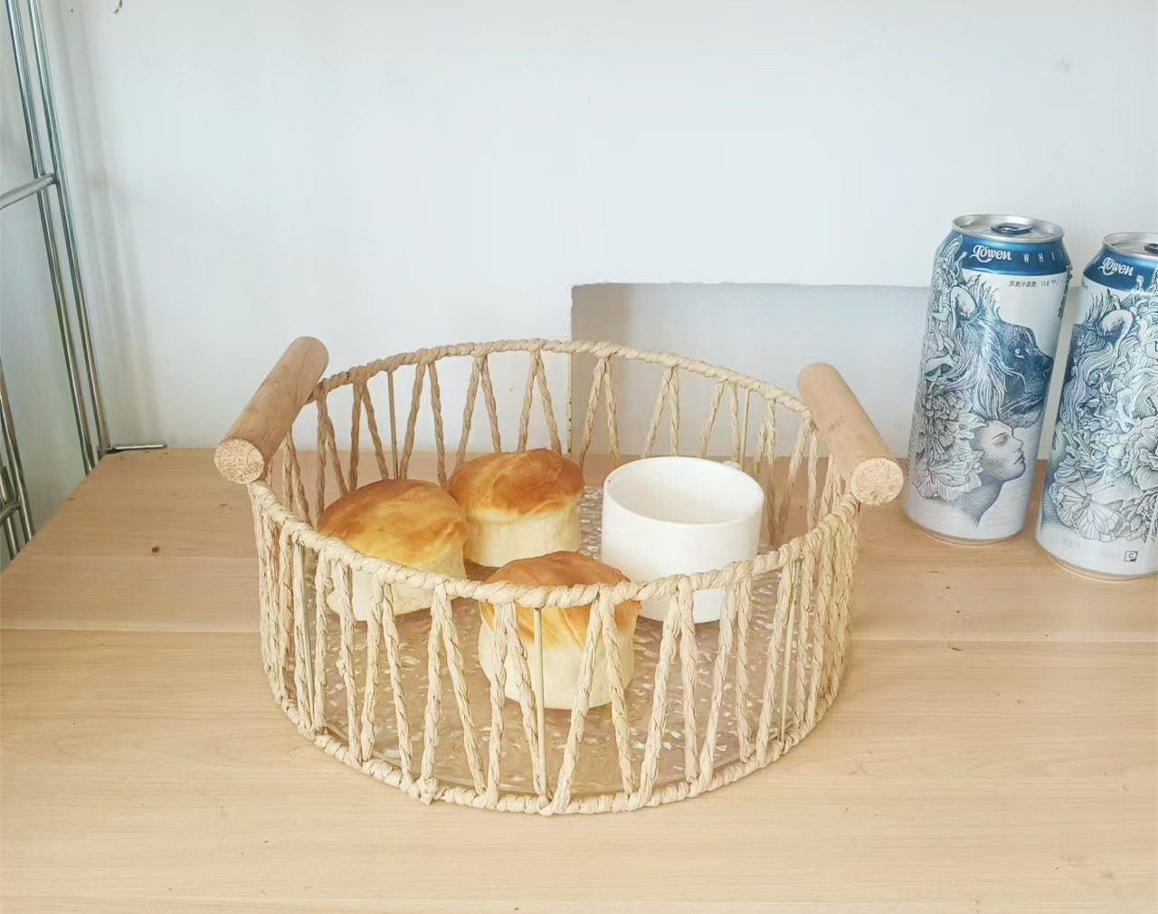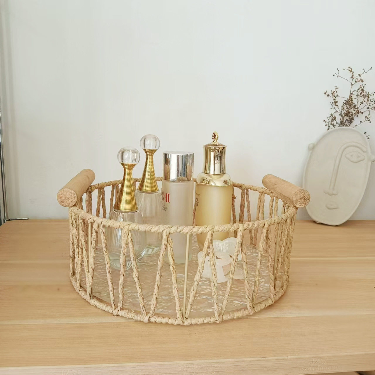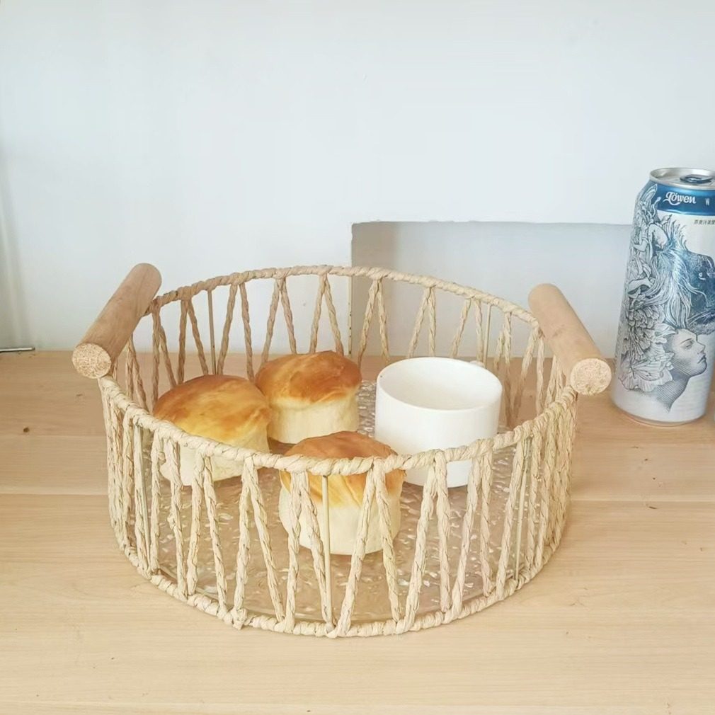 Nordic Style Fruit Storage Basket Hand-woven Storage Tray Bread Basket Light Luxury Desktop Snack Cosmetic Storage Box