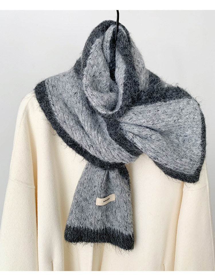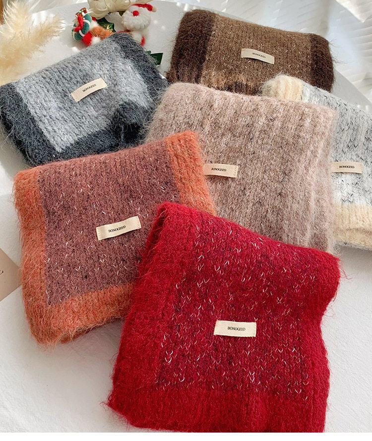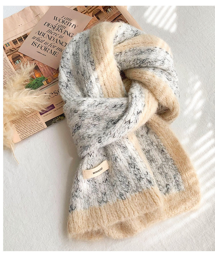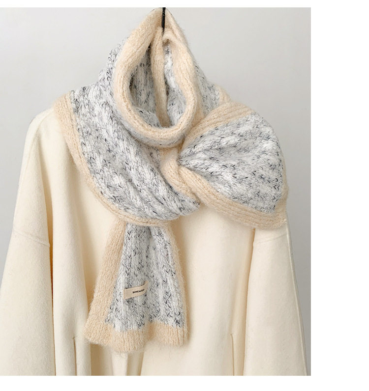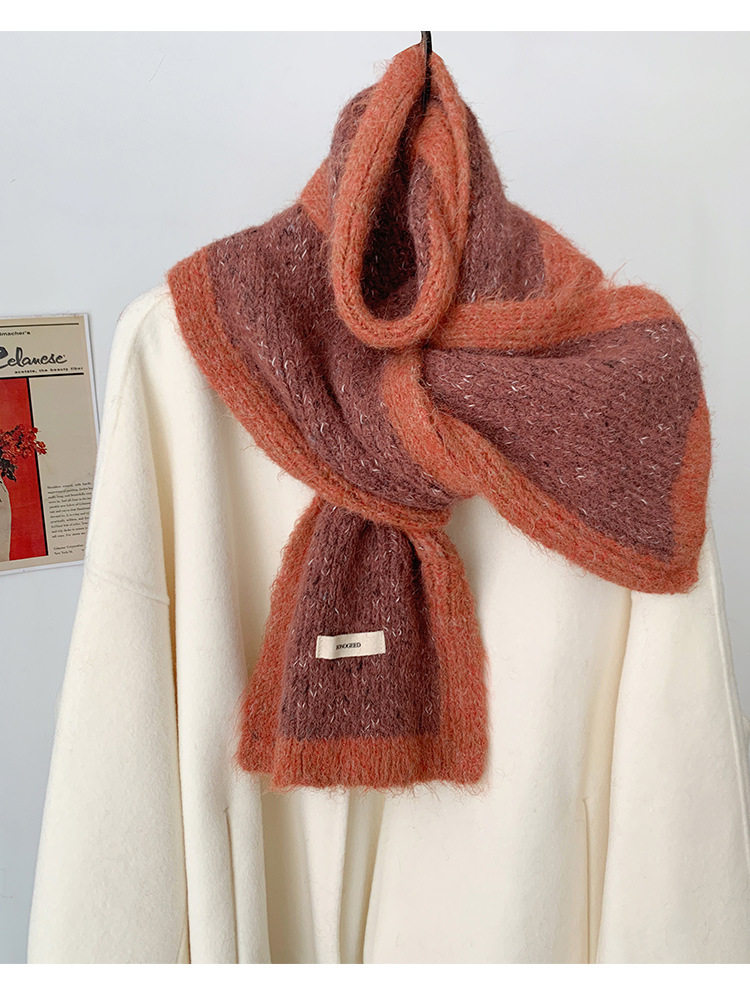 Scarf Women's Autumn and Winter 2025 New High-End Warm Knitted Scarf K-Style Versatile Contrasting Color Student Wholesale