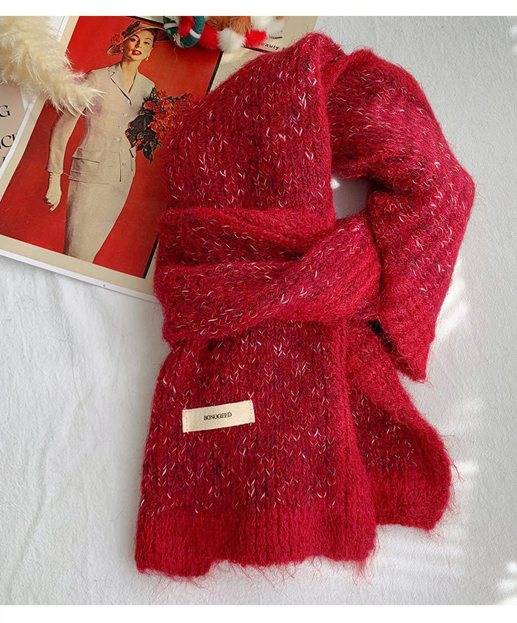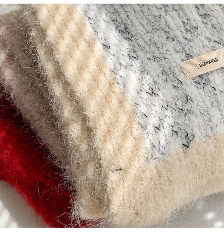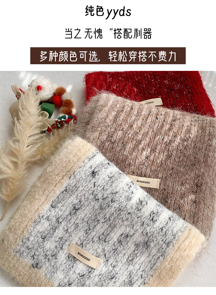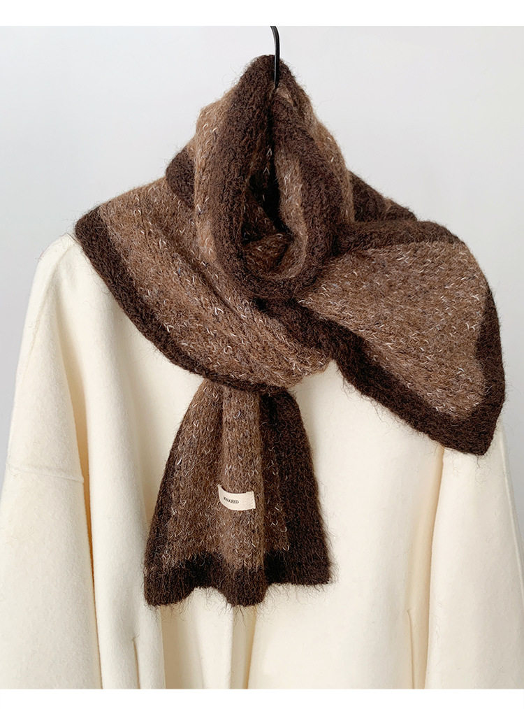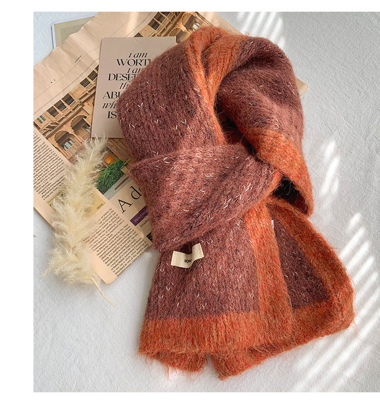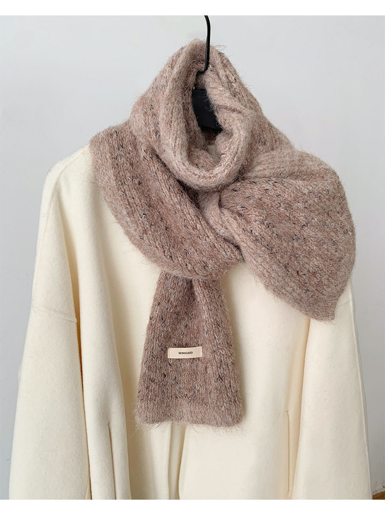 Scarf Women's Autumn and Winter 2025 New High-End Warm Knitted Scarf K-Style Versatile Contrasting Color Student Wholesale