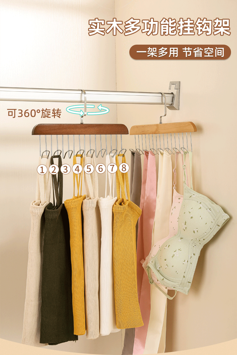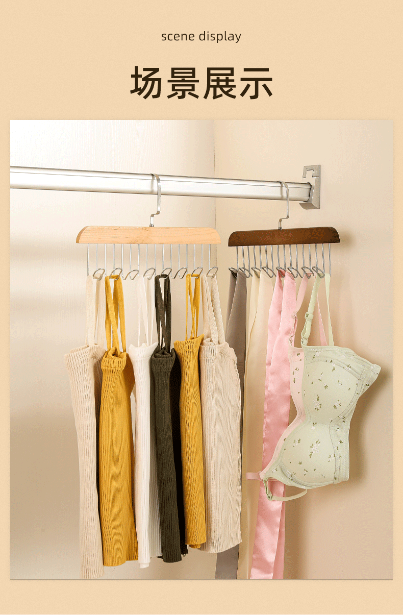 Wooden Camisole Hanger Multifunctional Underwear Vest Rack Dormitory Solid Wood Wavy Strapless Bra Drying Rack Solid Wood Material