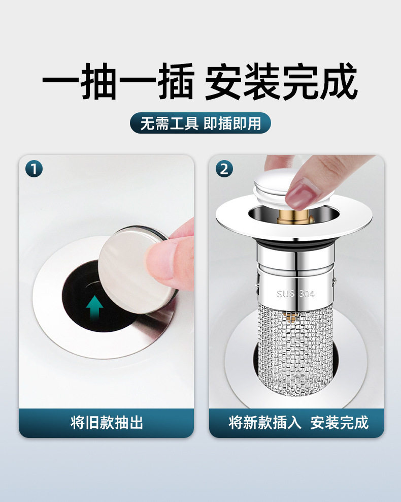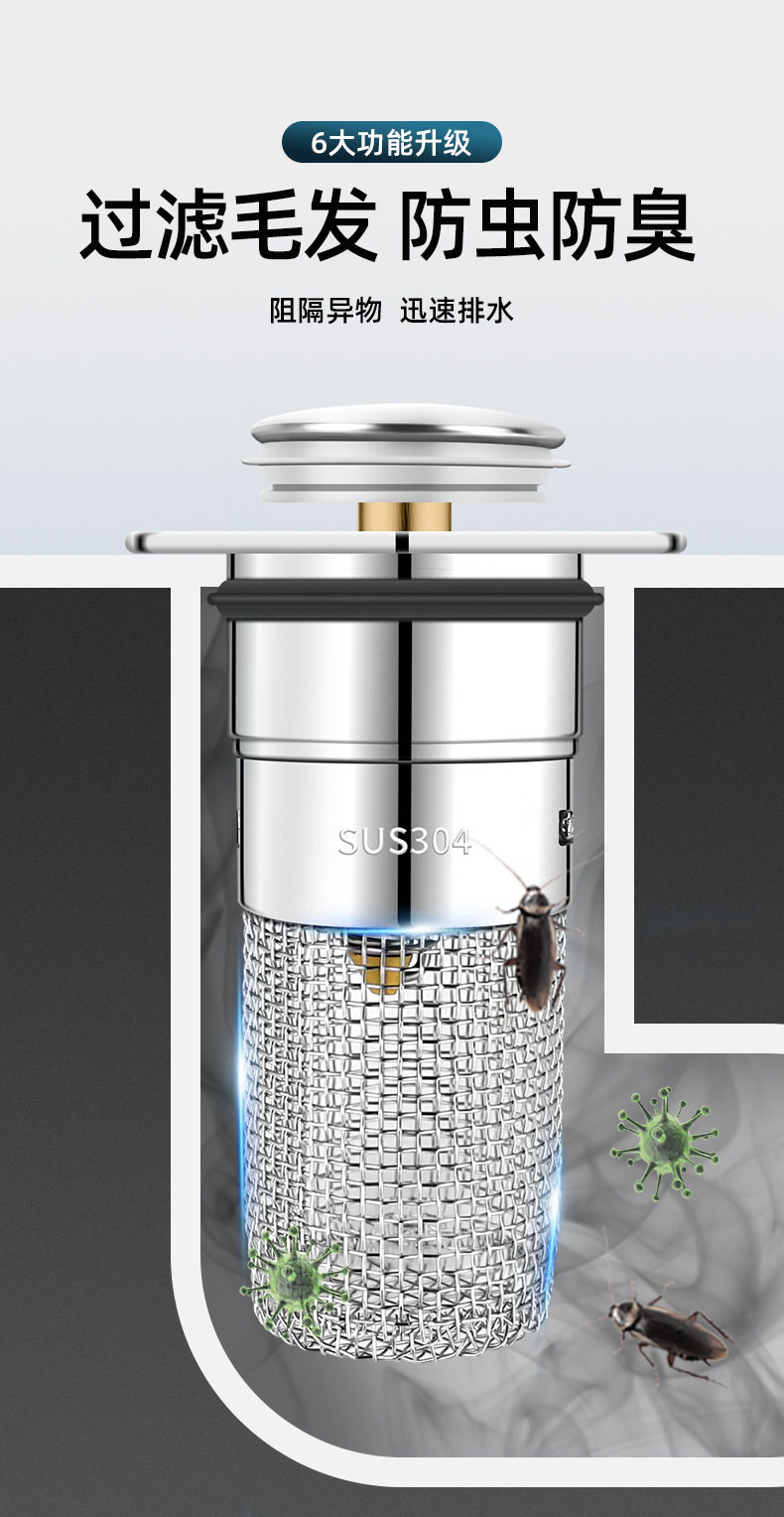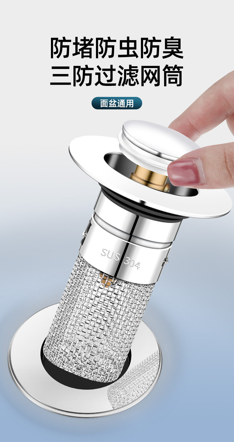 Wash basin leak plug bounce core washbasin sink drain hair filter deodorant disassembly universal press type