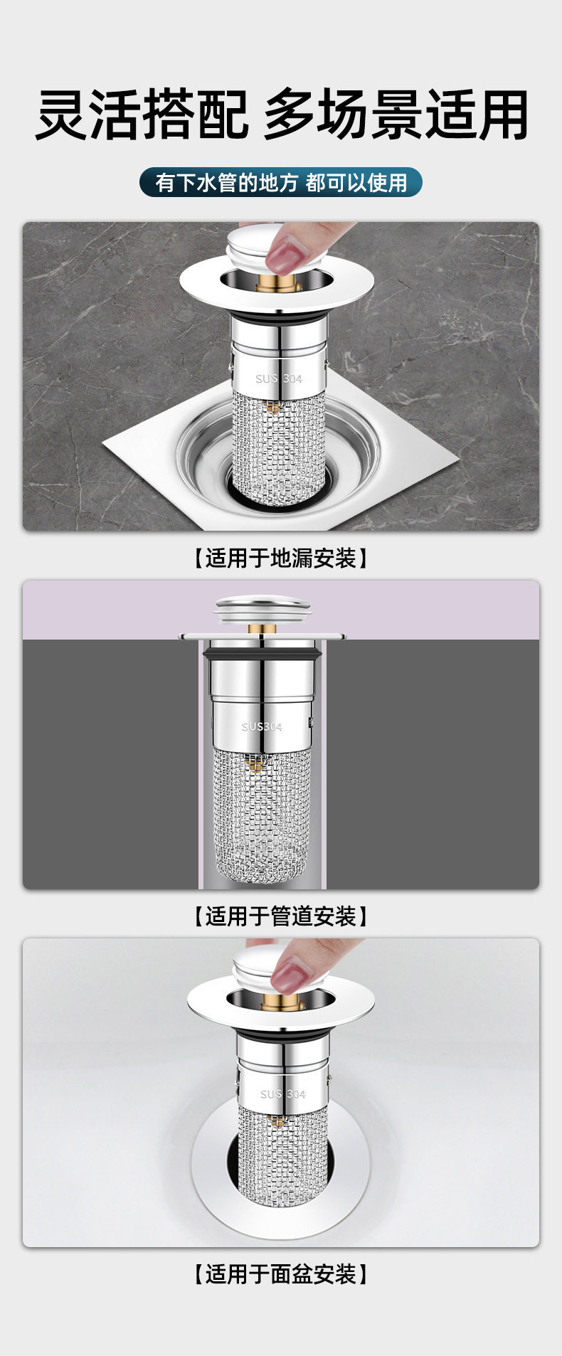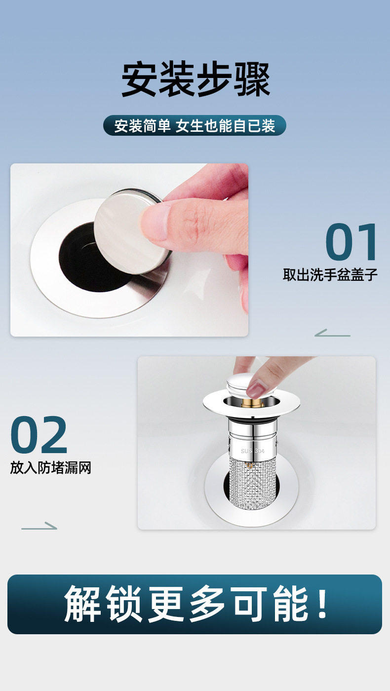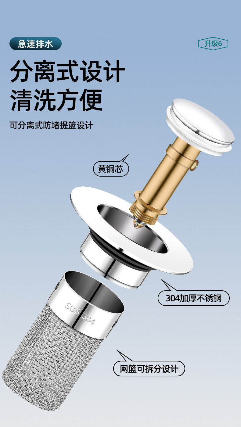 Wash basin leak plug bounce core washbasin sink drain hair filter deodorant disassembly universal press type