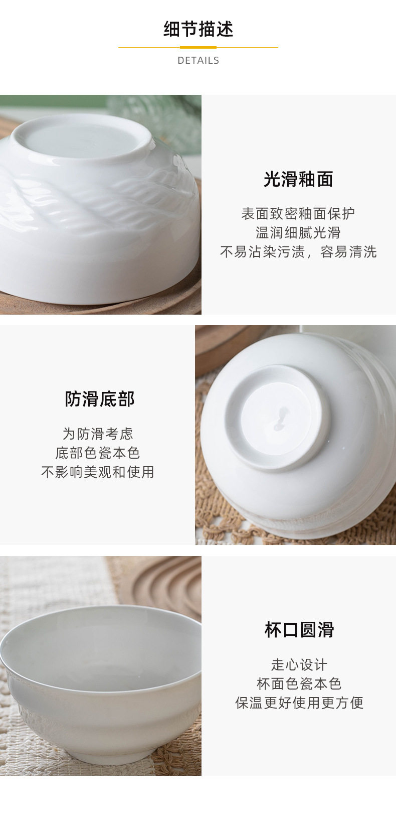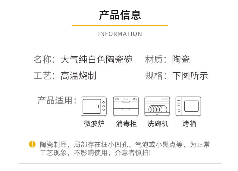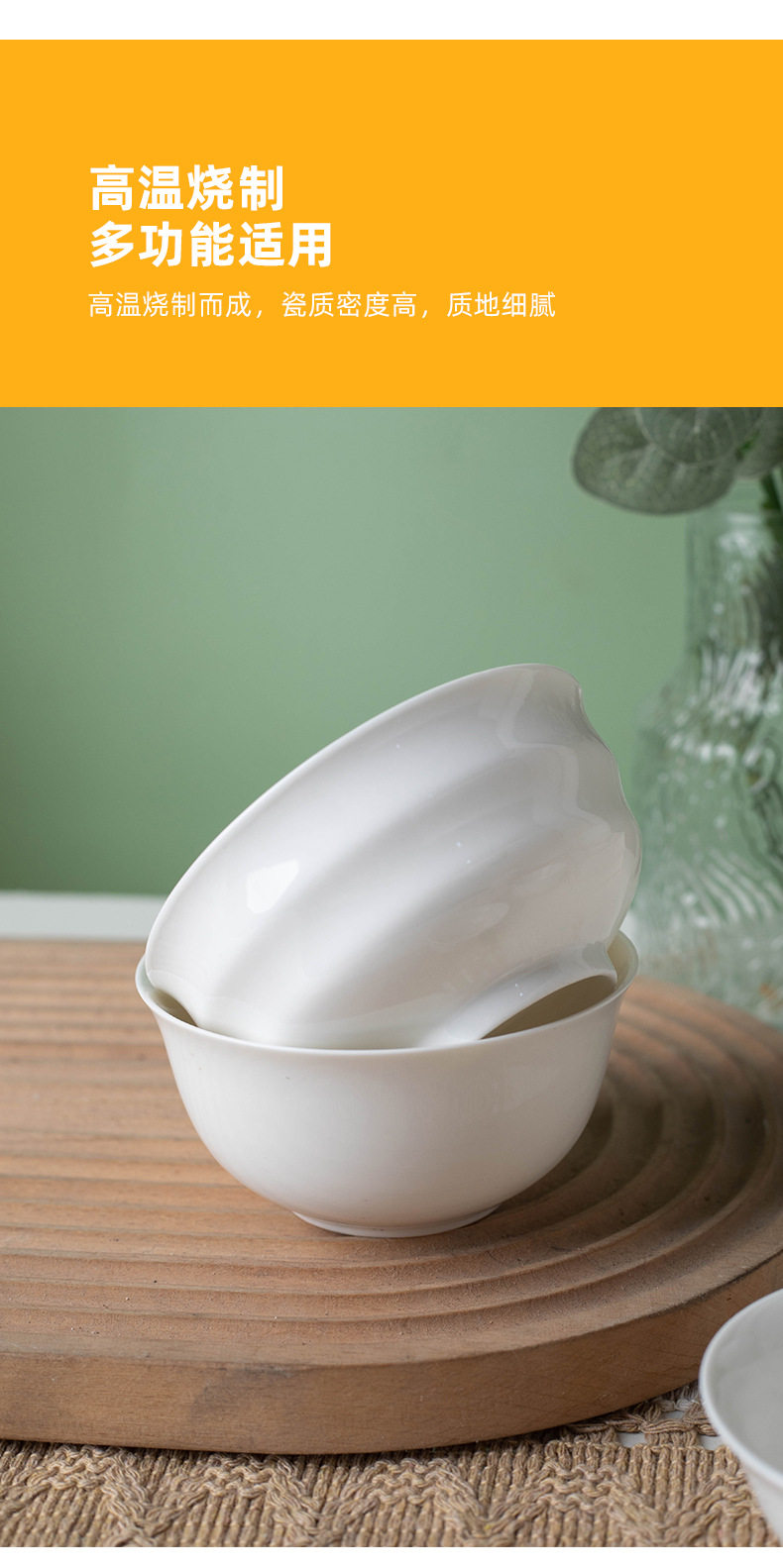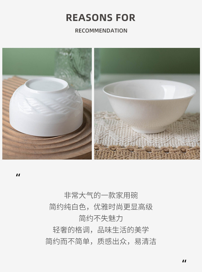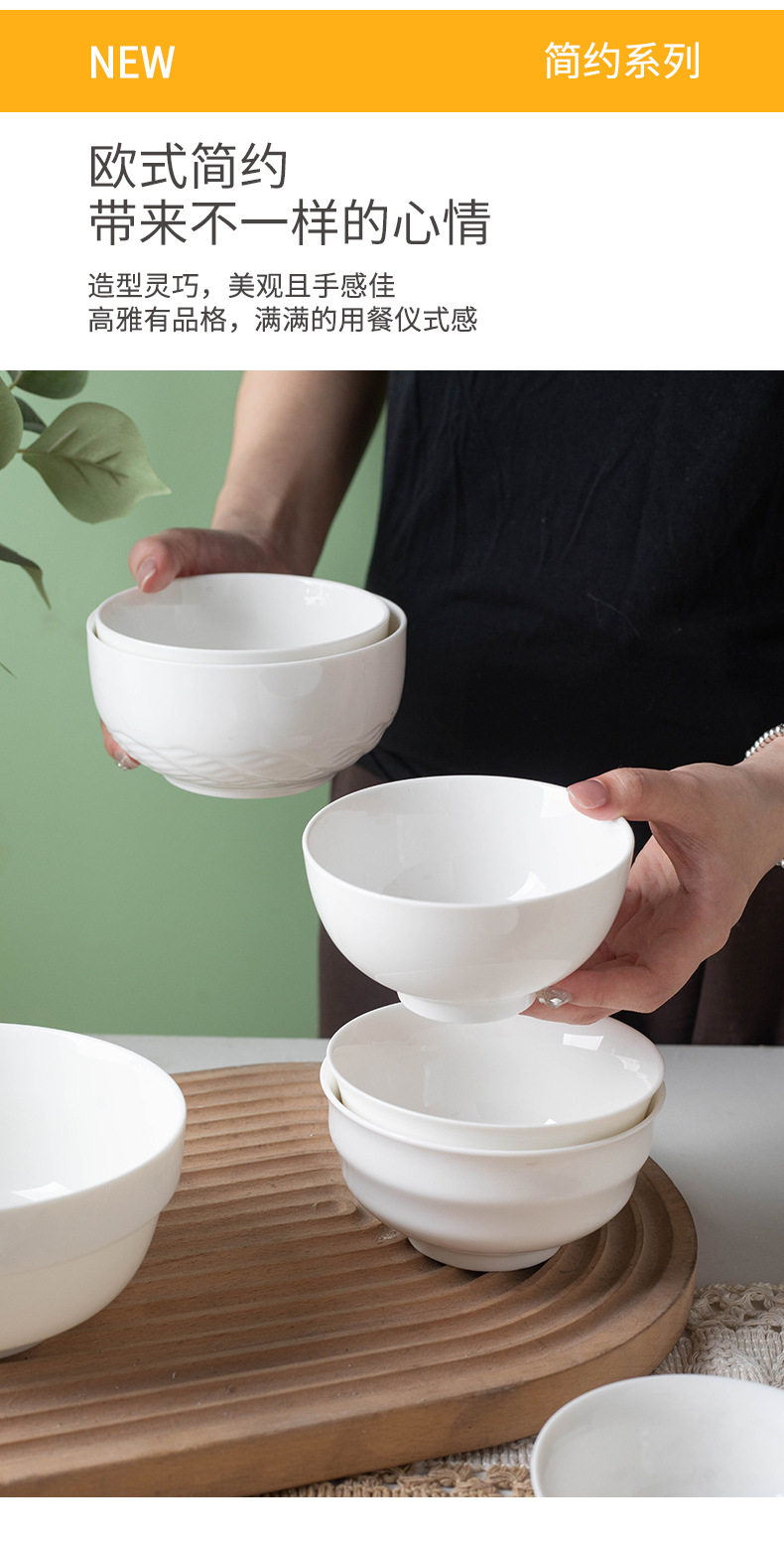 Simple Rice Soup Bowl Set for Home Use, Japanese-Style Pure White High-Temperature Resistant Ceramic Bowls