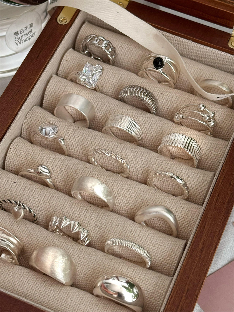 Niche Retro S925 Sterling Silver Plain Ring Ring Women's Color-free Light Luxury High-end Finger Ring All-match Open Ring
