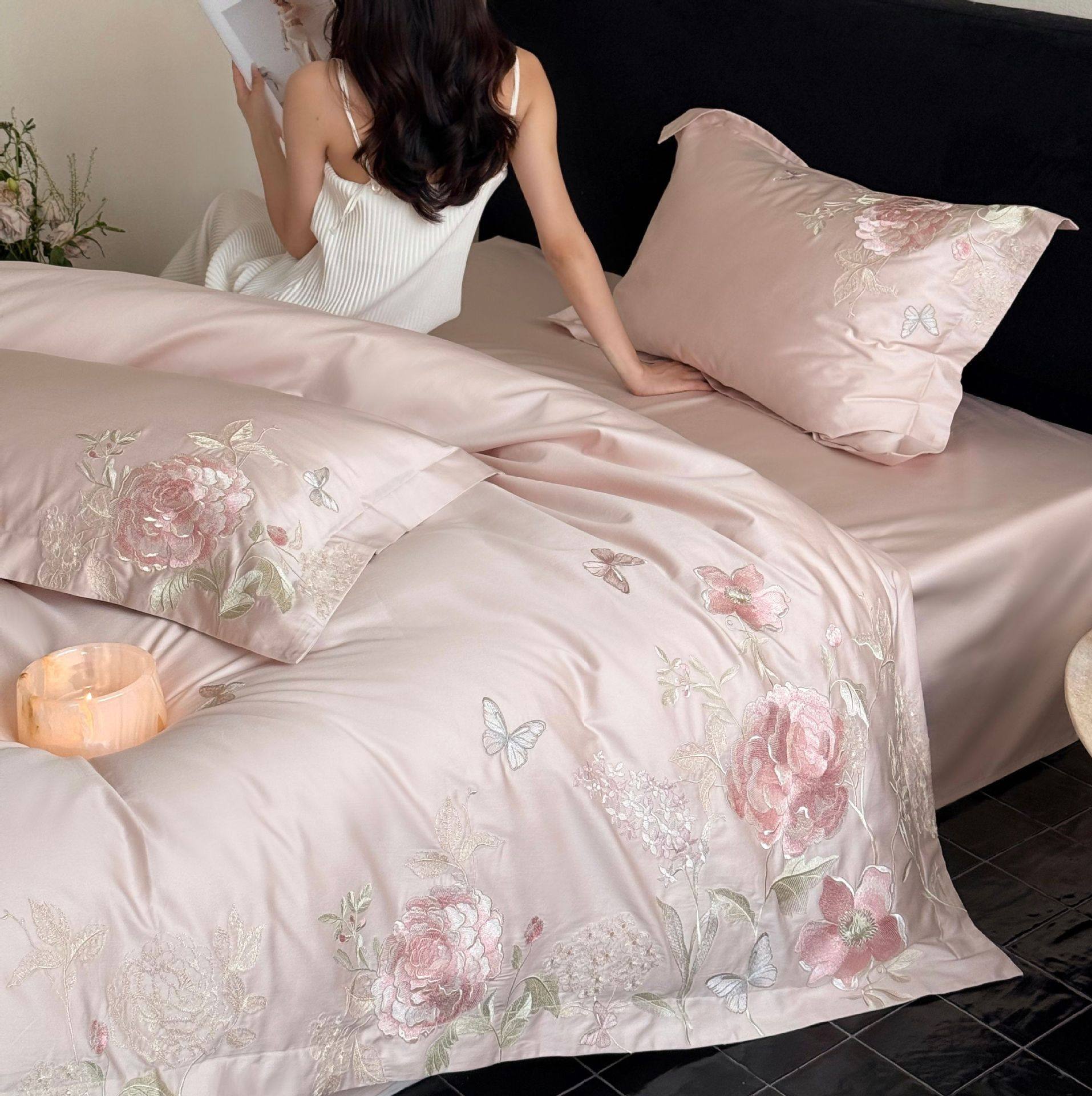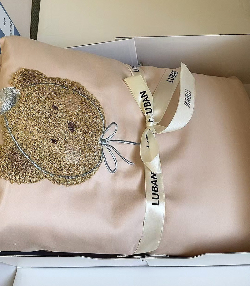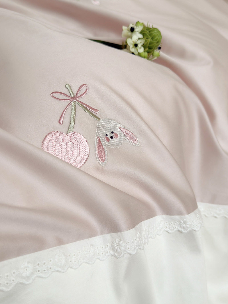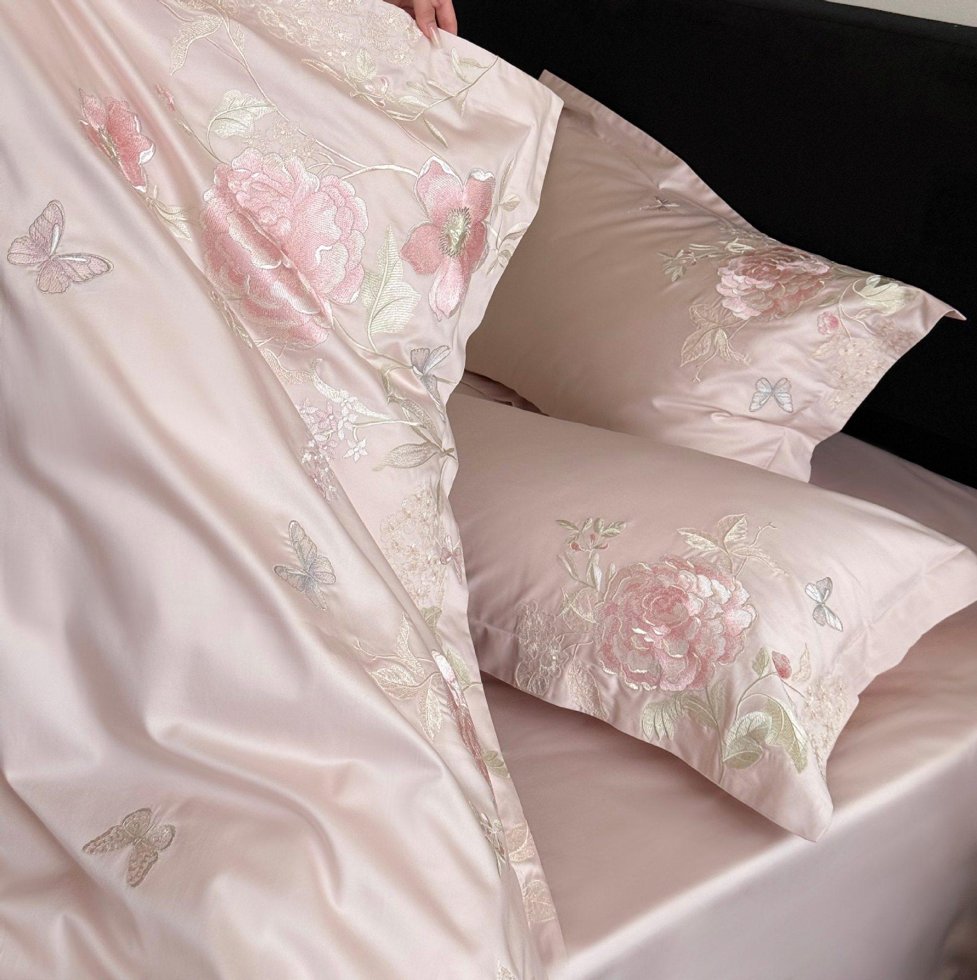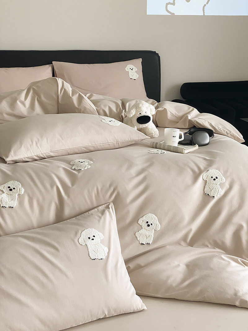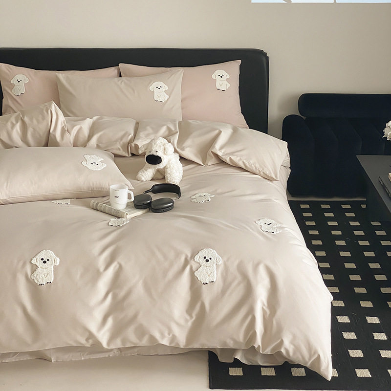High-End All-Cotton Long-Staple Cotton Brushed Four-Piece Set, Girly Pink Fresh Style Duvet Cover, Cartoon Cute Design for All Seasons